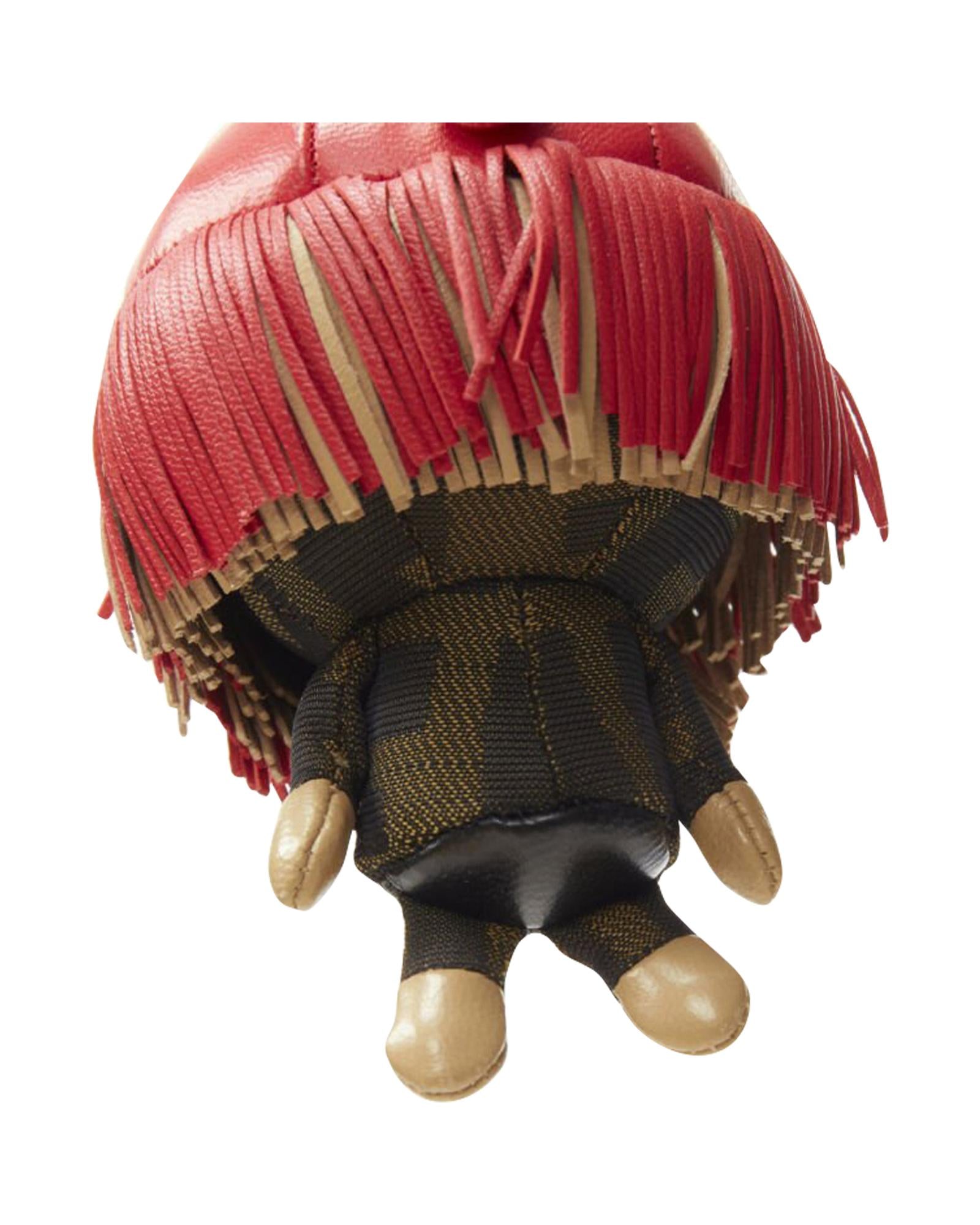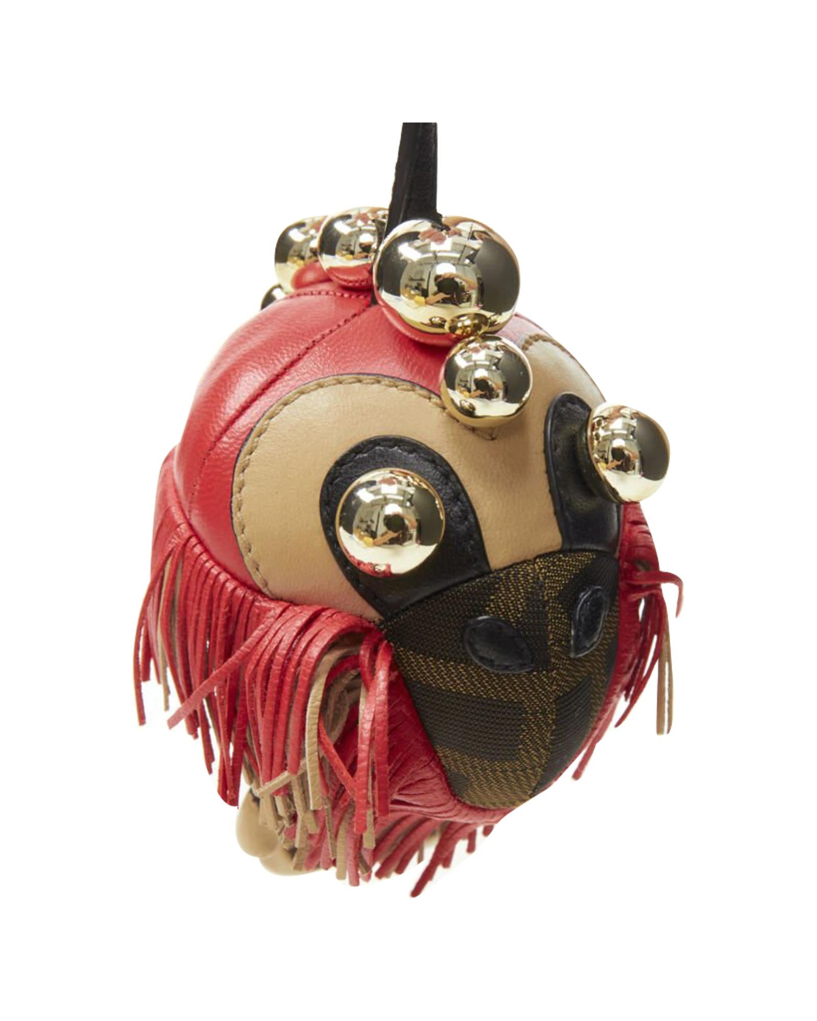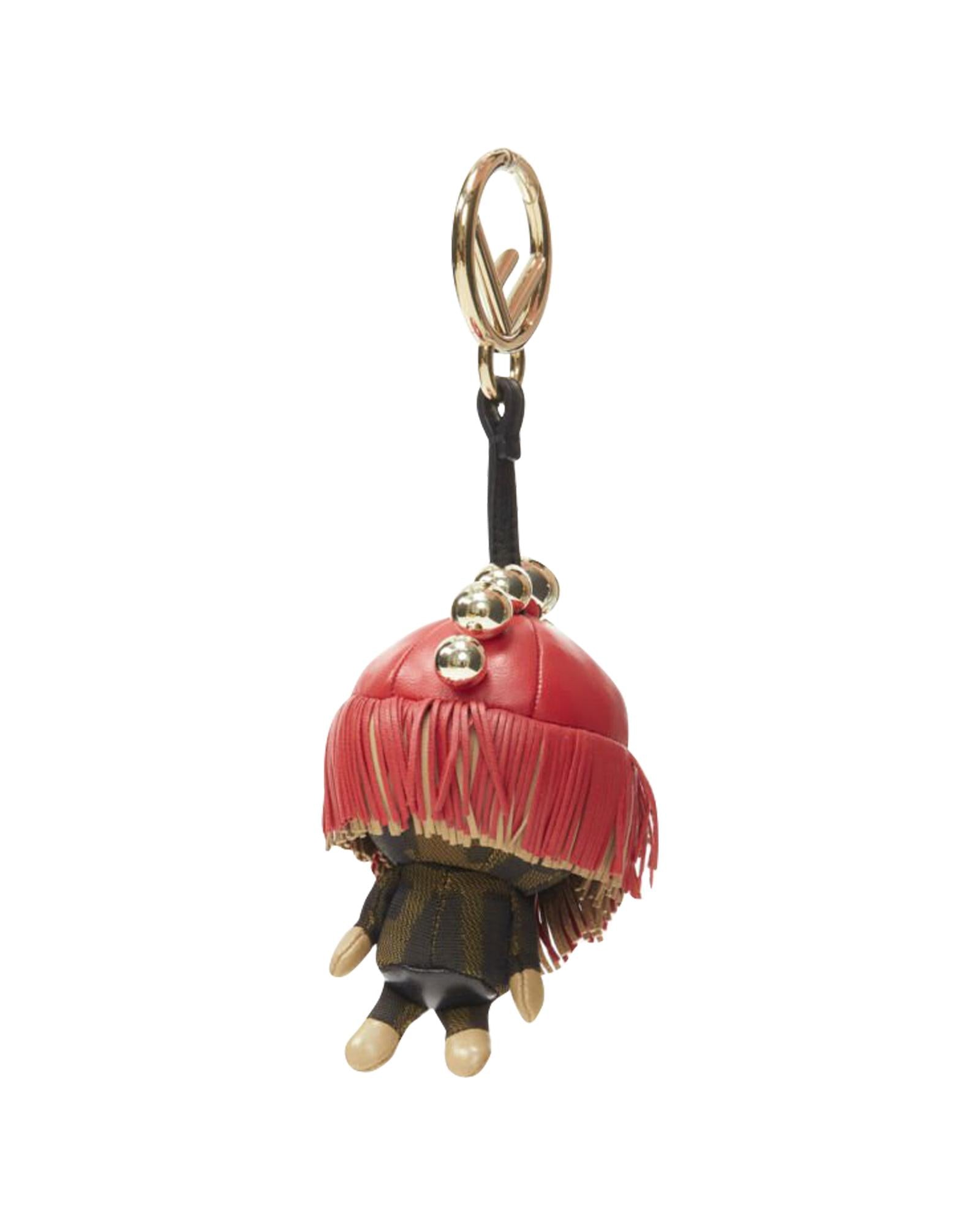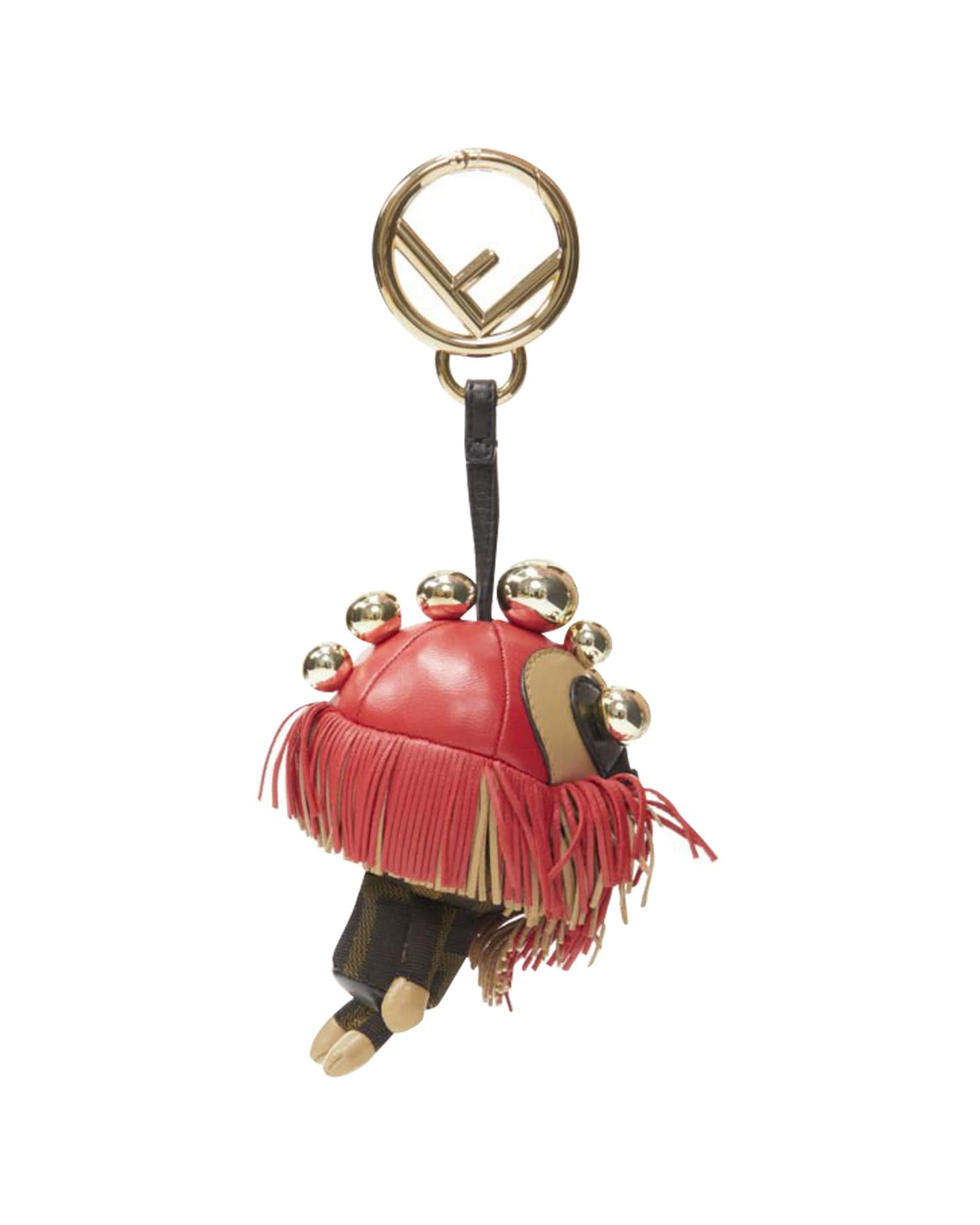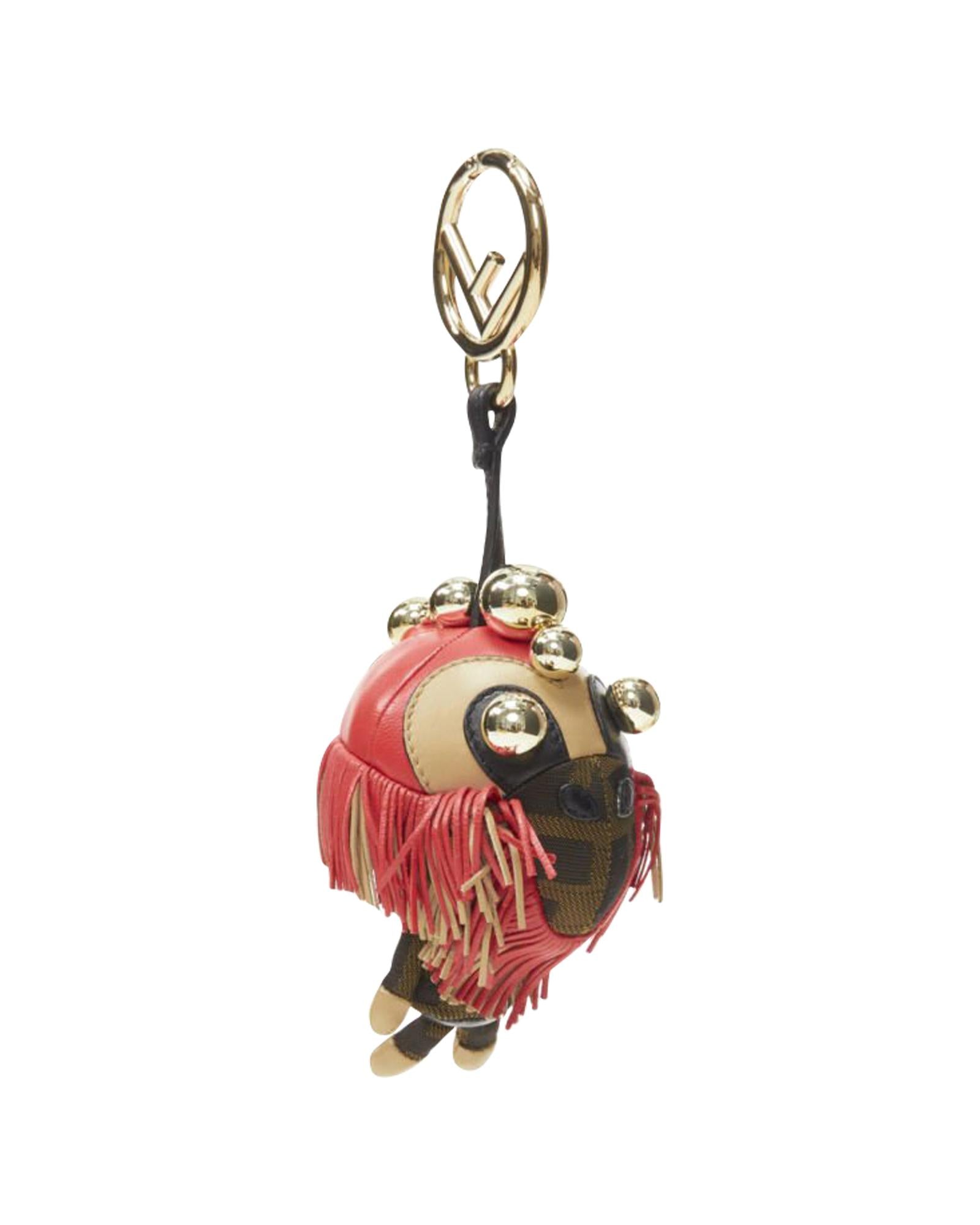Pre-owned Novelty Leather Bag Charm with Fringe and Metallic Detail