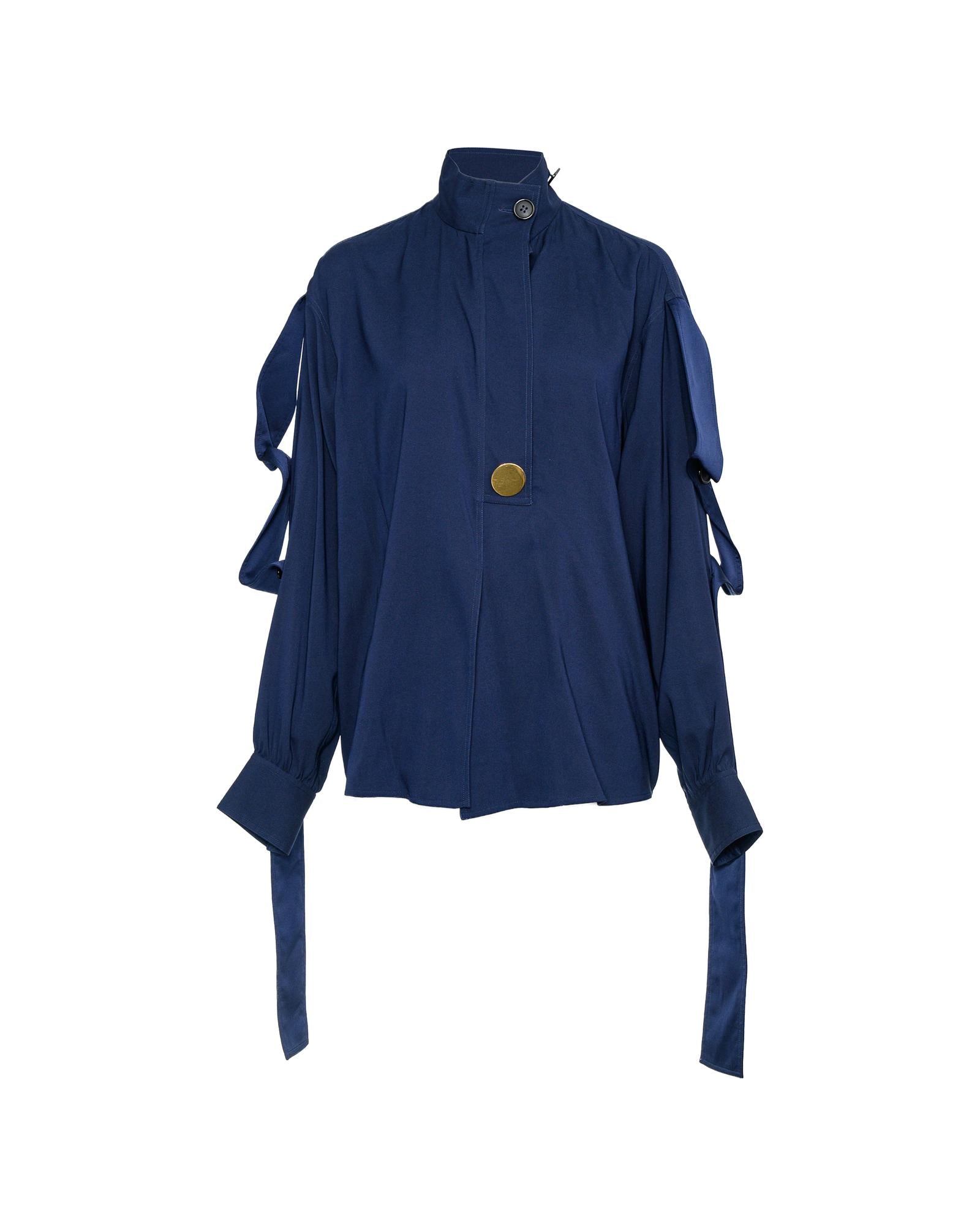 Elegant High Neck Long Sleeve Shirt with Tie Detail