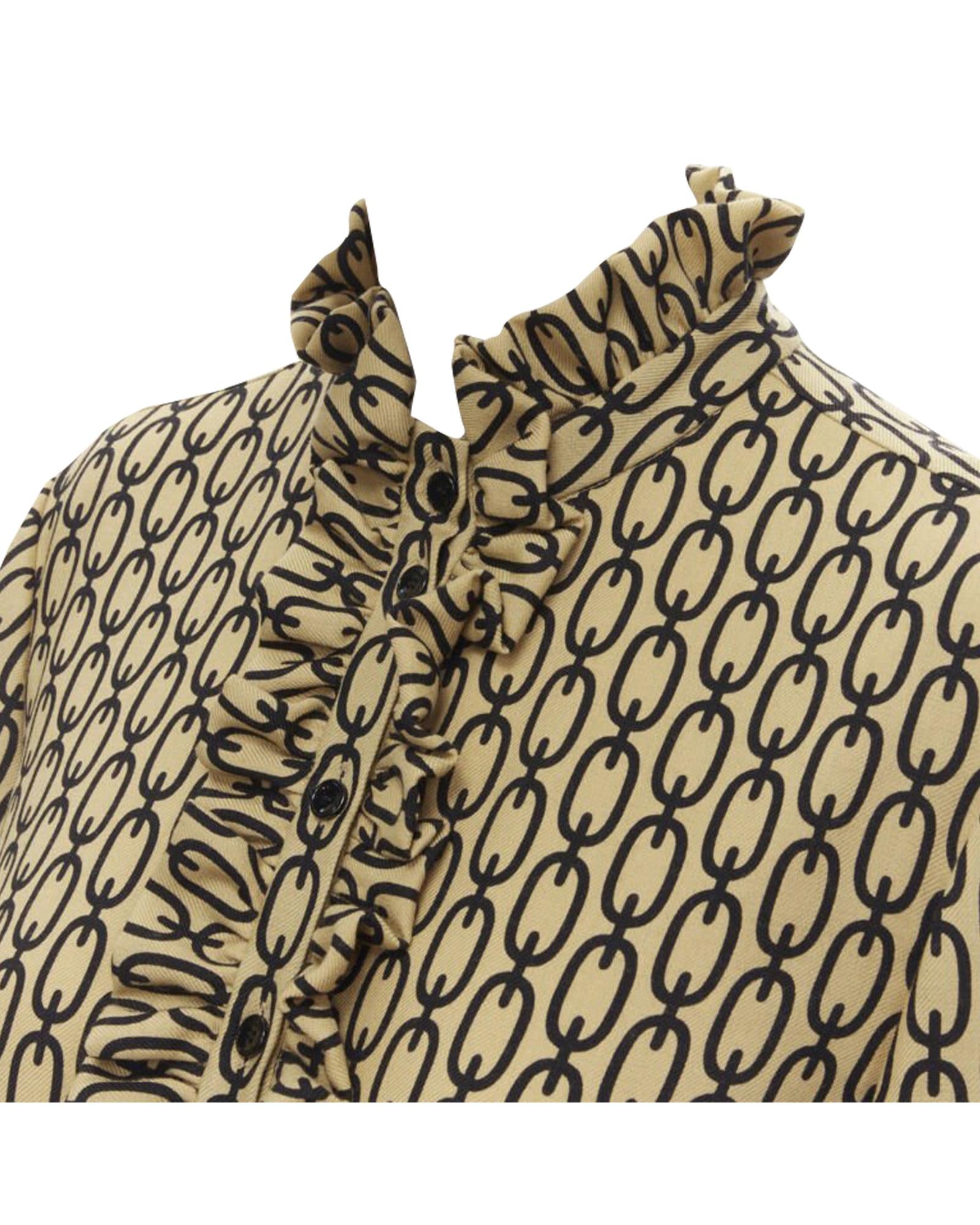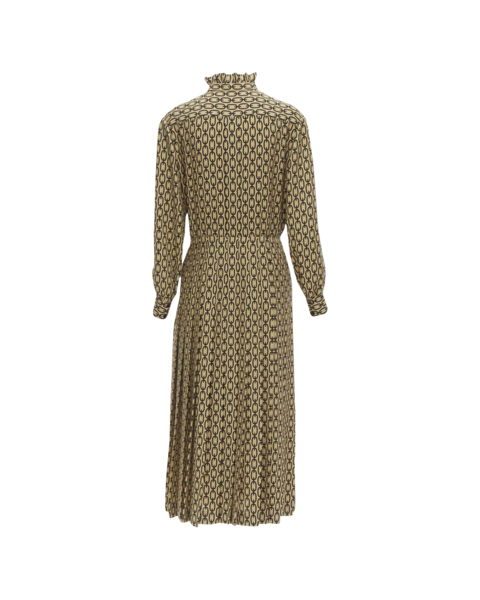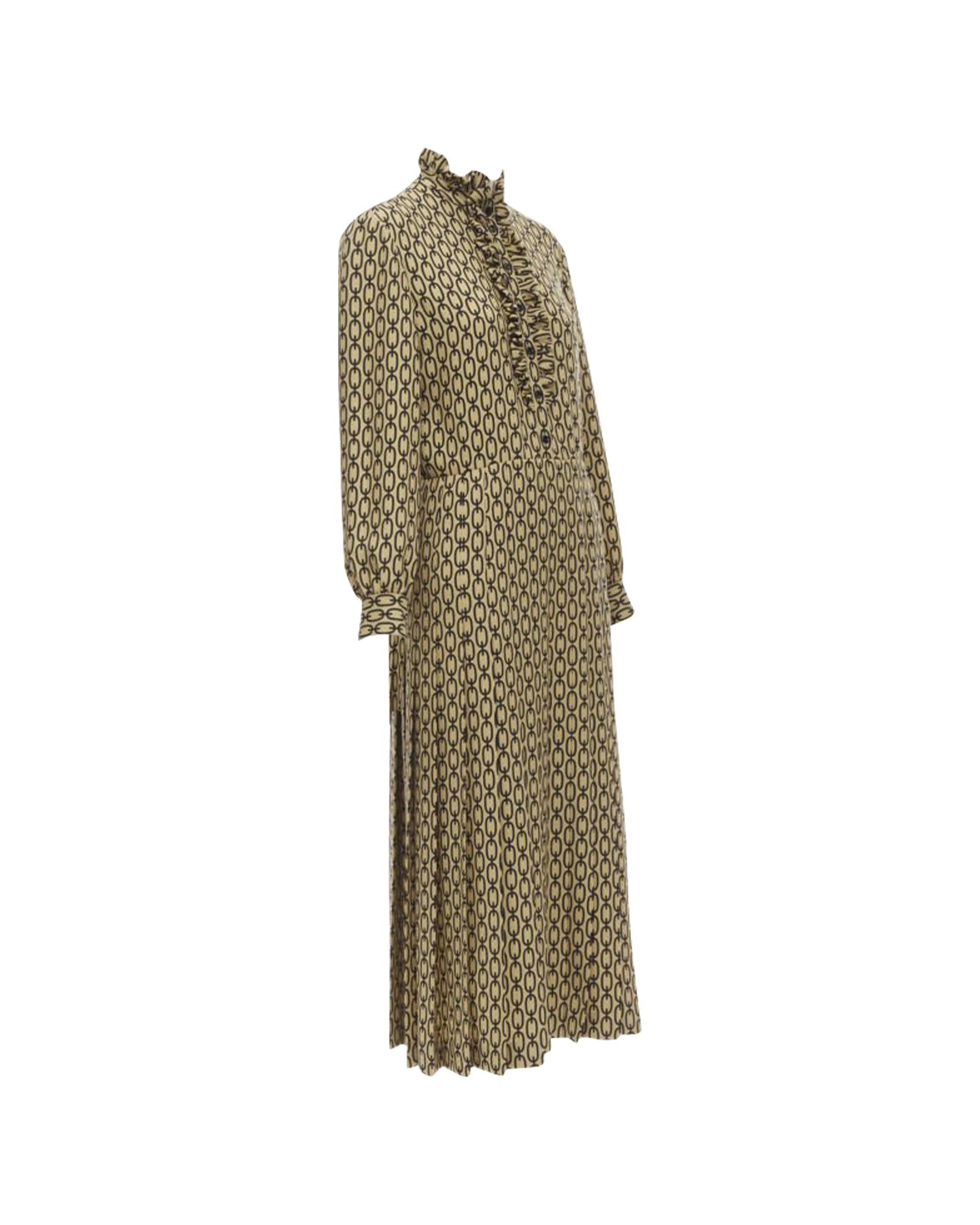 Elegant Printed Long Sleeve Midi Dress with Ruffle Detail