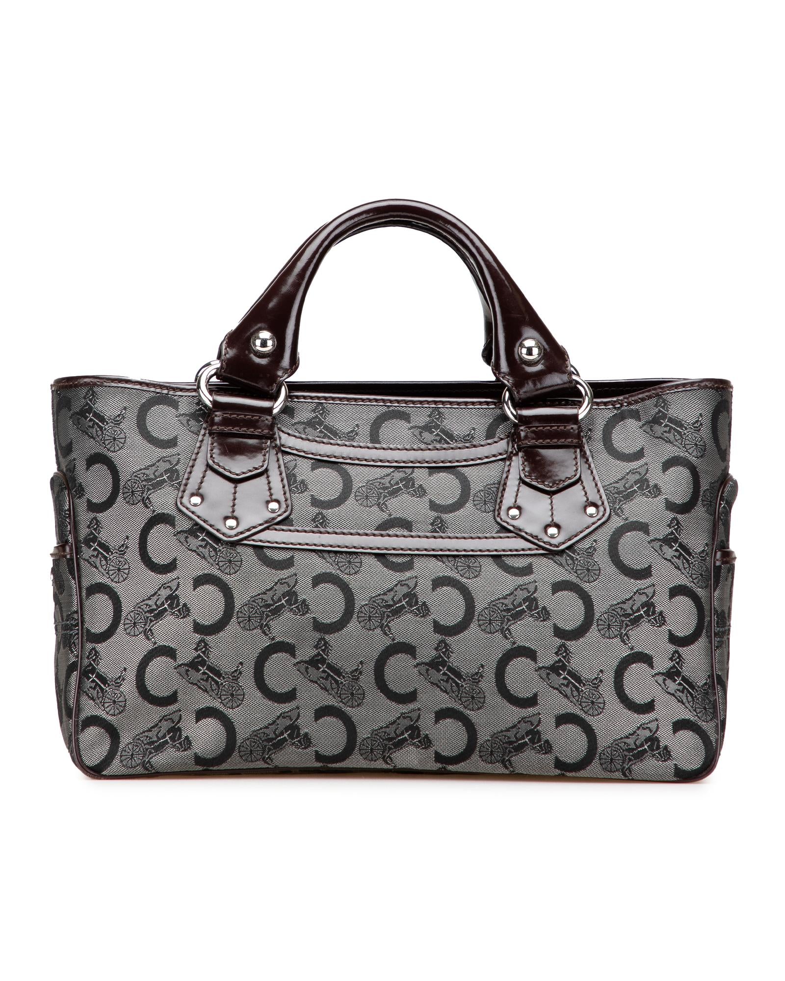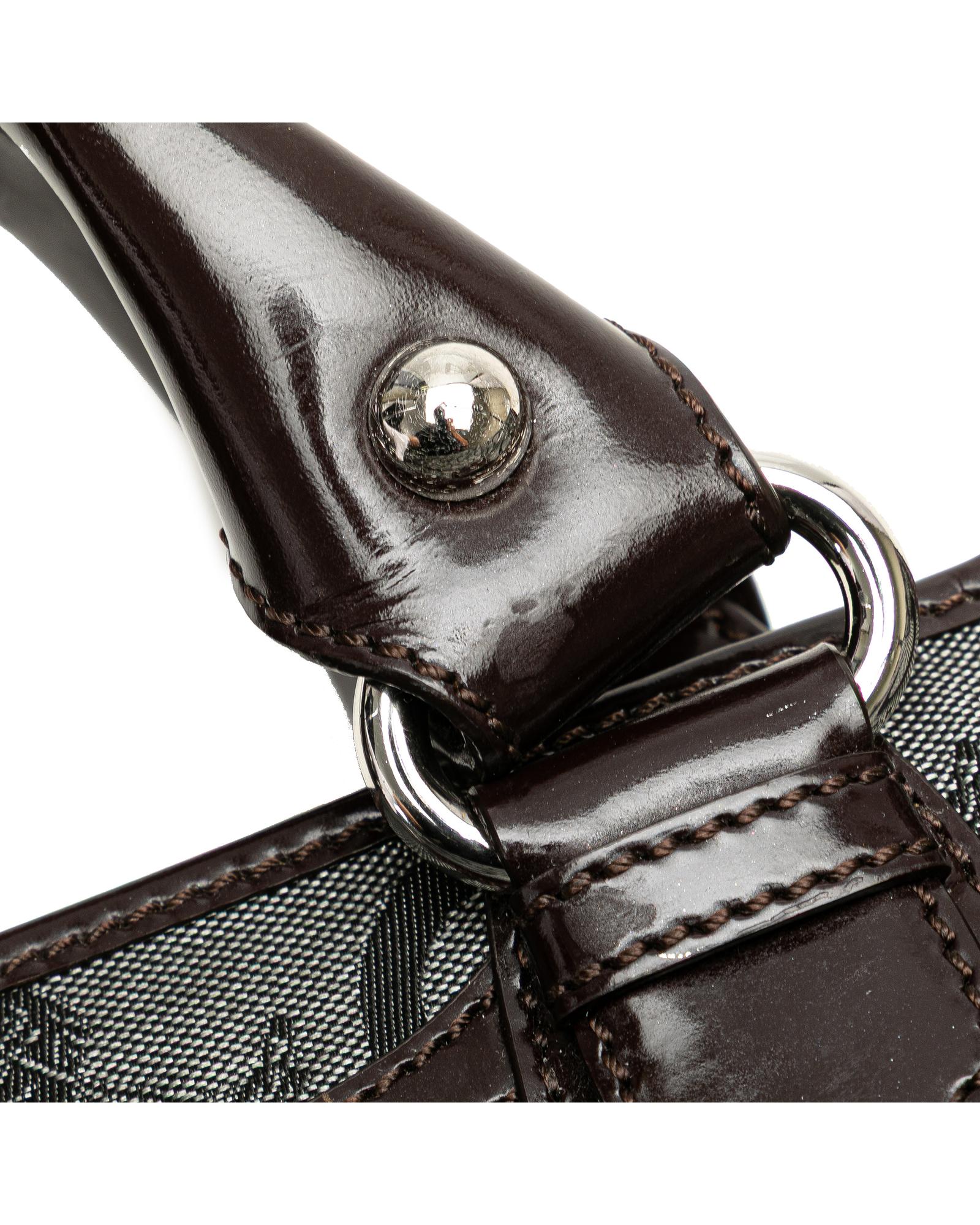 The Boogie features a canvas body with leather trim rolled leather handles exterior slip pockets a top zip closure and an interior zip compartment.