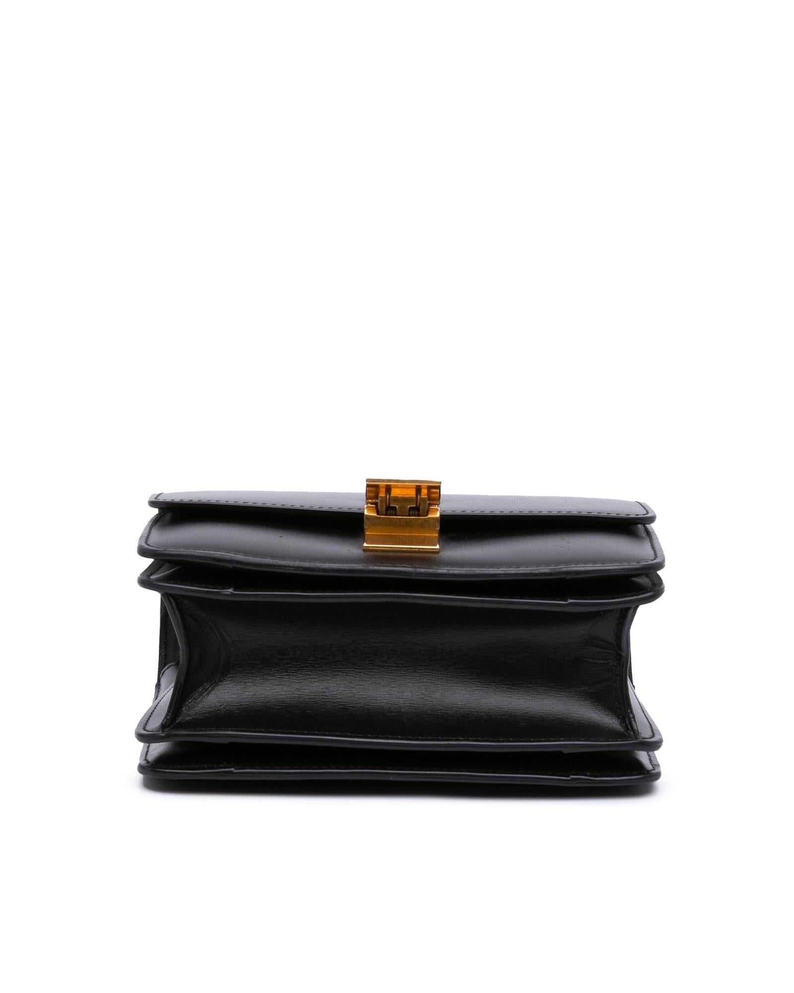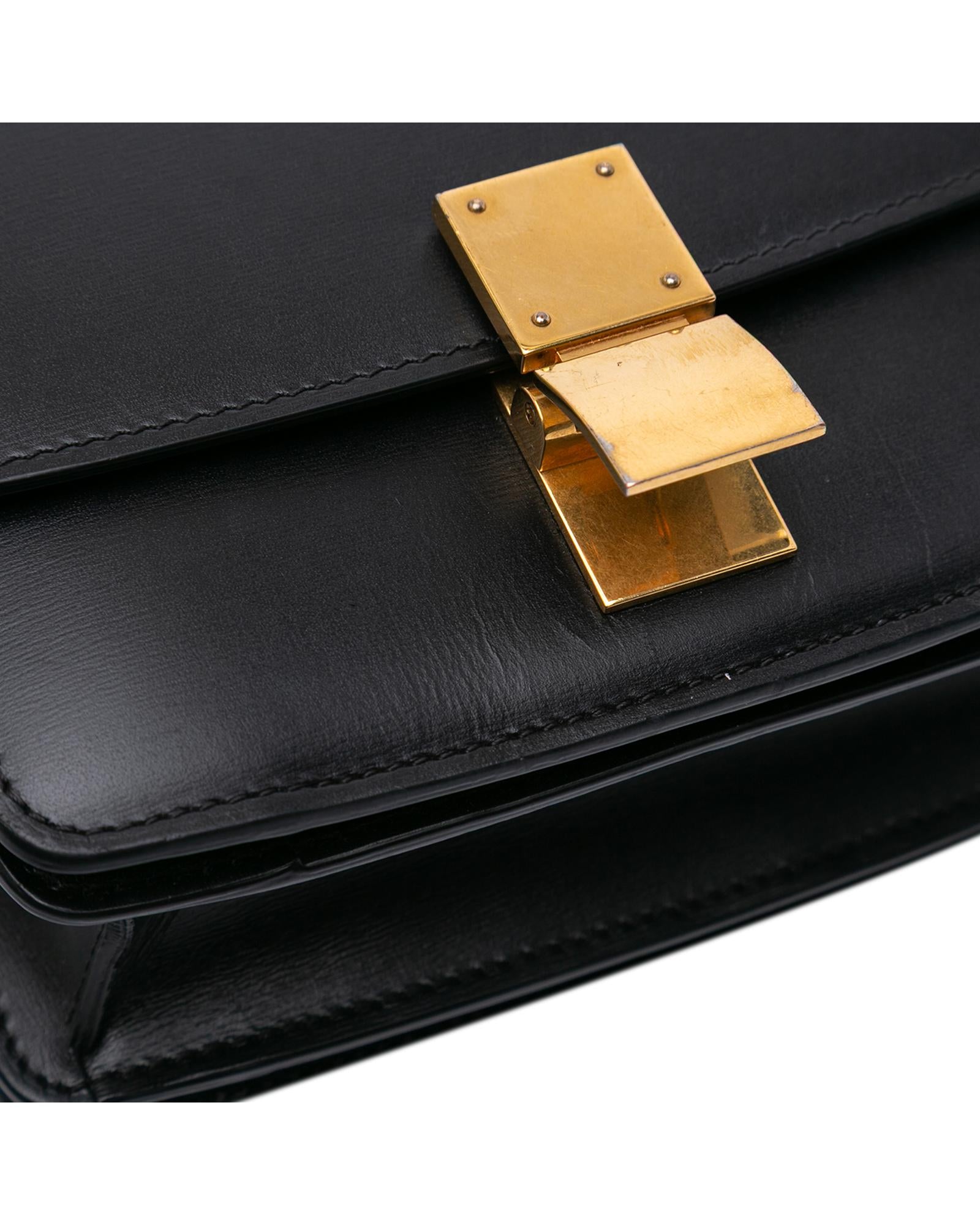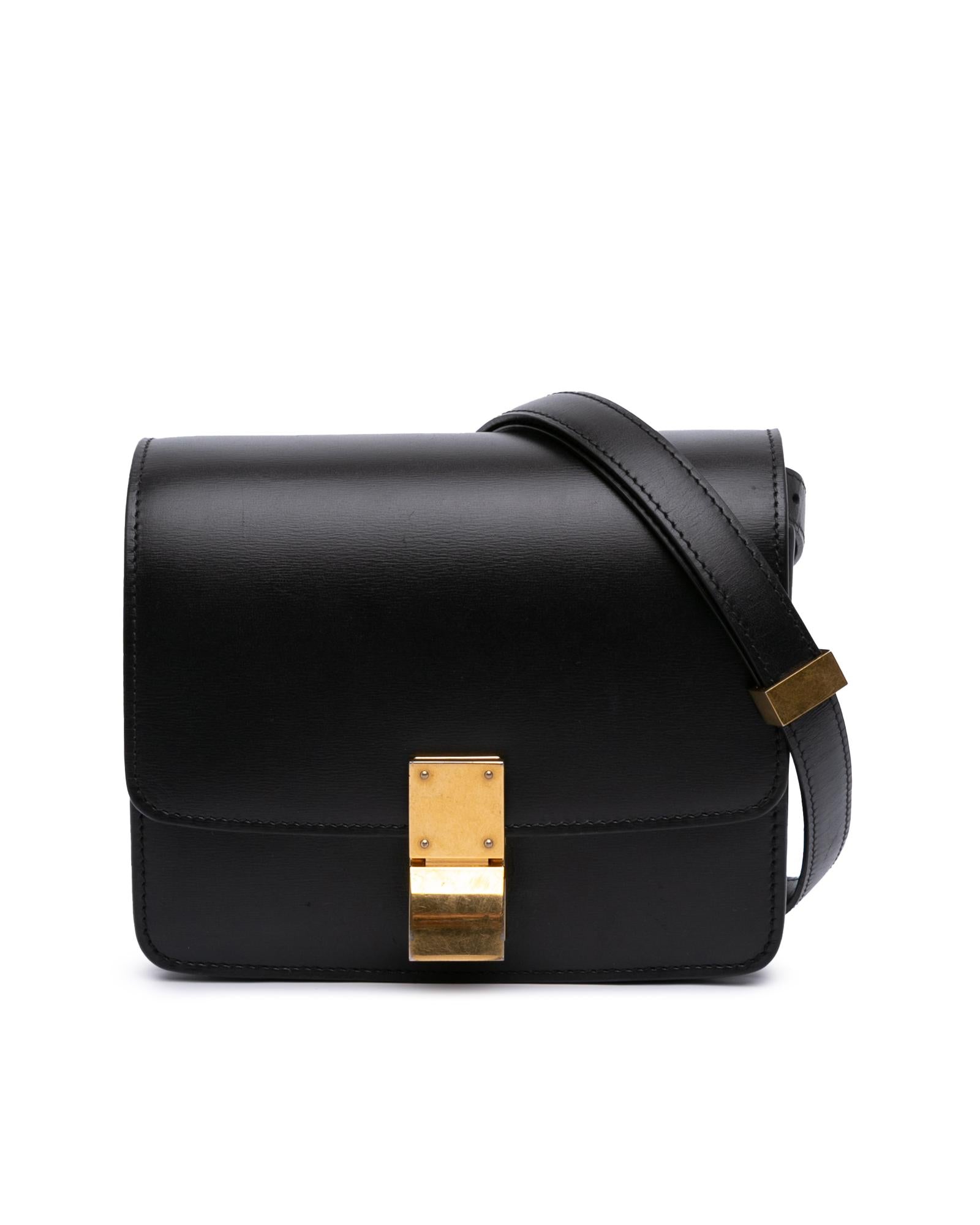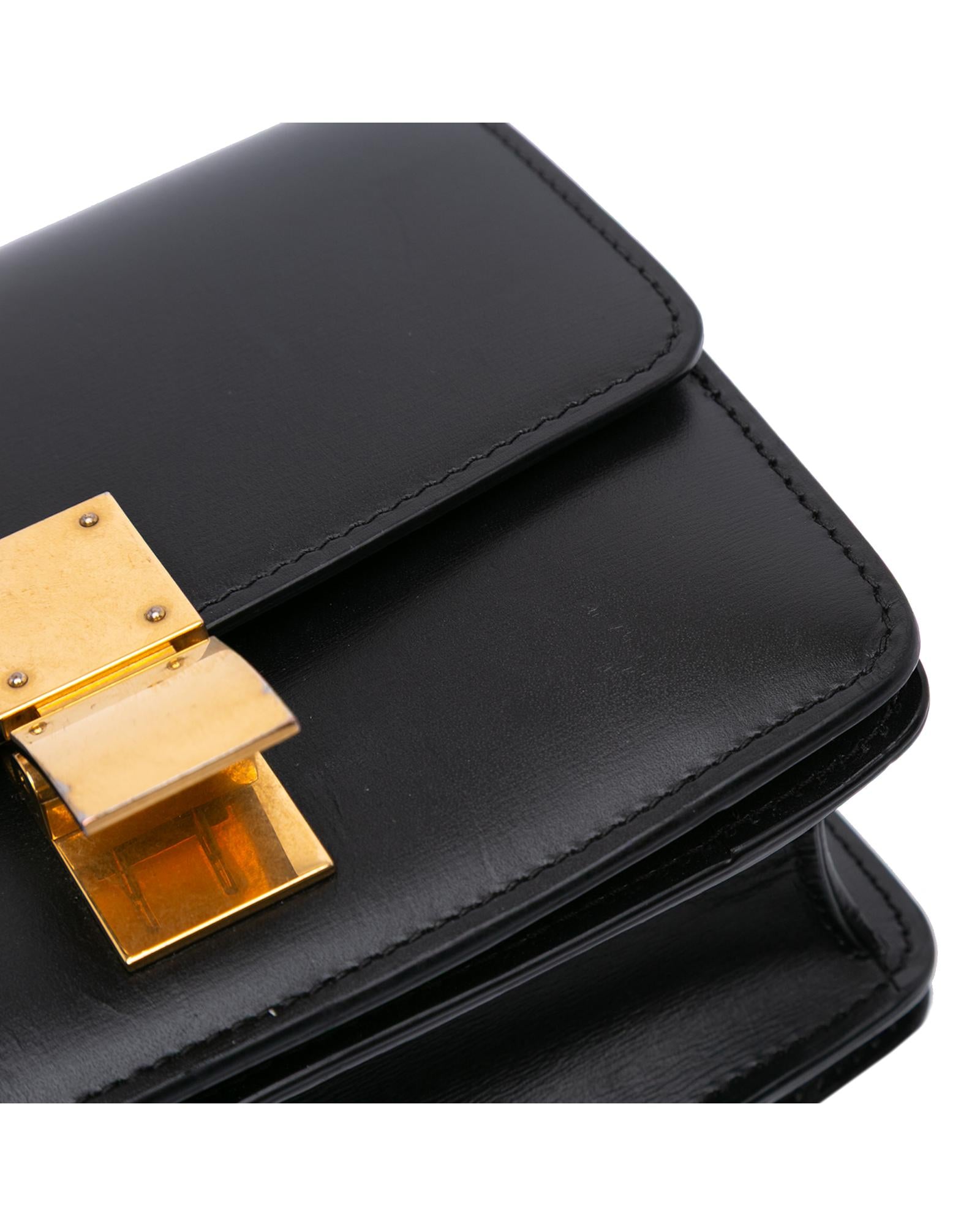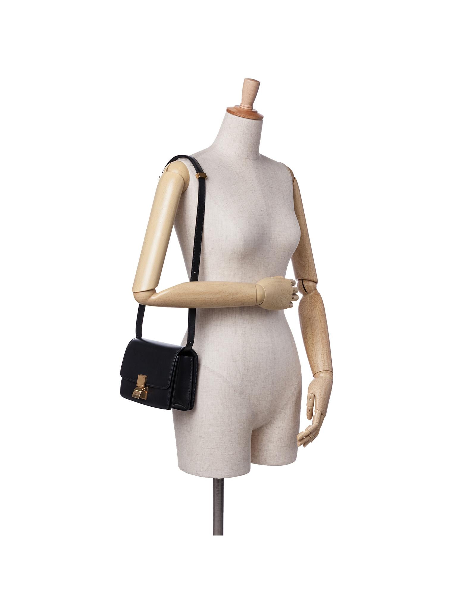 The Classic Box crossbody bag features a leather body a flat leather strap a front flap with a push lock closure and interior slip and zip pockets.Brand: Celine