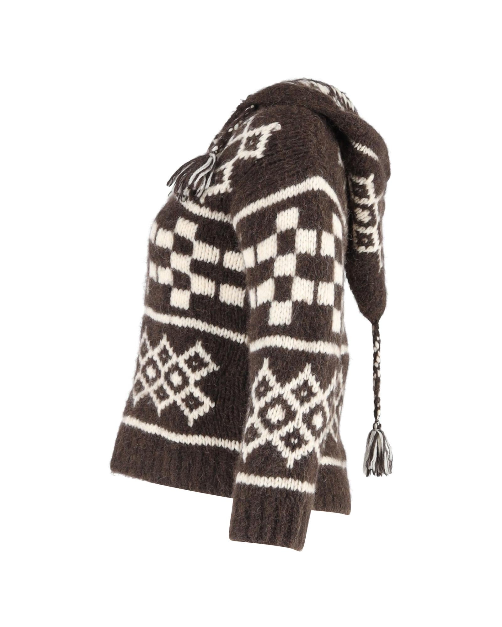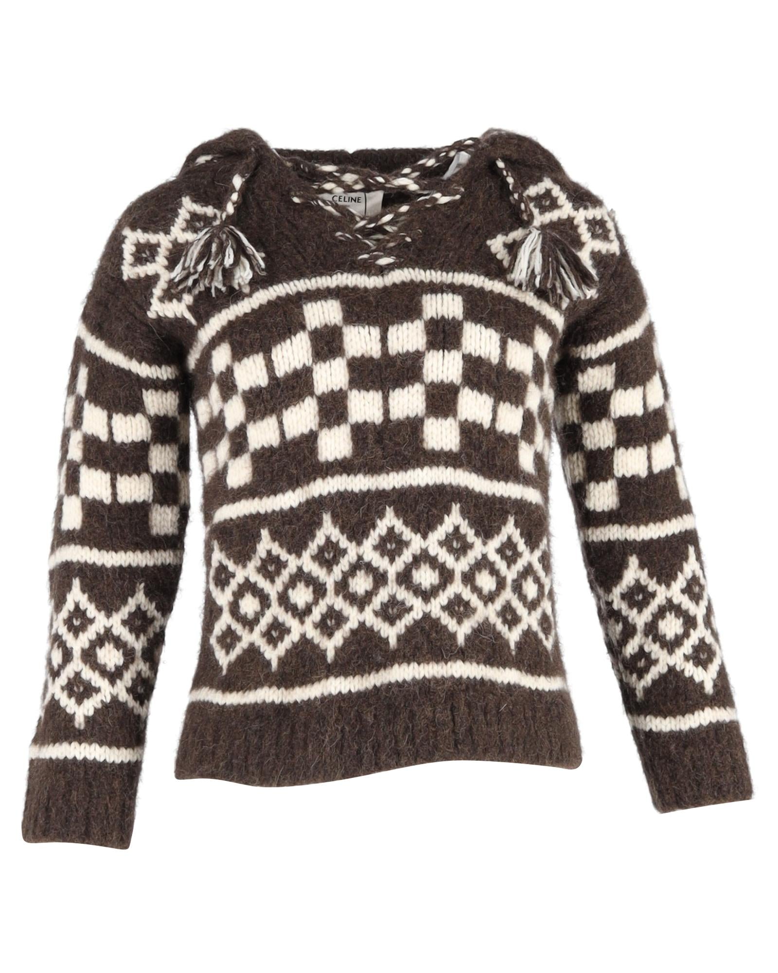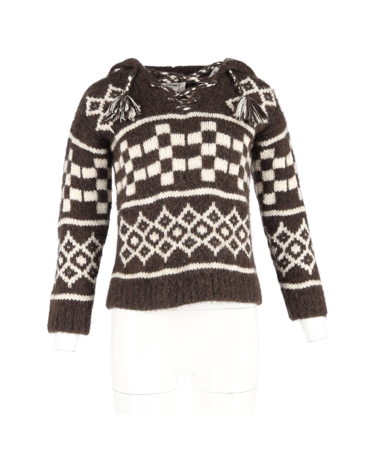 Pullover Knitwear with Geometric Pattern and Tie Neck Detail