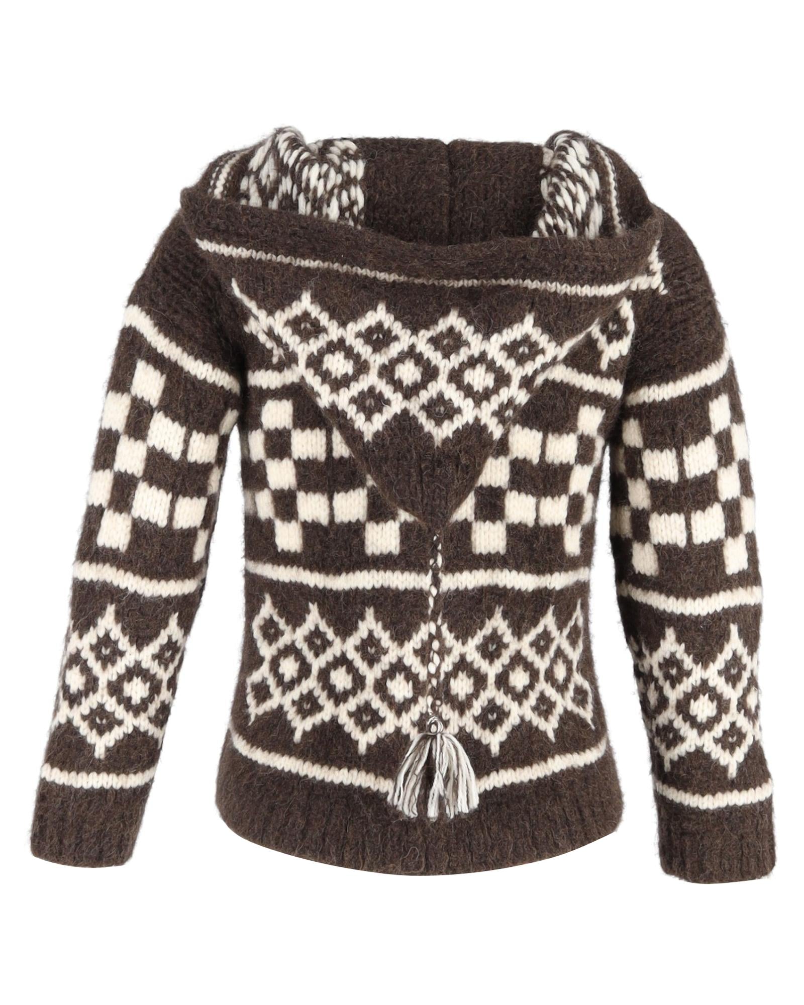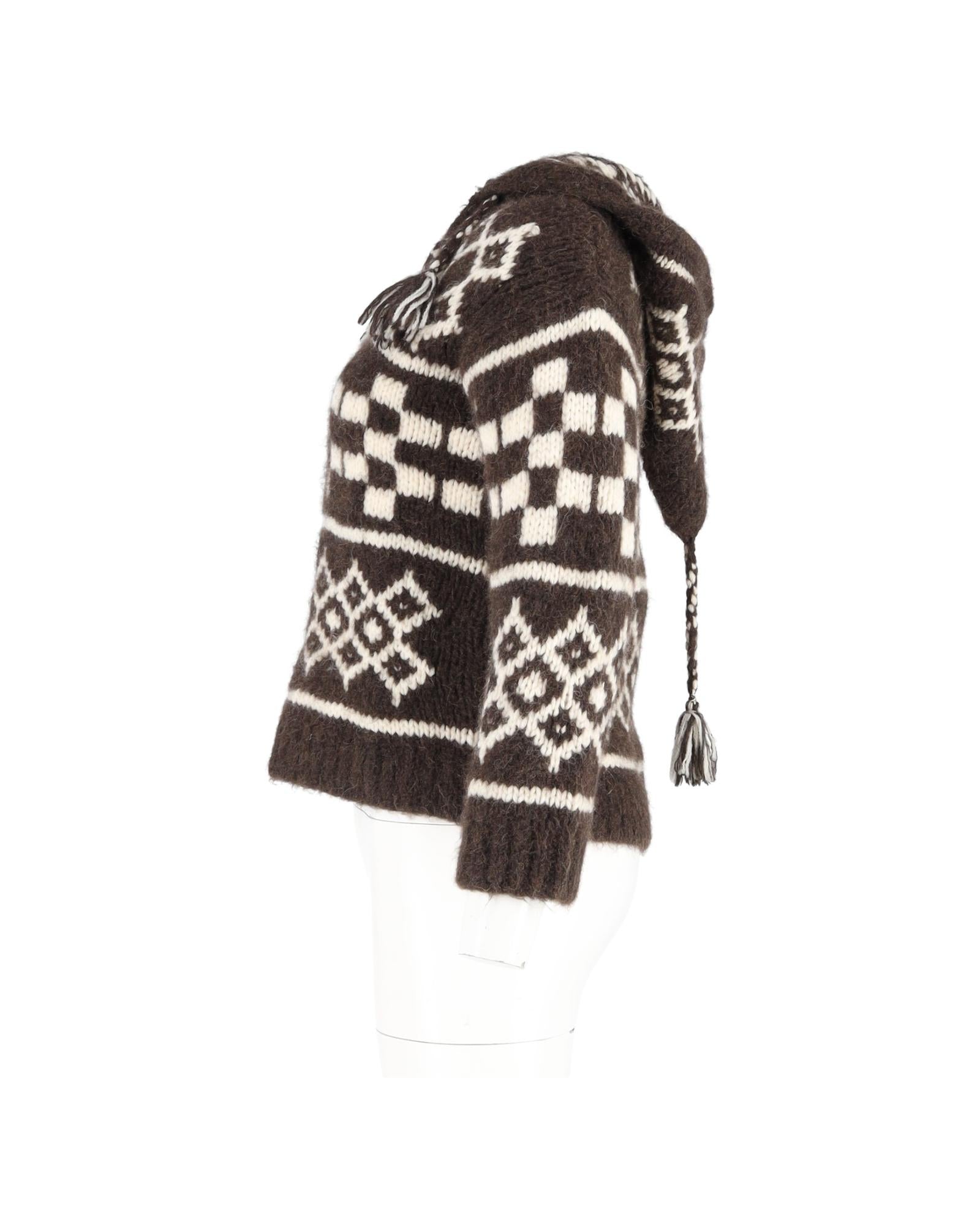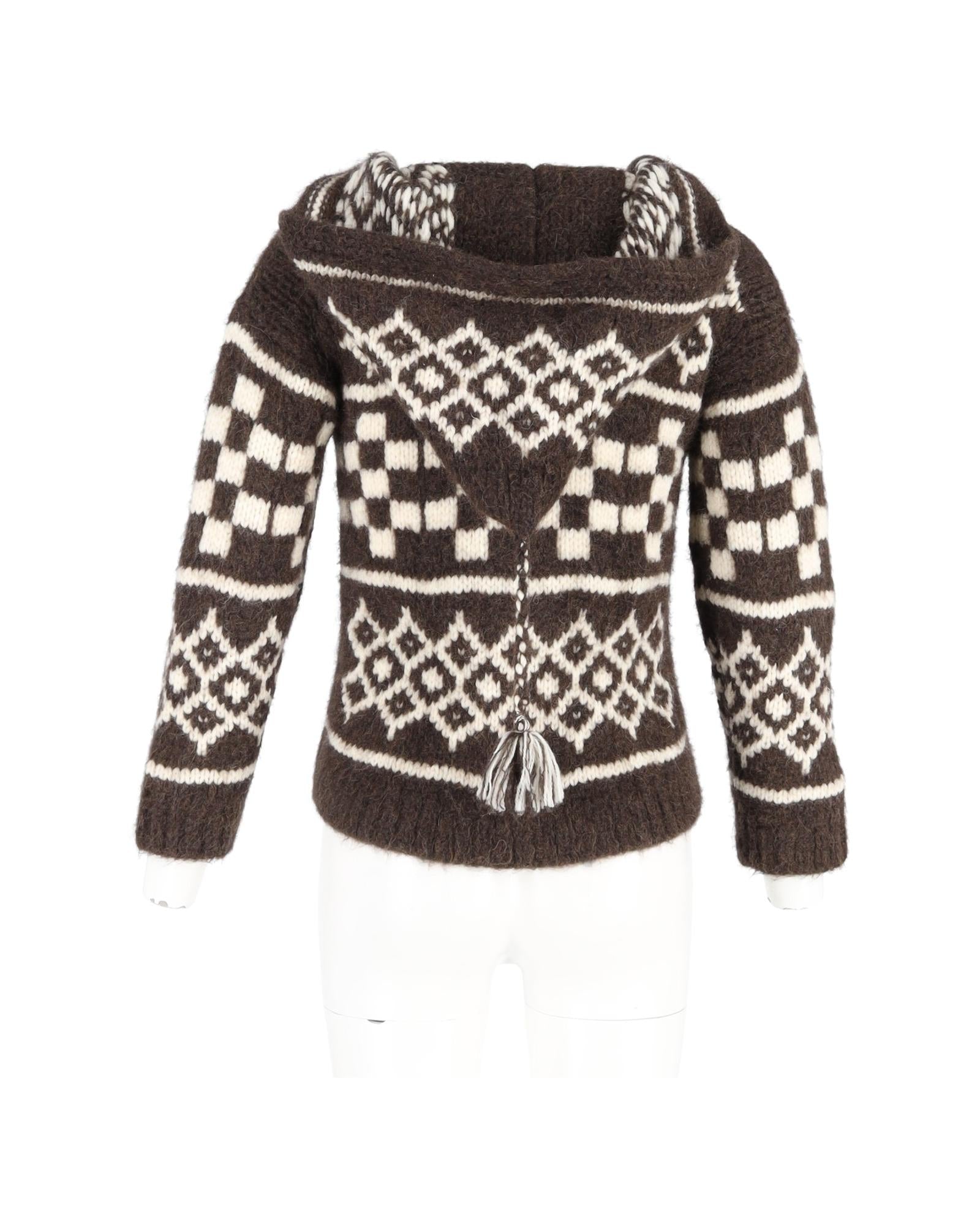 Pullover Knitwear with Geometric Pattern and Tie Neck Detail