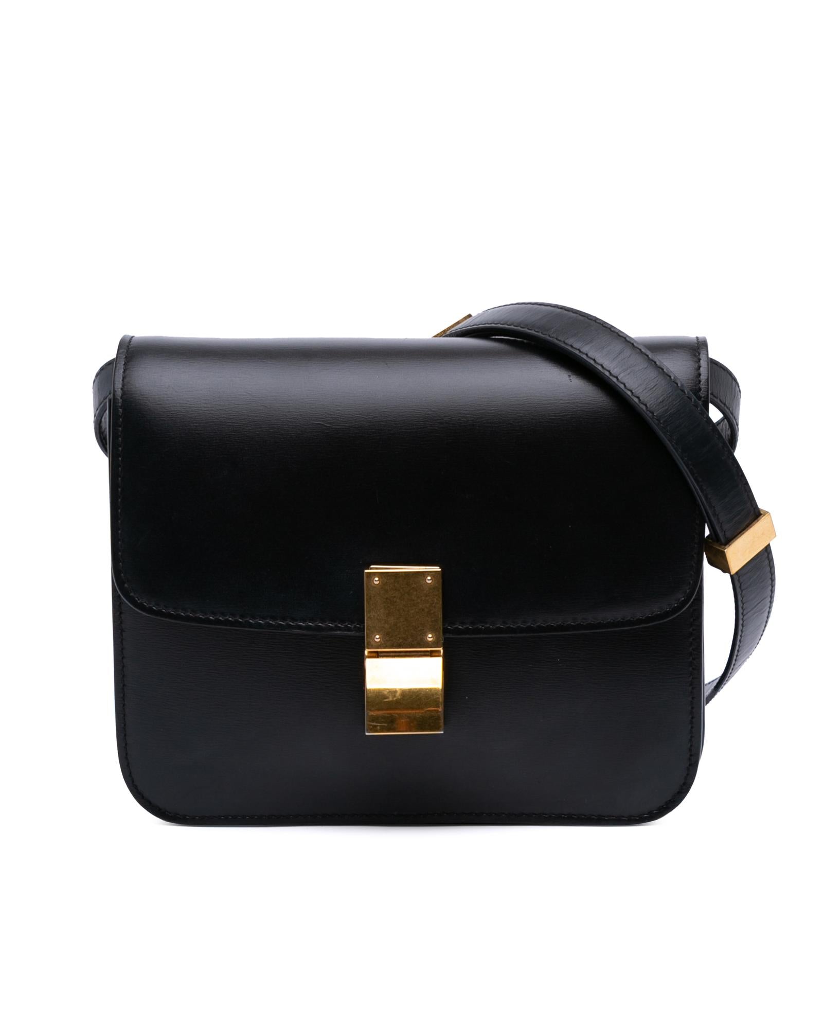 The Classic Box crossbody bag features a leather body a flat leather strap a front flap with a push lock closure and interior slip and zip pockets.Brand: Celine