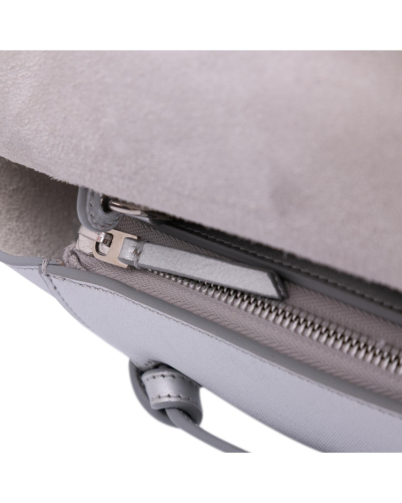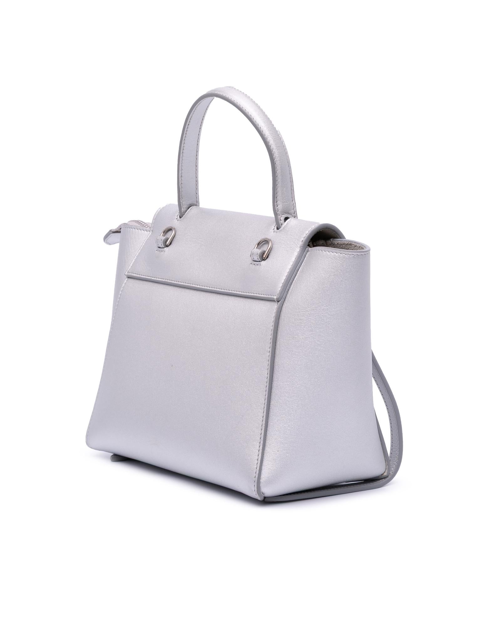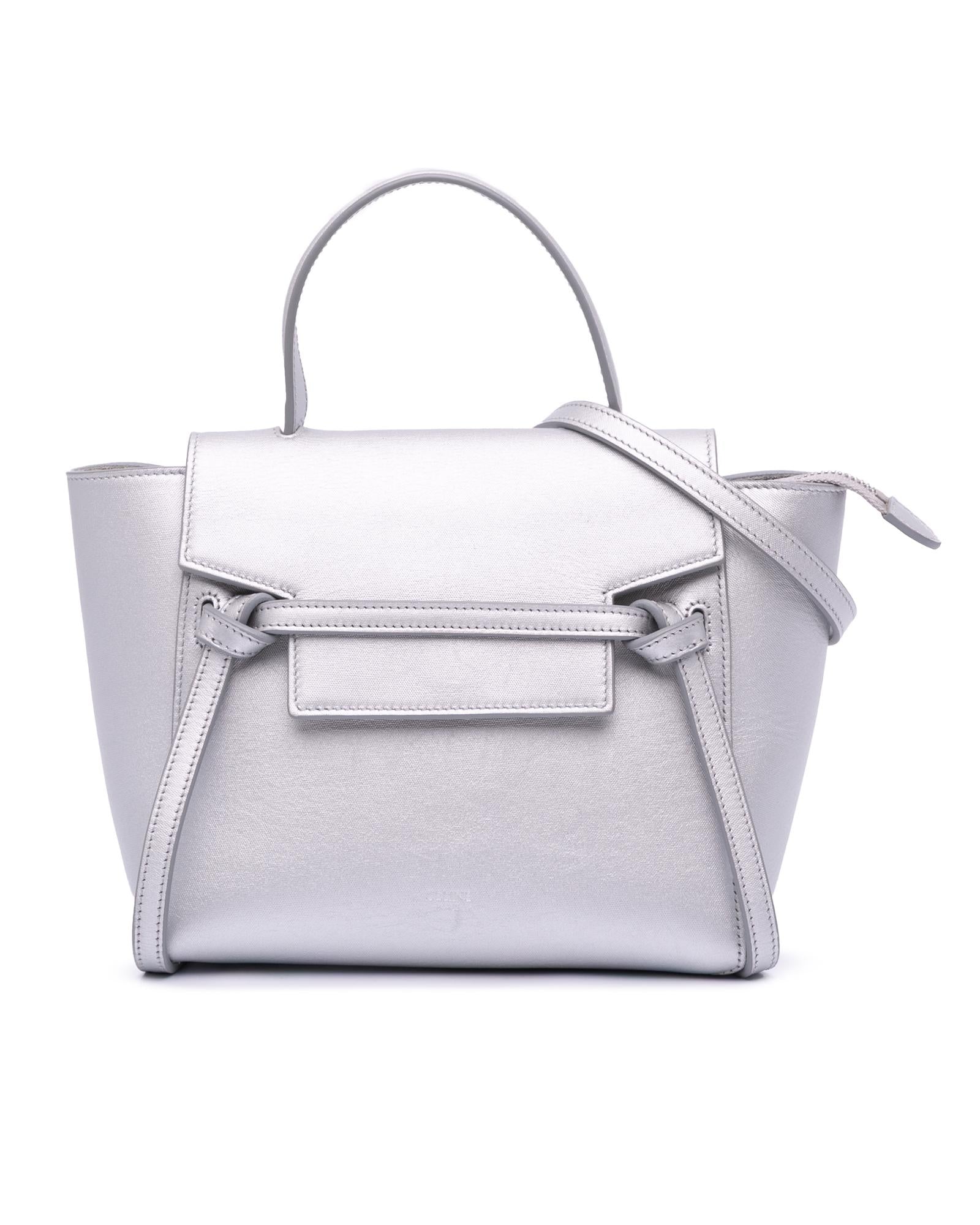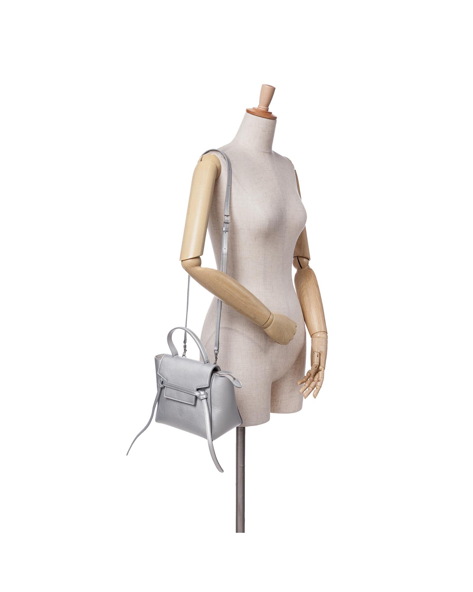 The Belt bag features a laminated calf leather body a flat leather handle a detachable flat leather shoulder strap a top flap with slip-through and magnetic snap closure and a top zip closure.Brand: Celine
