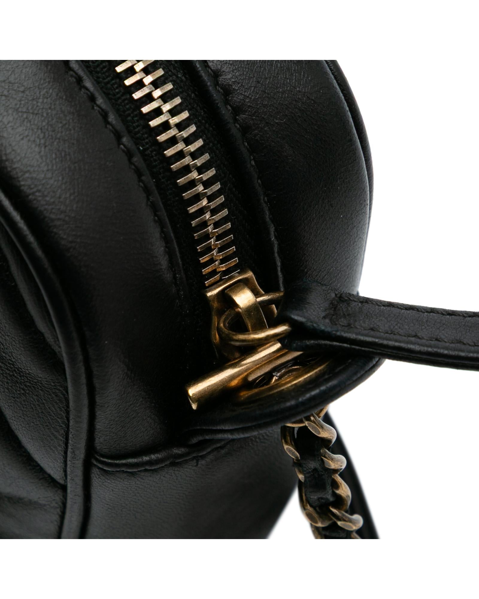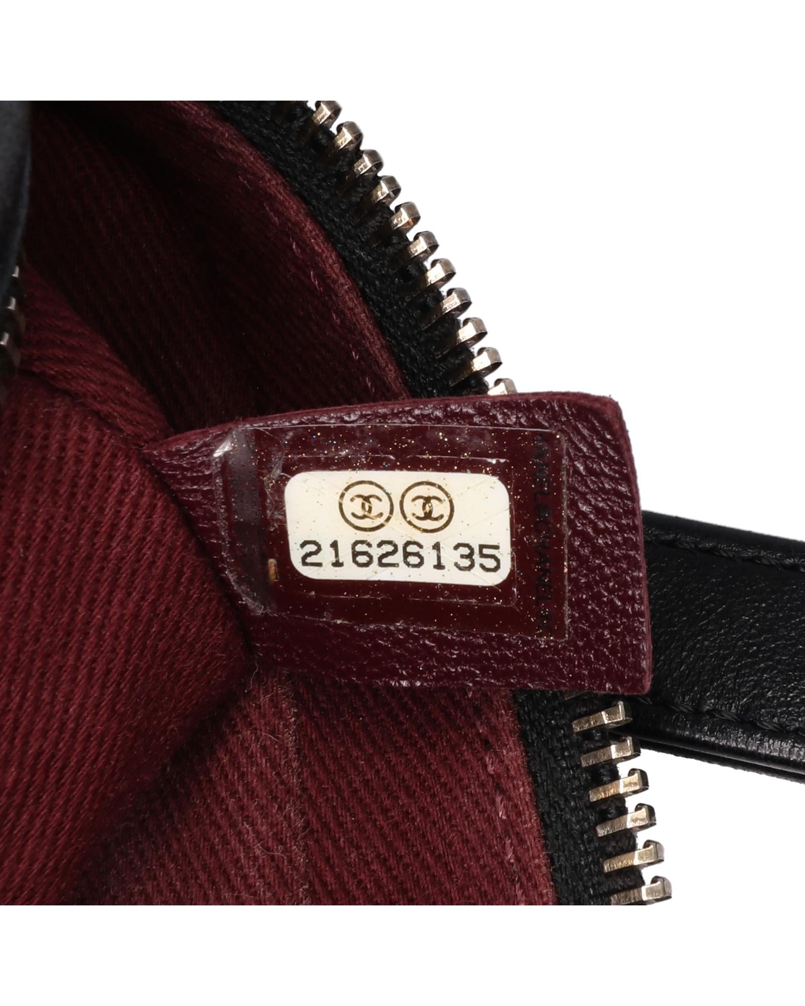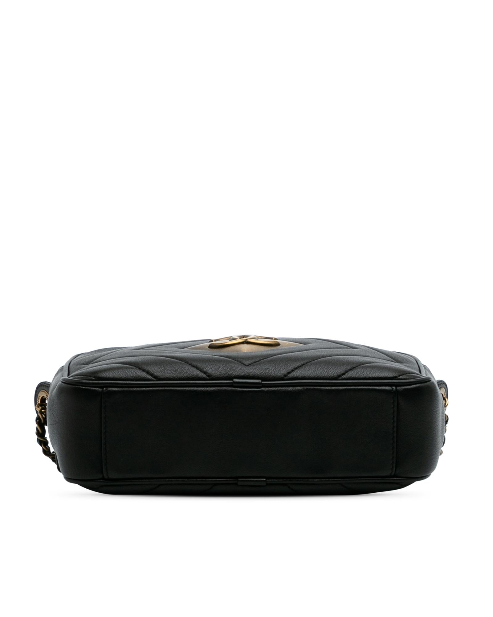This crossbody bag features a quilted lambskin body leather woven chain strap with leather shoulder guard a top zip closure and an interior zip pocket.Brand: Chanel