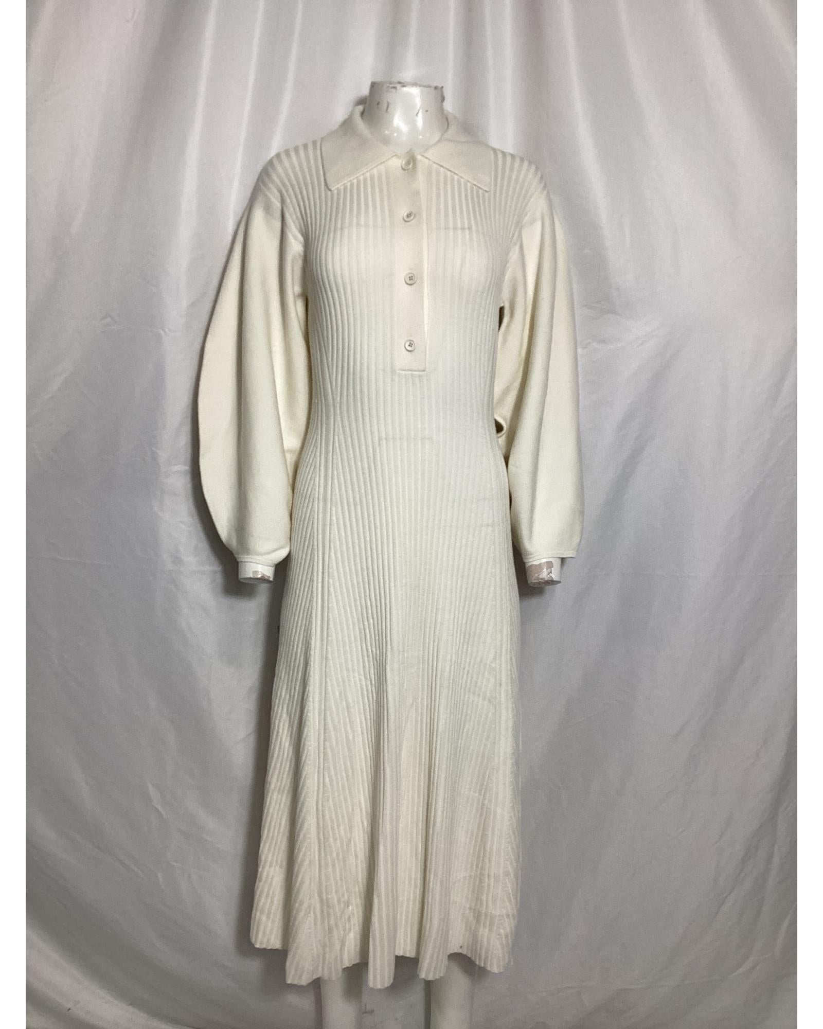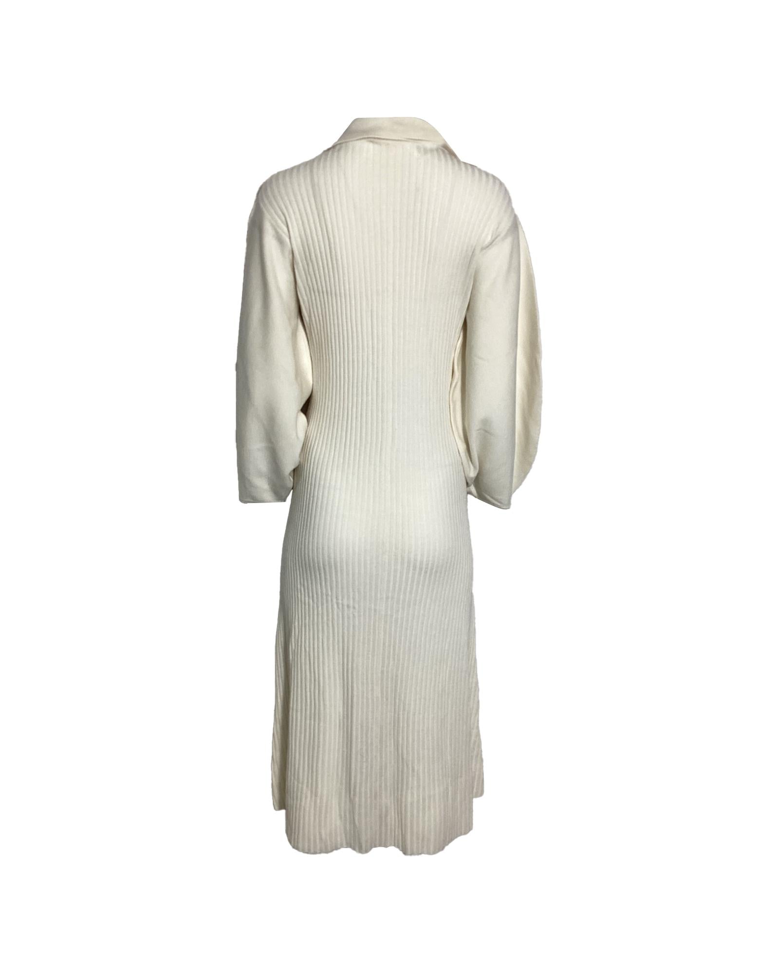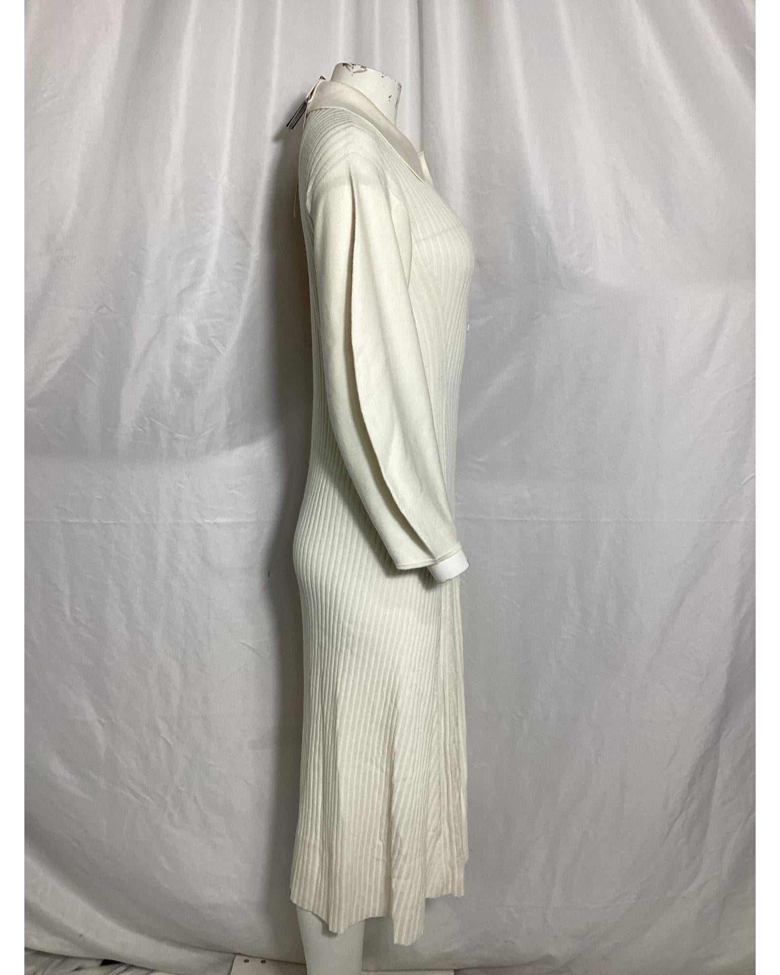 - Knit Midi Collared Dress in Cream Wool