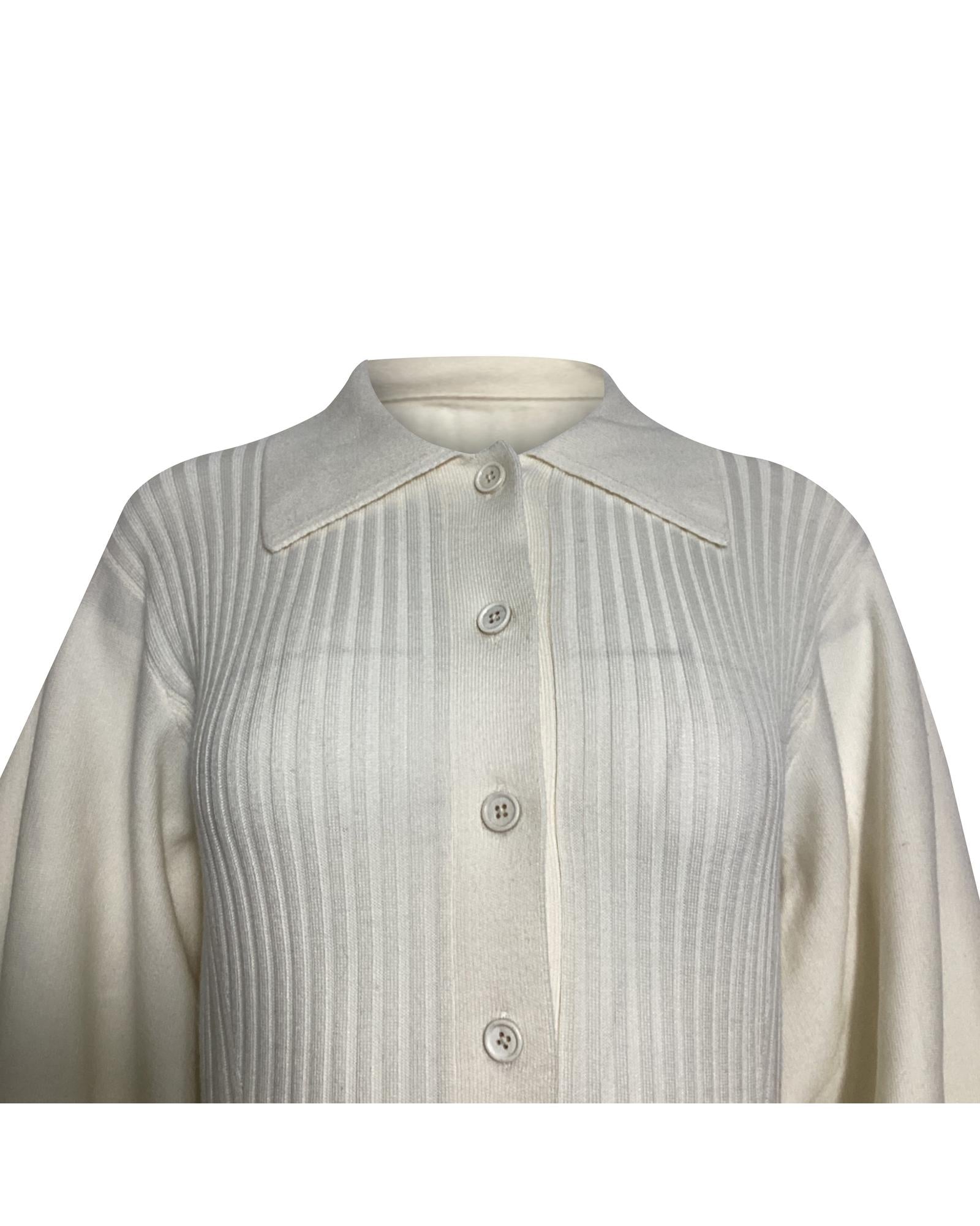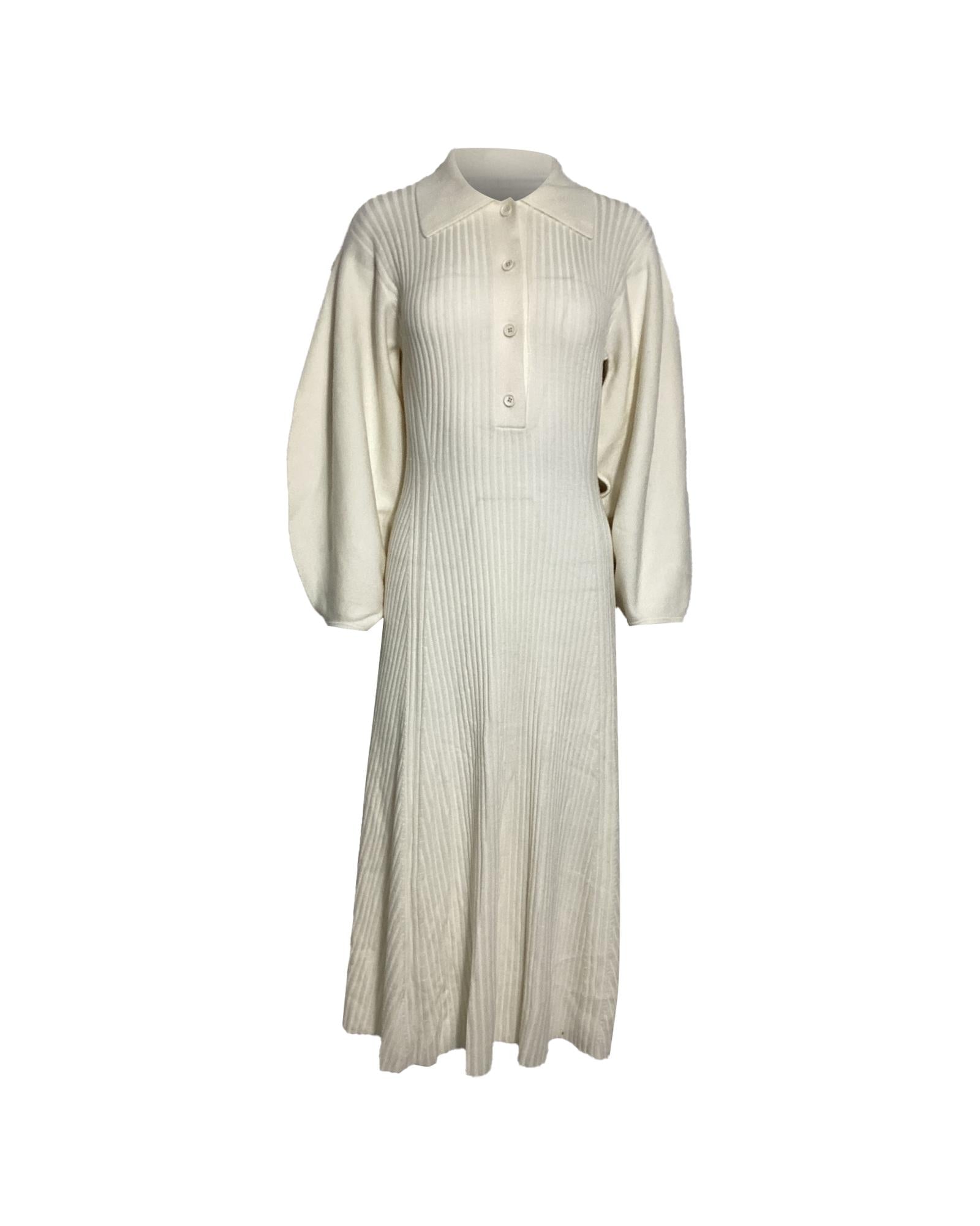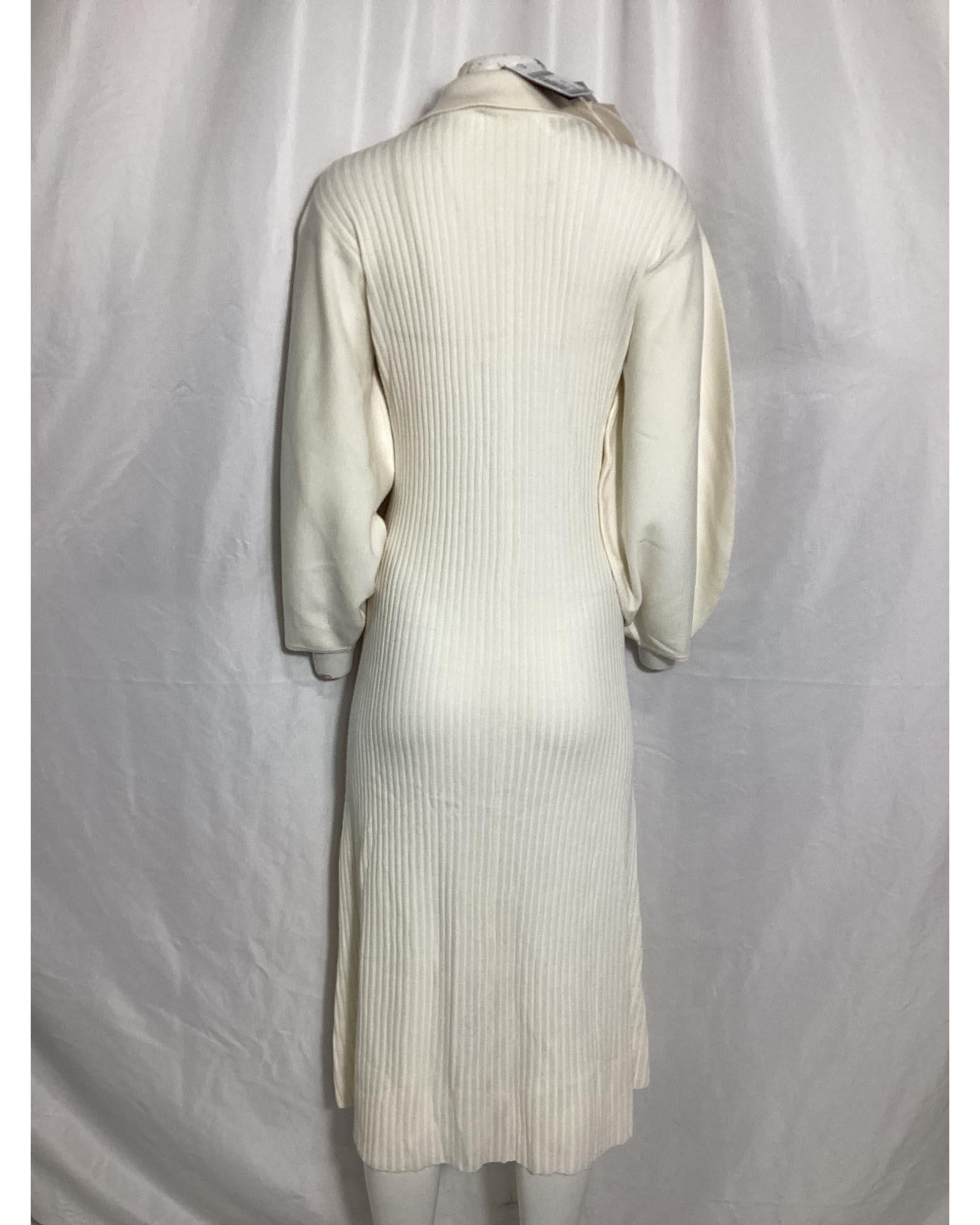 - Knit Midi Collared Dress in Cream Wool