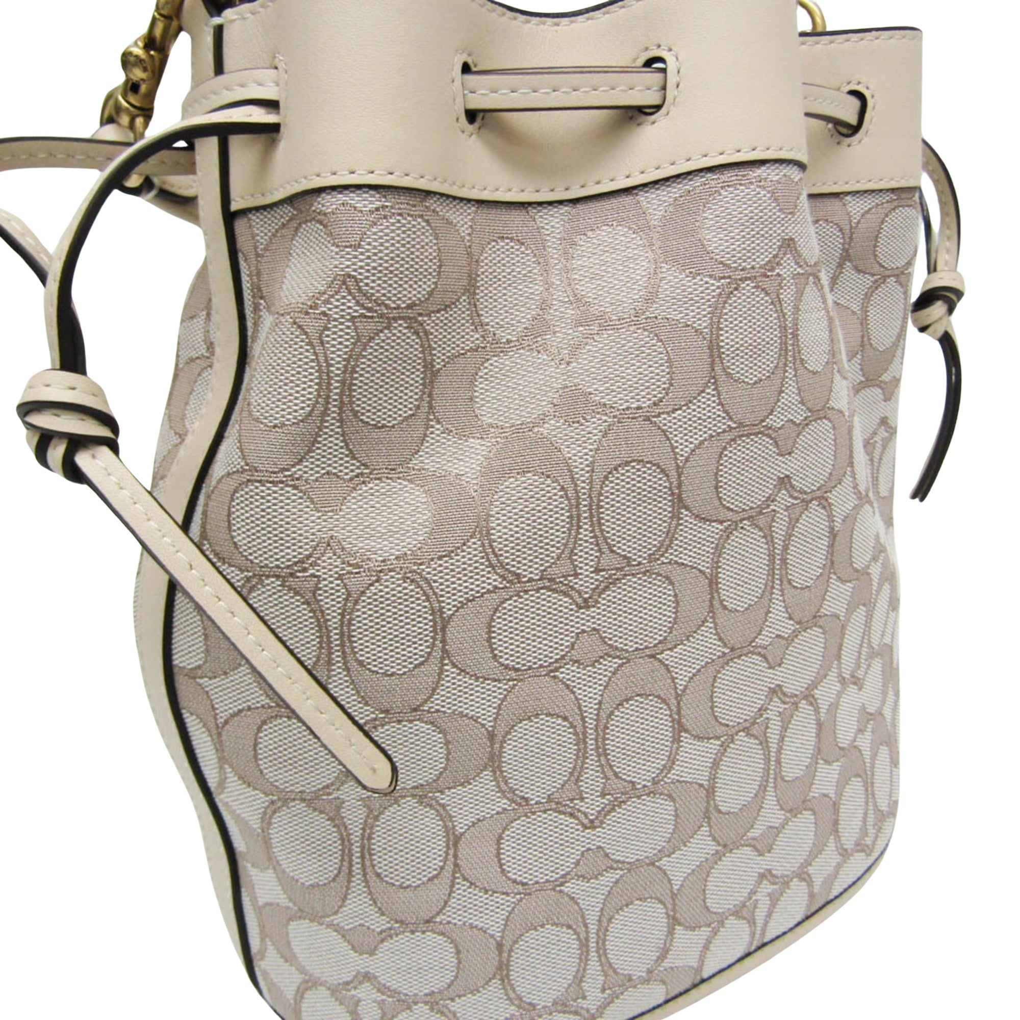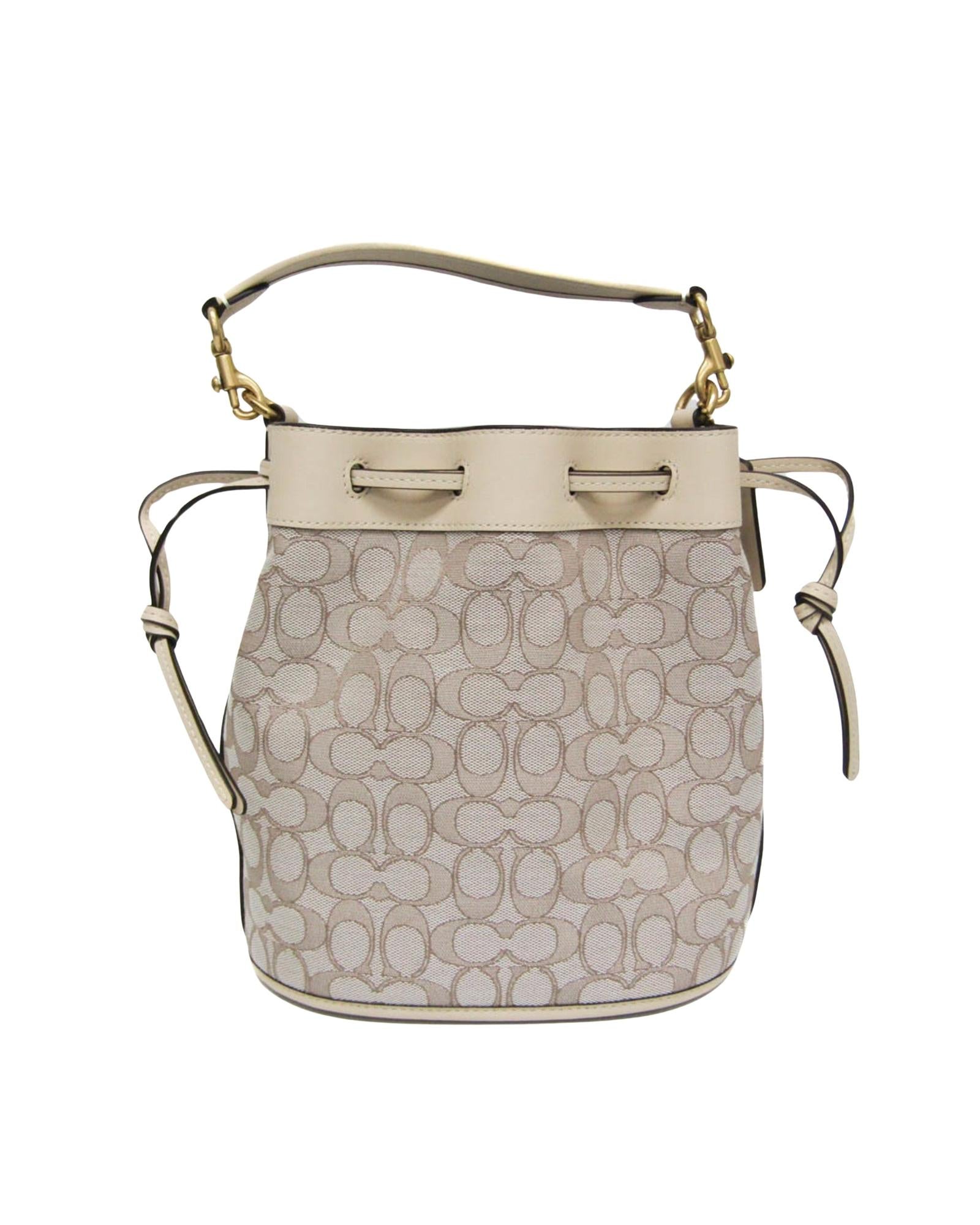This Coach Signature Field bucket bag model C3853 is a stylish and versatile accessory. Crafted from light beige canvas with leather accents this bag exudes sophistication.
