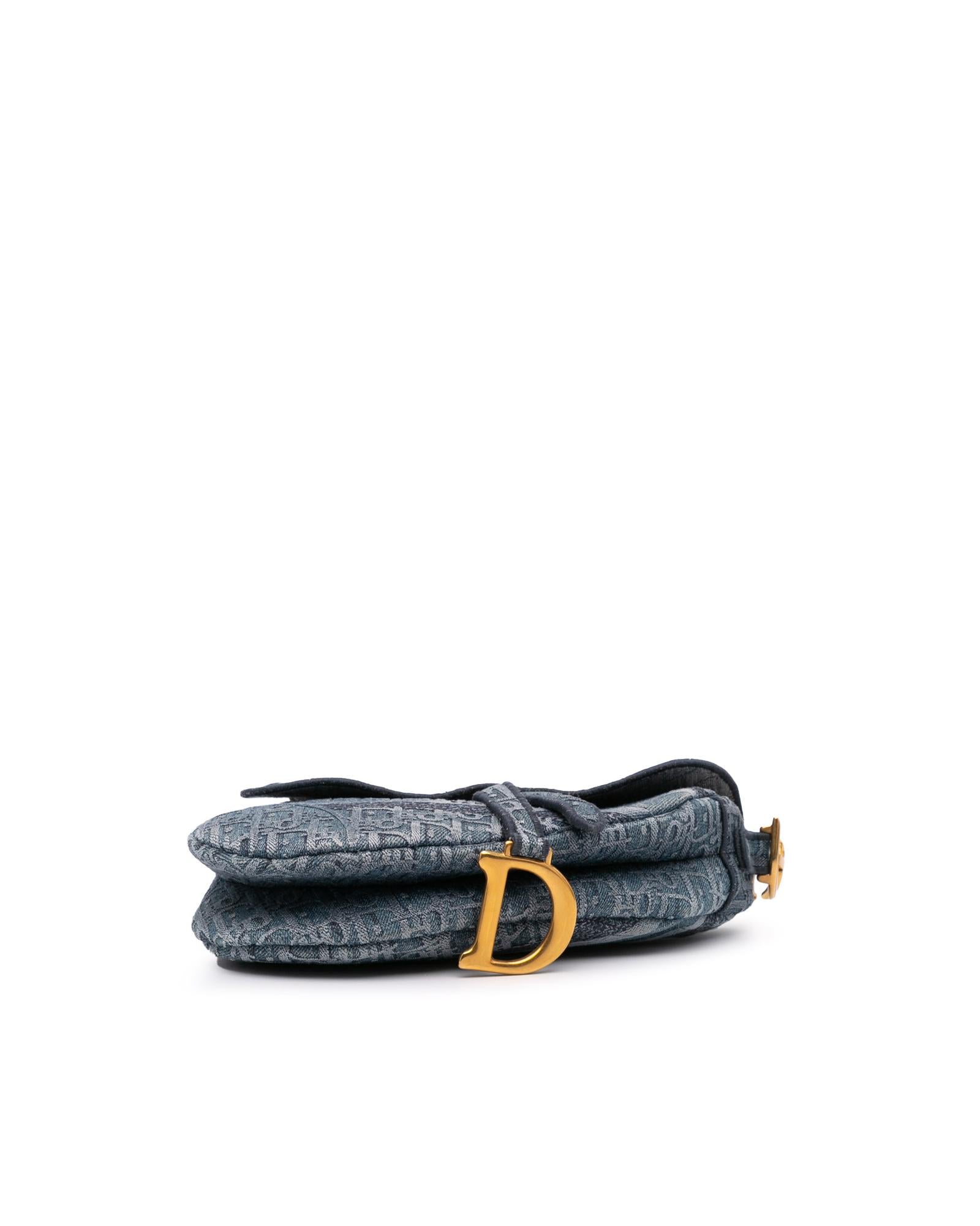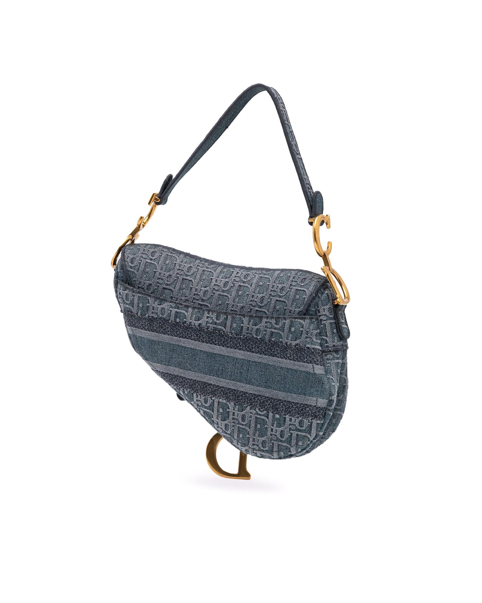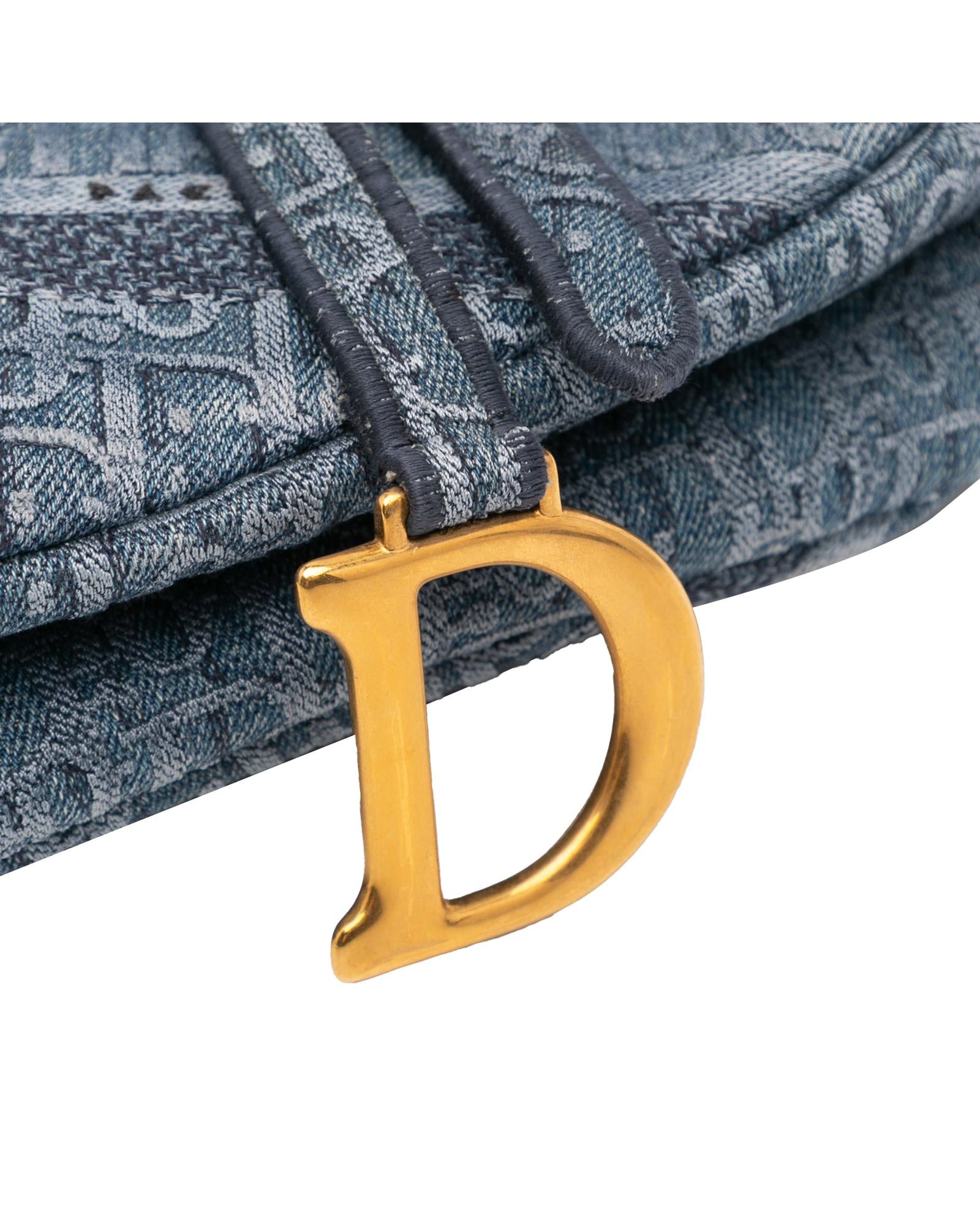 The Saddle features a denim body a flat strap a flap closure and an exterior back slip pocket.Brand: Dior
