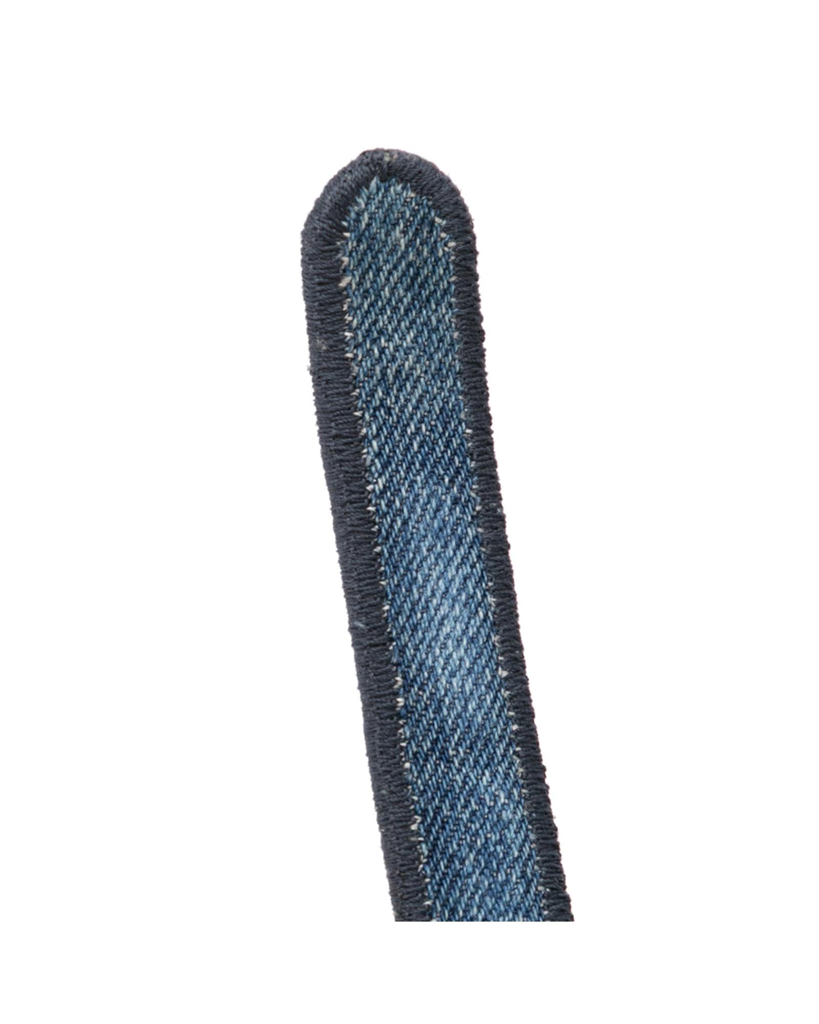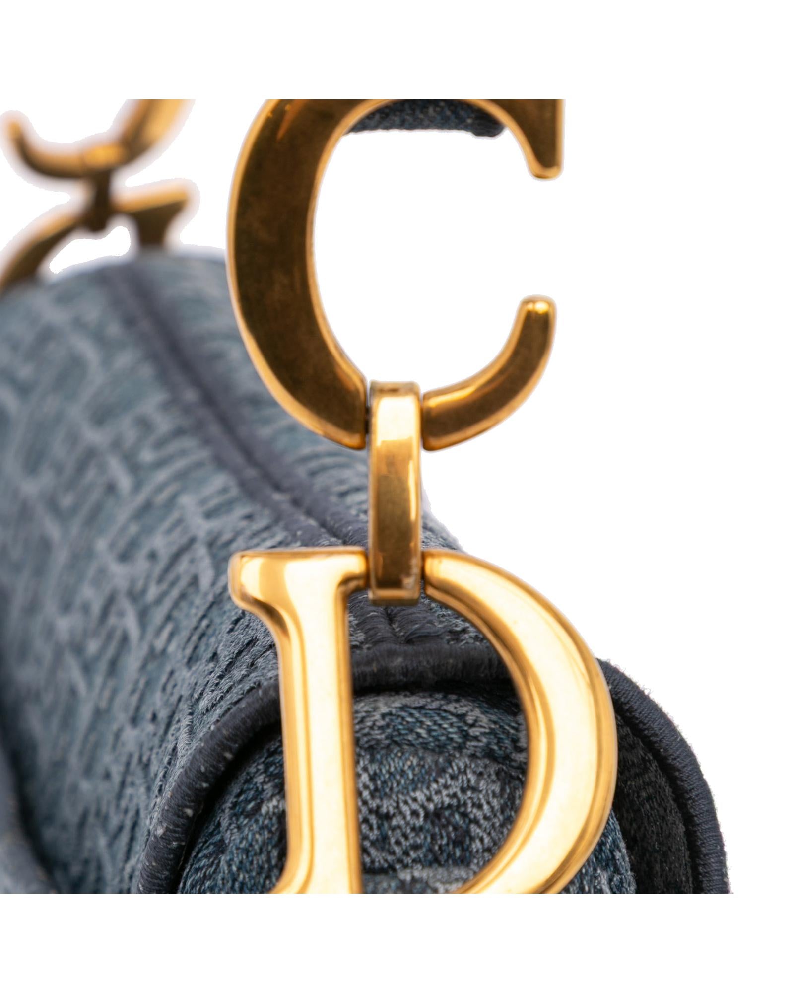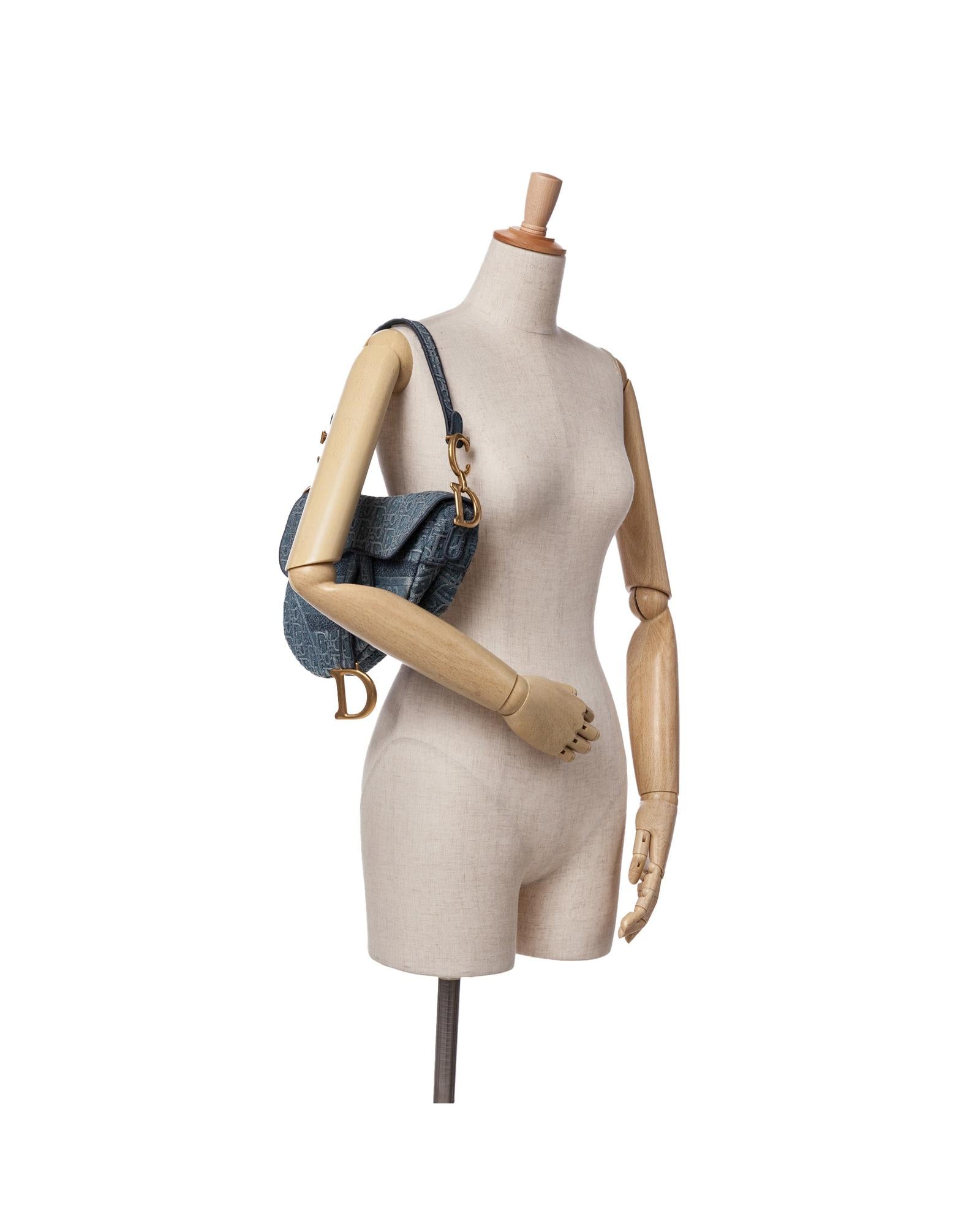The Saddle features a denim body a flat strap a flap closure and an exterior back slip pocket.Brand: Dior