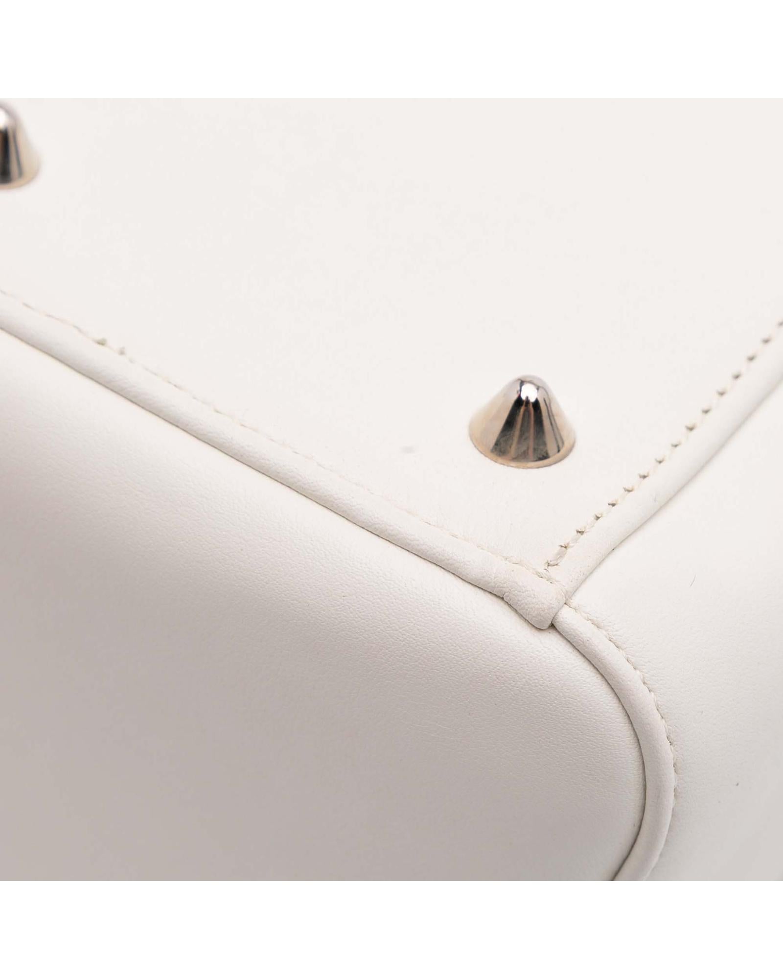 This satchel features a leather body flat leather handles a detachable strap a top zip closure and an interior zip pocket.Brand: Dior