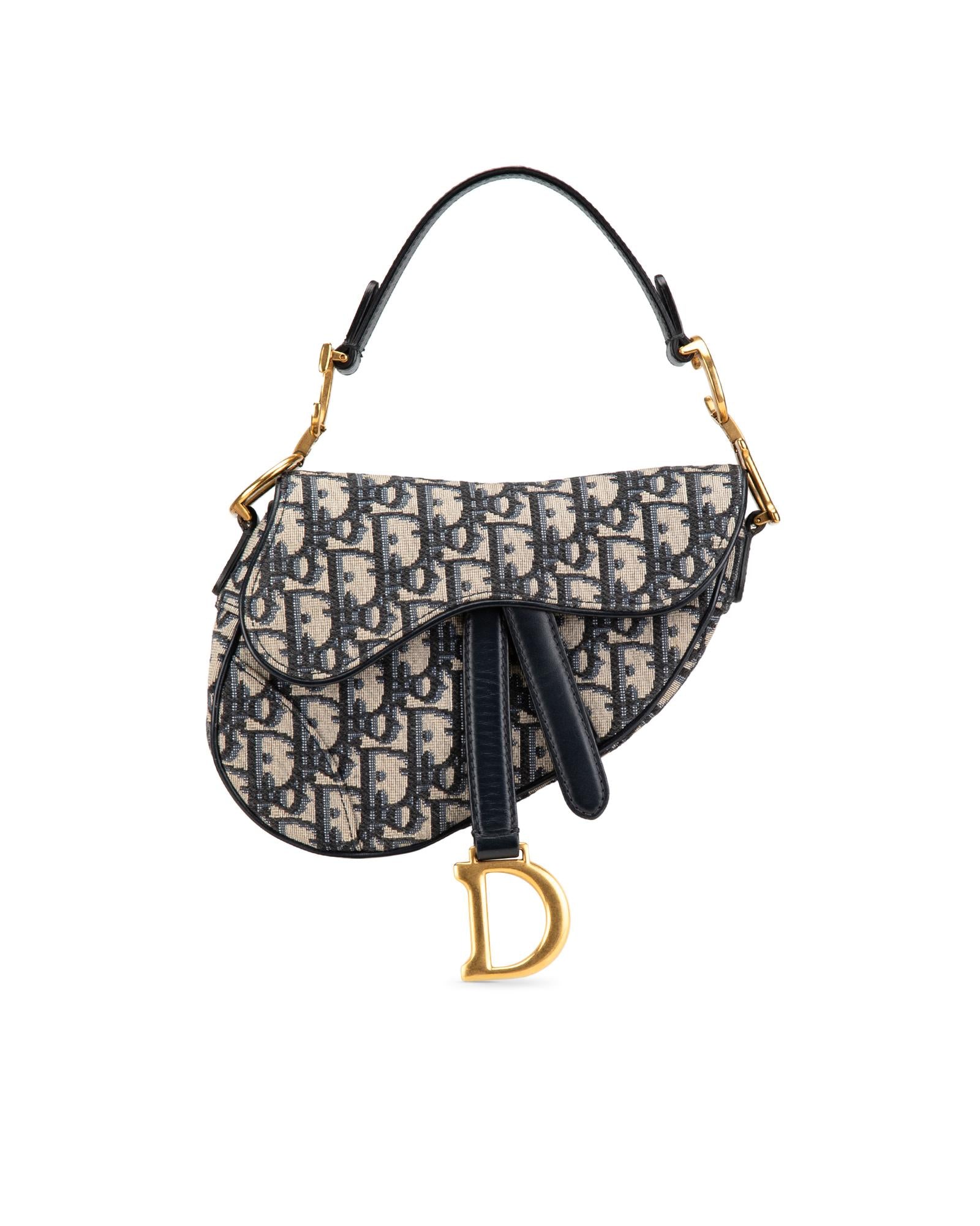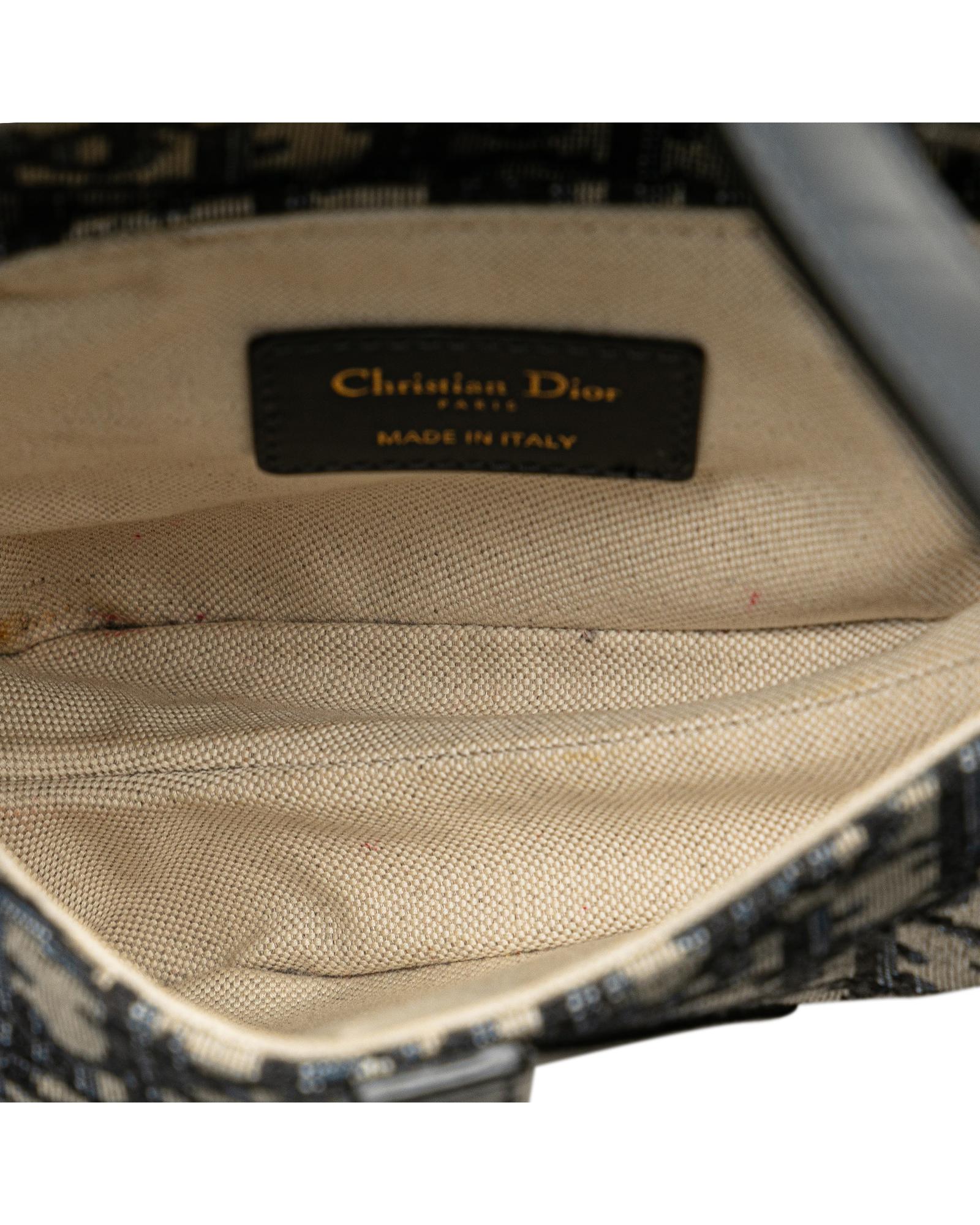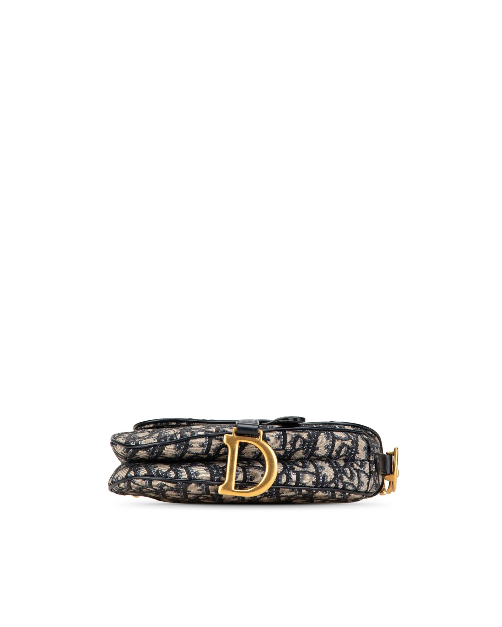 The Saddle features a canvas body a flat leather handle and a flap with touch fasteners closure.Brand: Dior