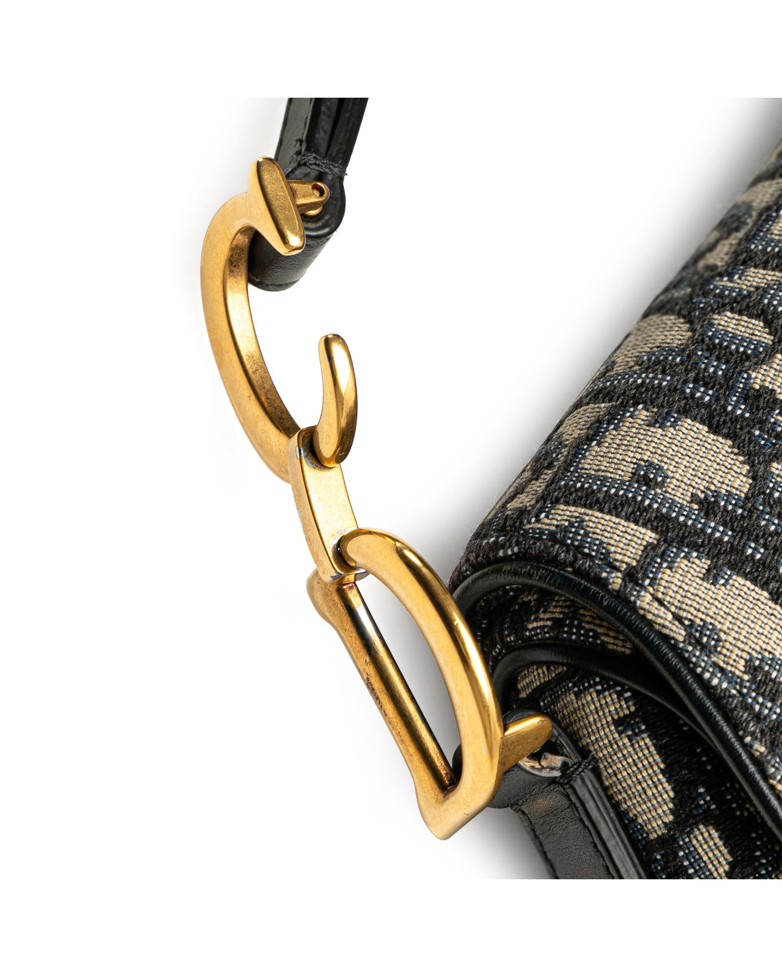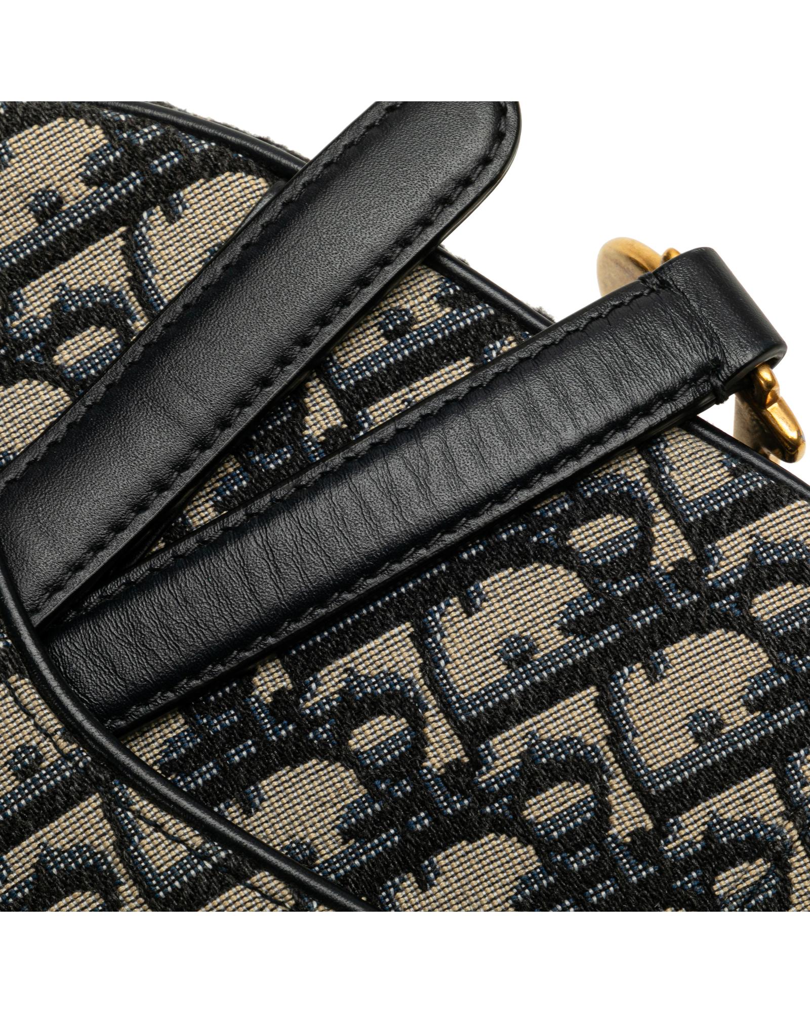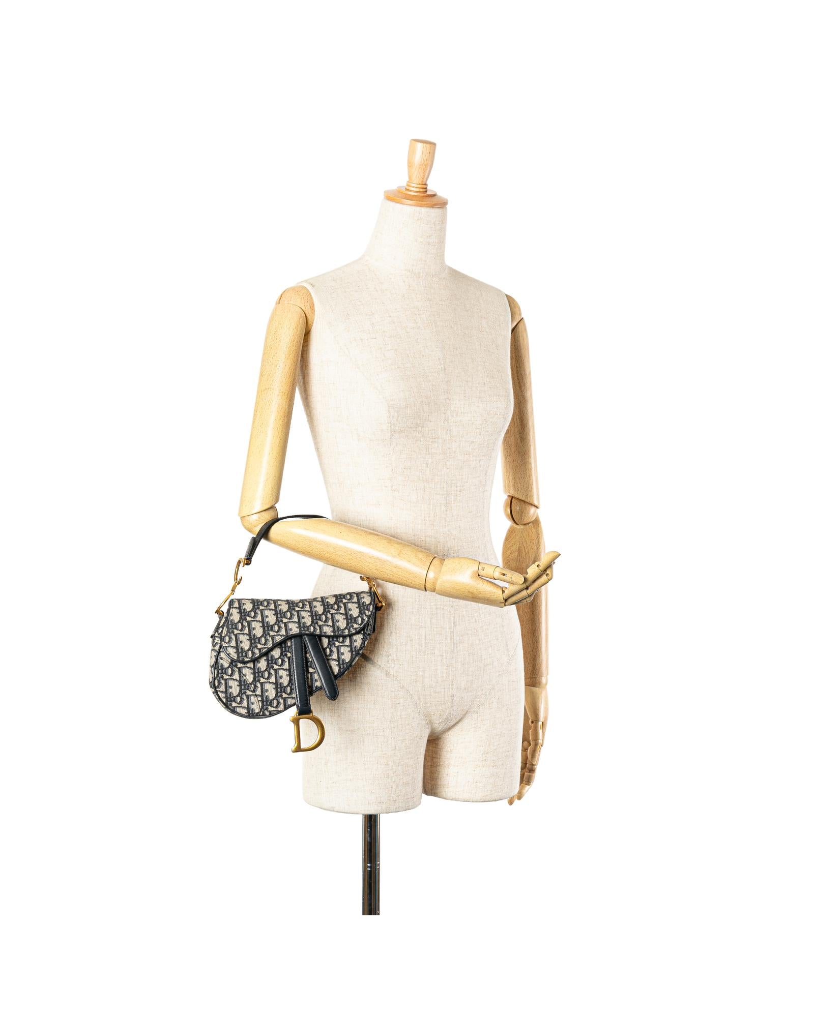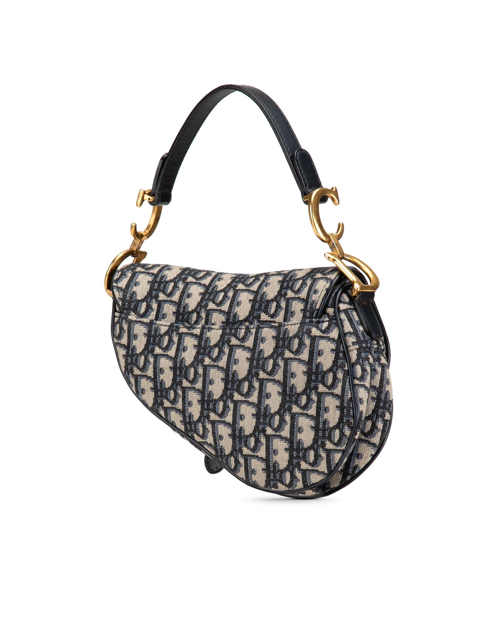 The Saddle features a canvas body a flat leather handle and a flap with touch fasteners closure.Brand: Dior