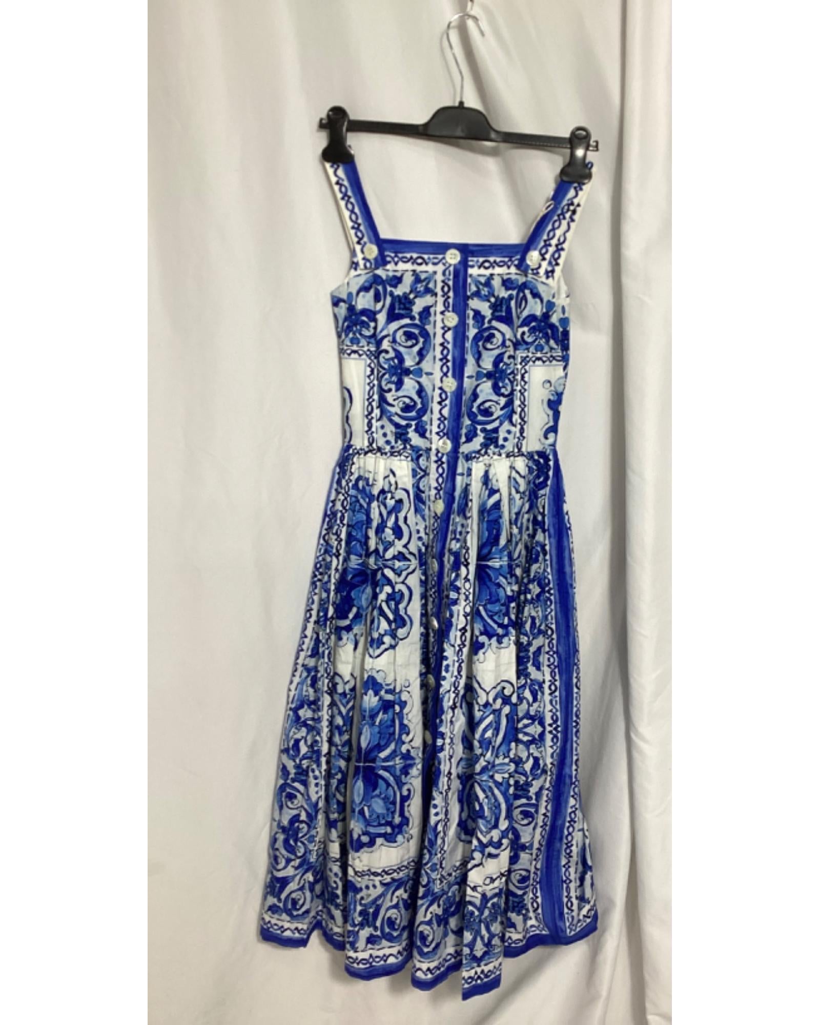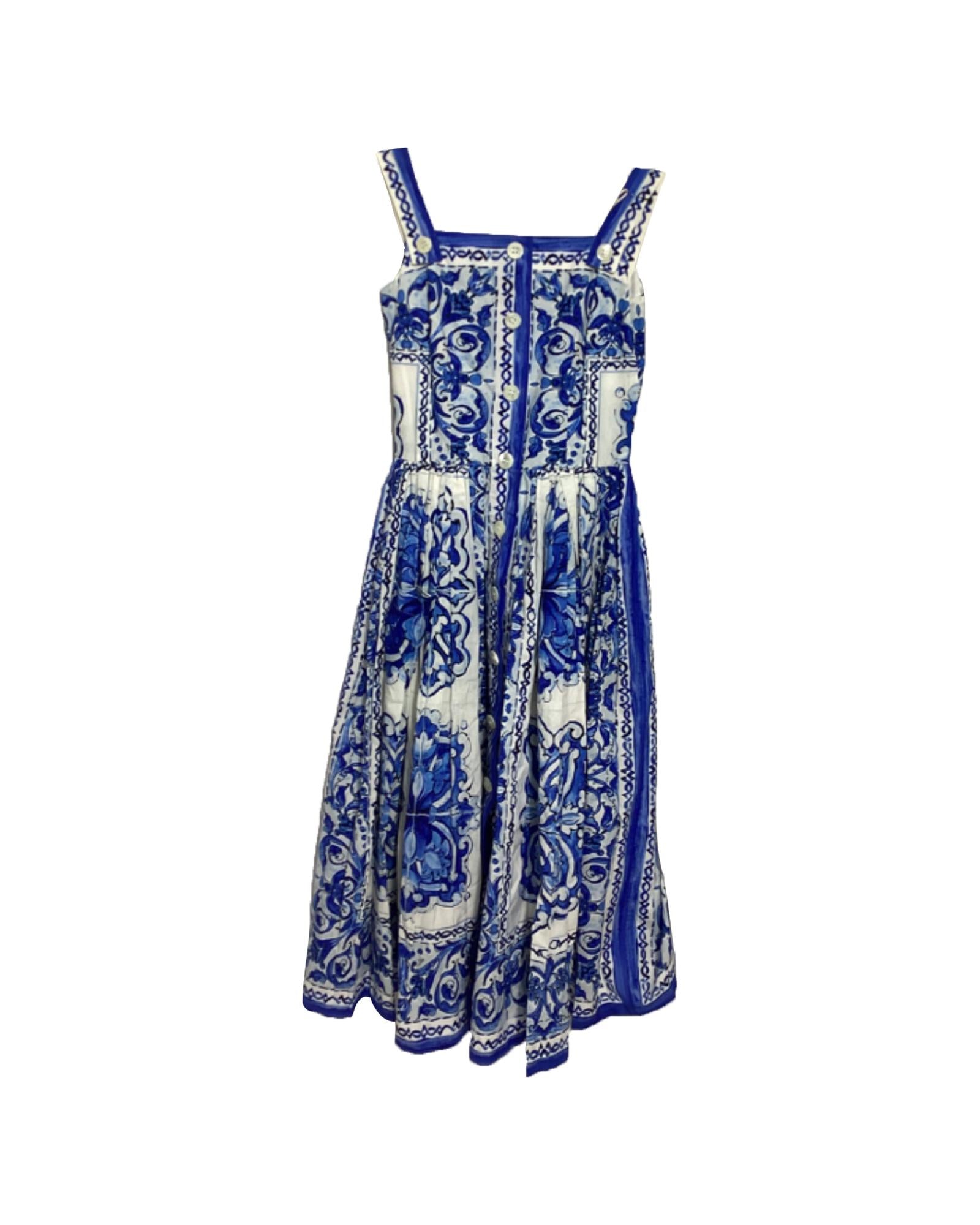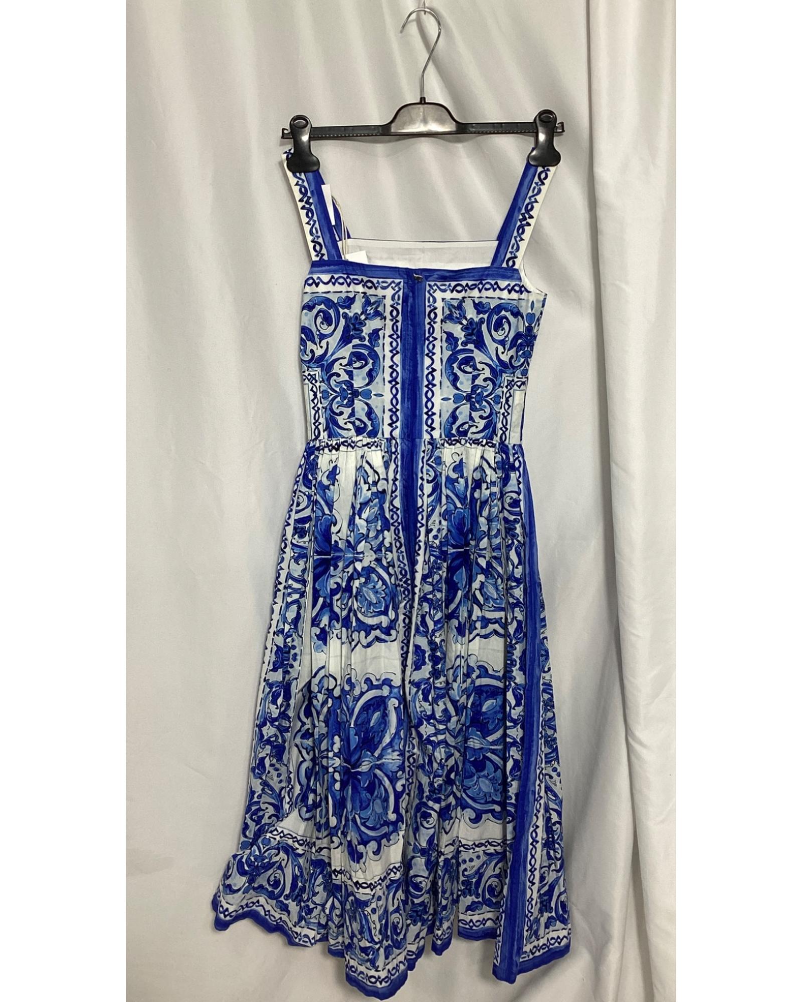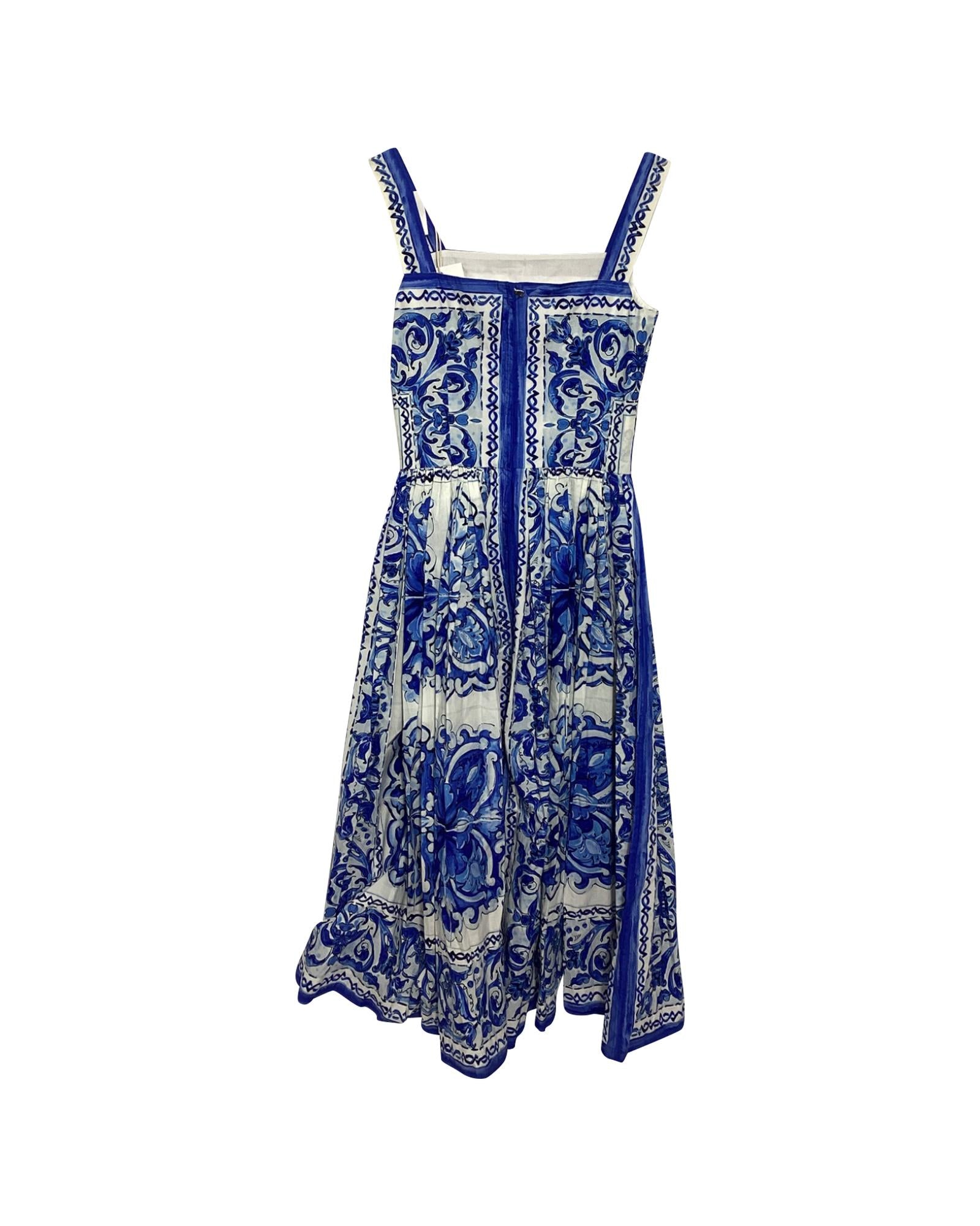- Dolce & Gabbana Majolica Print Midi Dress in Blue Cotton
