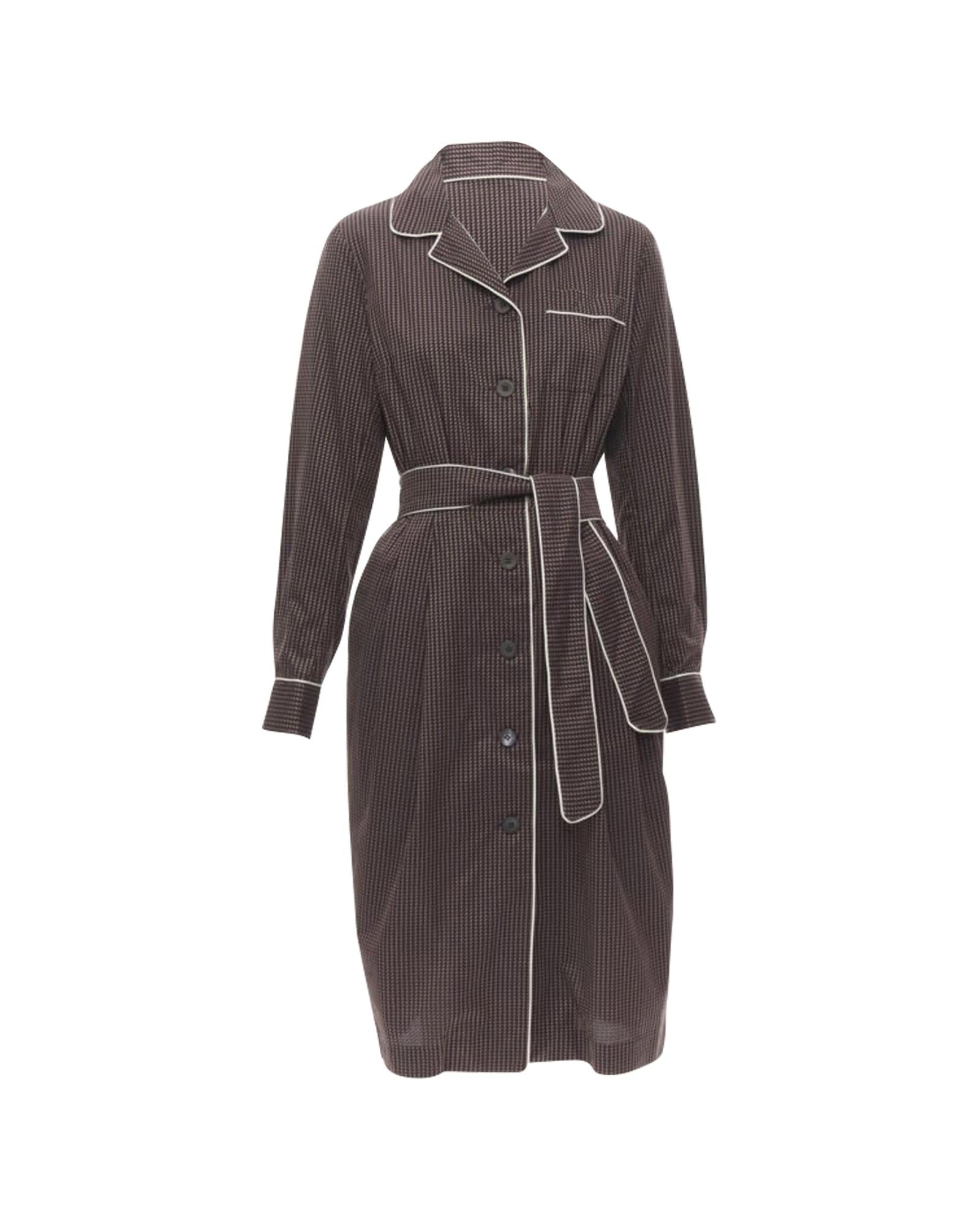 Dress with Long Sleeves Shirt Collar Button Fastening and Belt