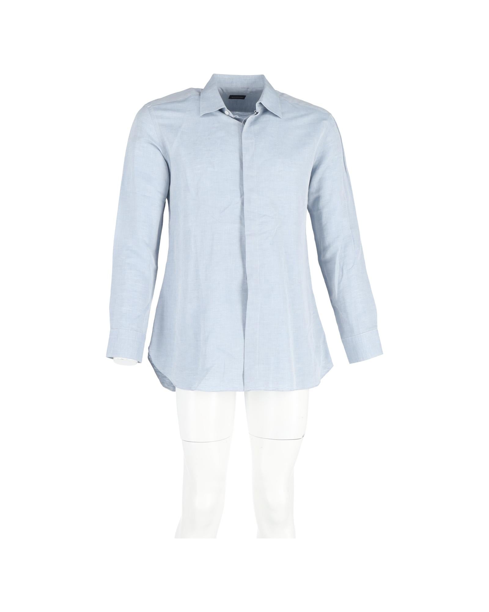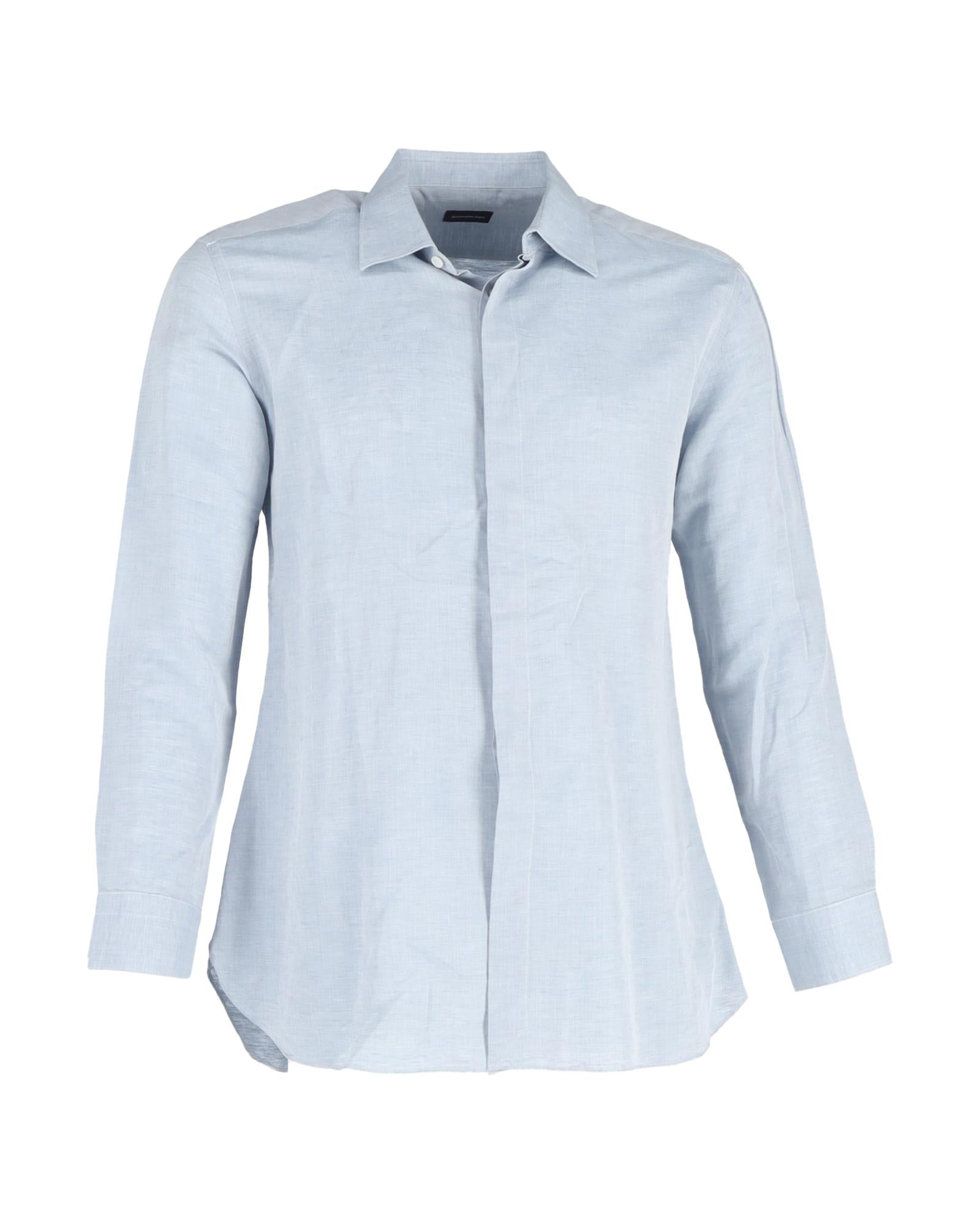 - Ermenegildo Zegna Secured Buttoned Long Sleeve Shirt in Blue Cotton