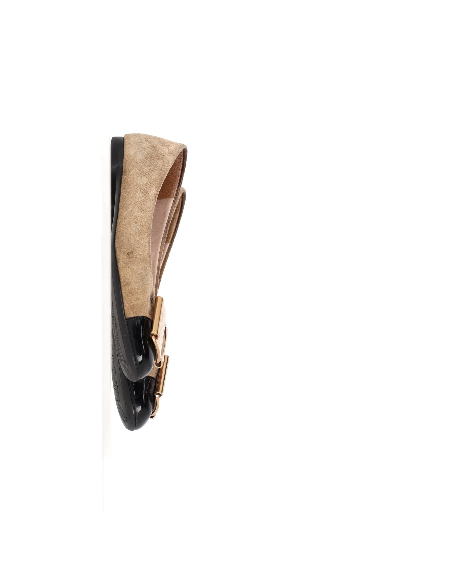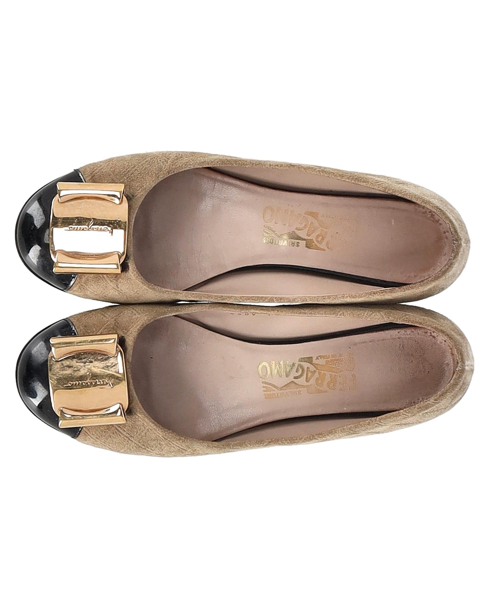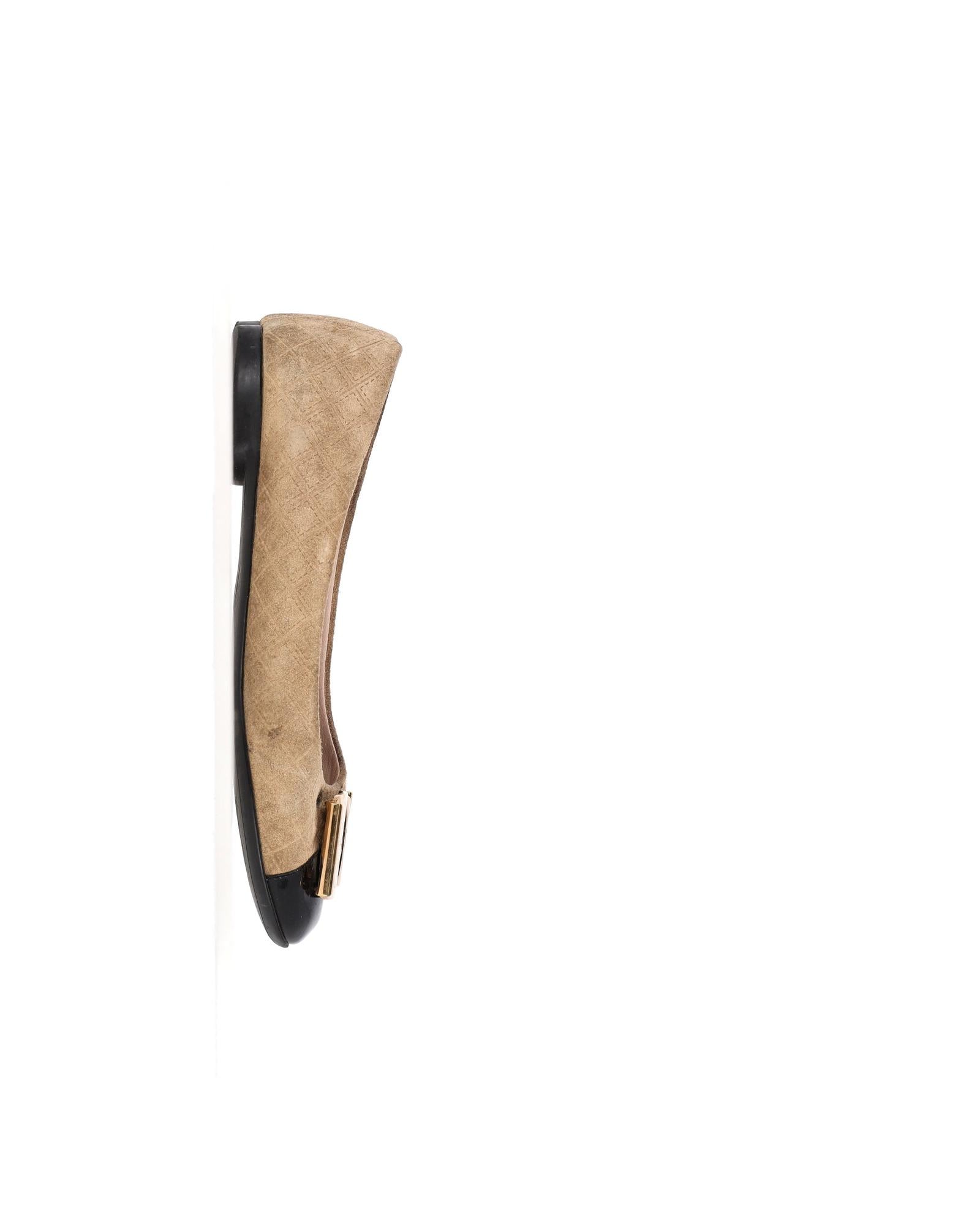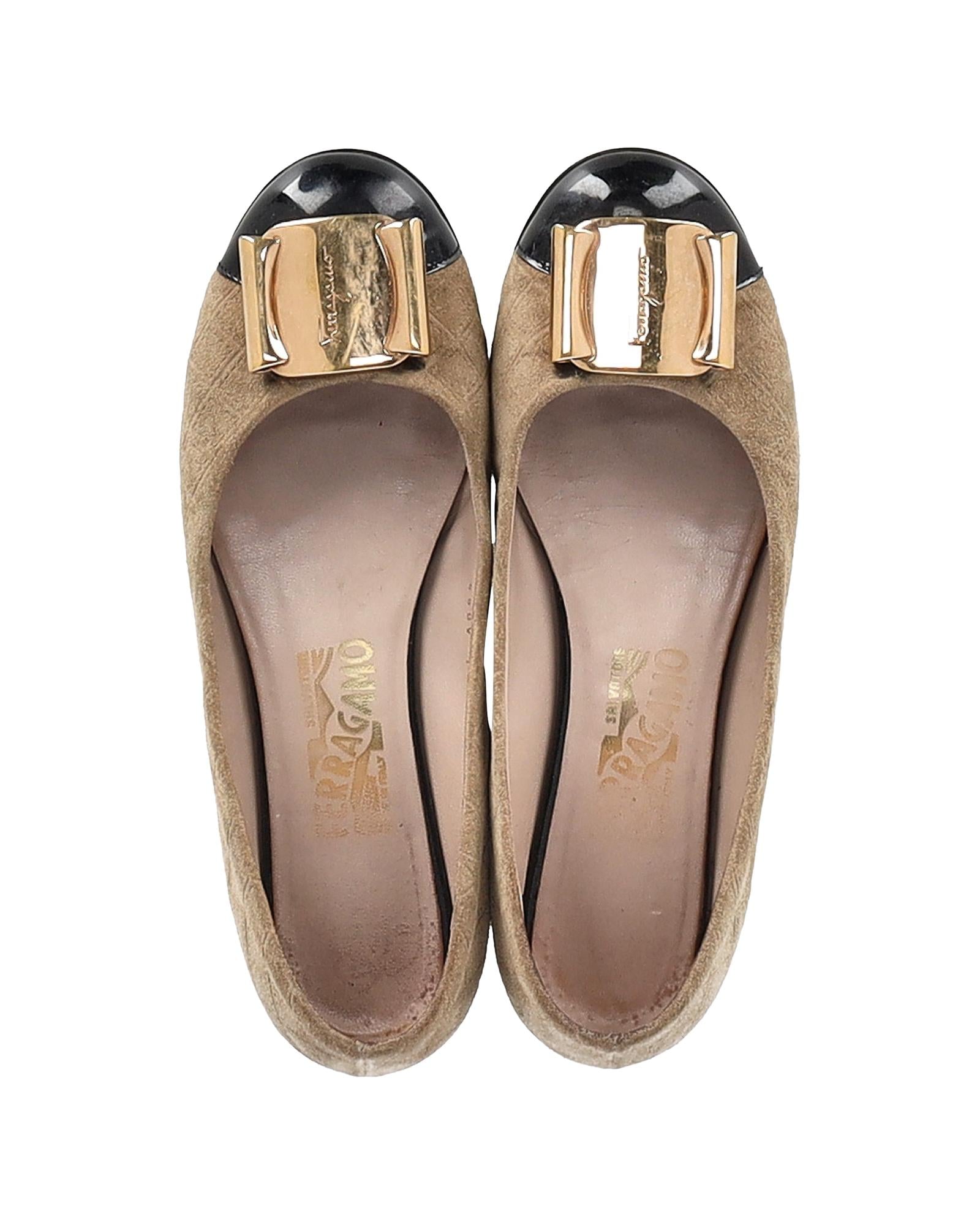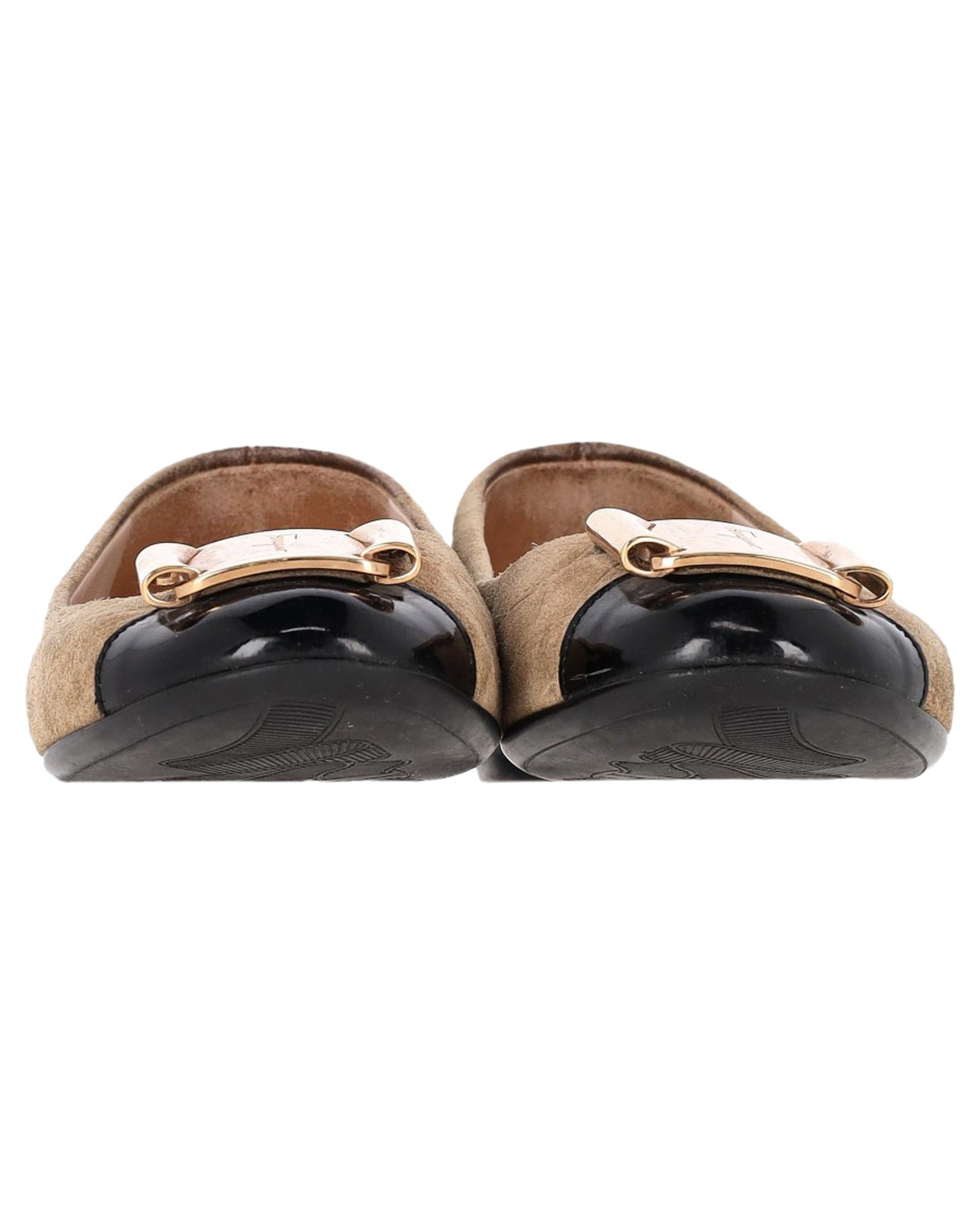 - Ferragamo Cap Toe Ballerinas in Brown Suede