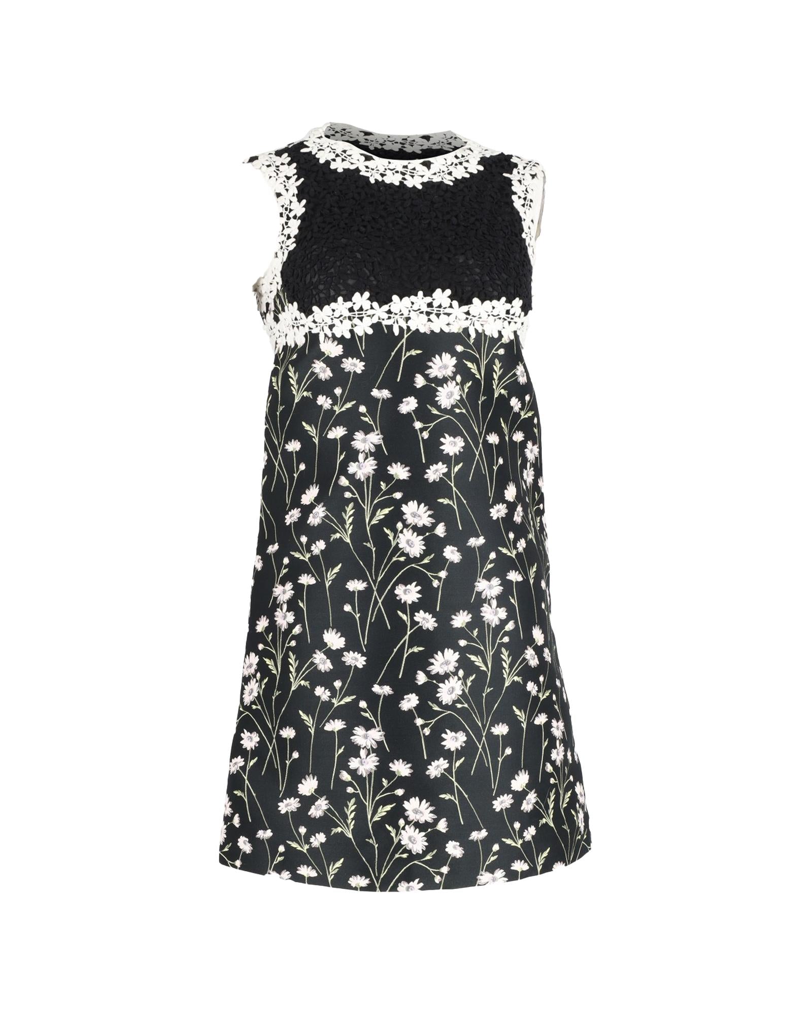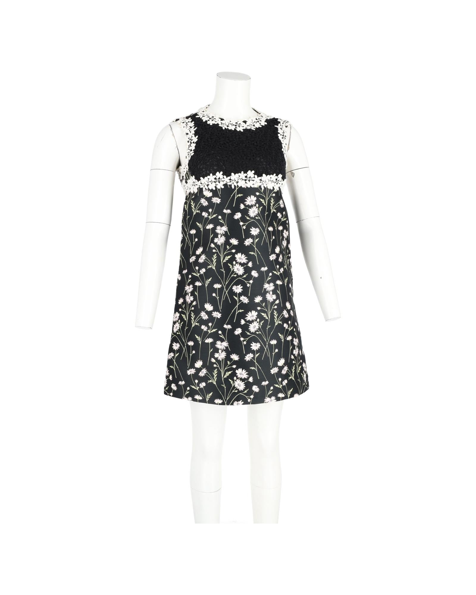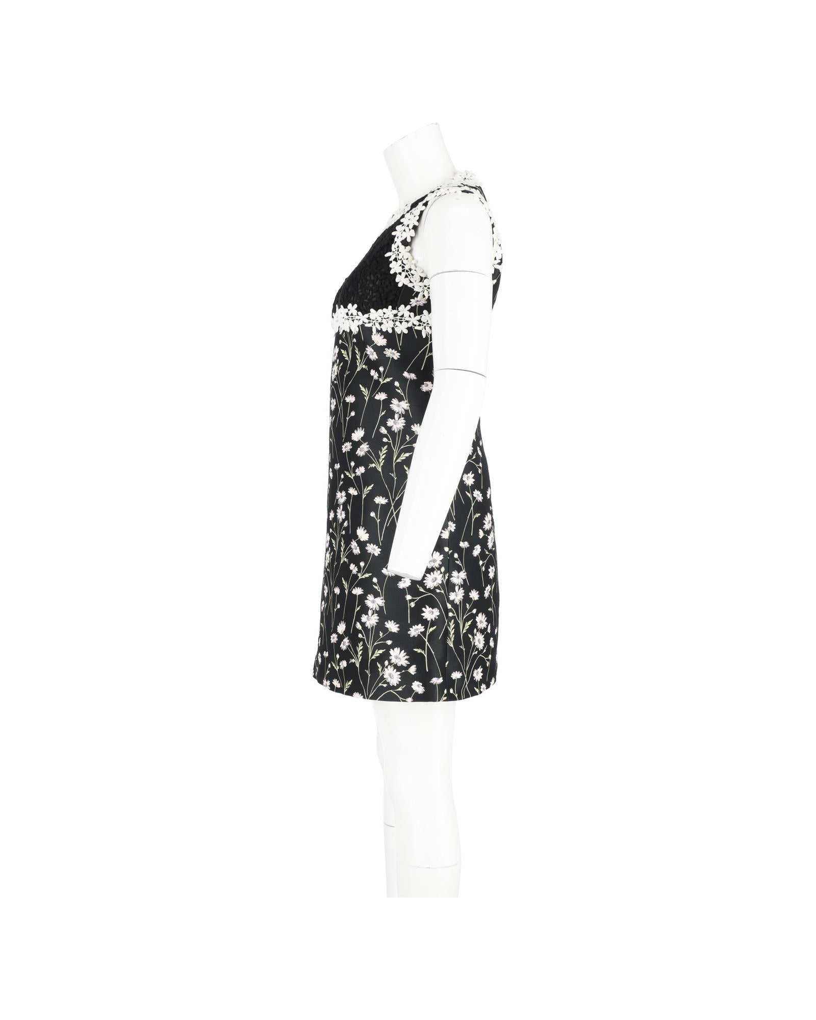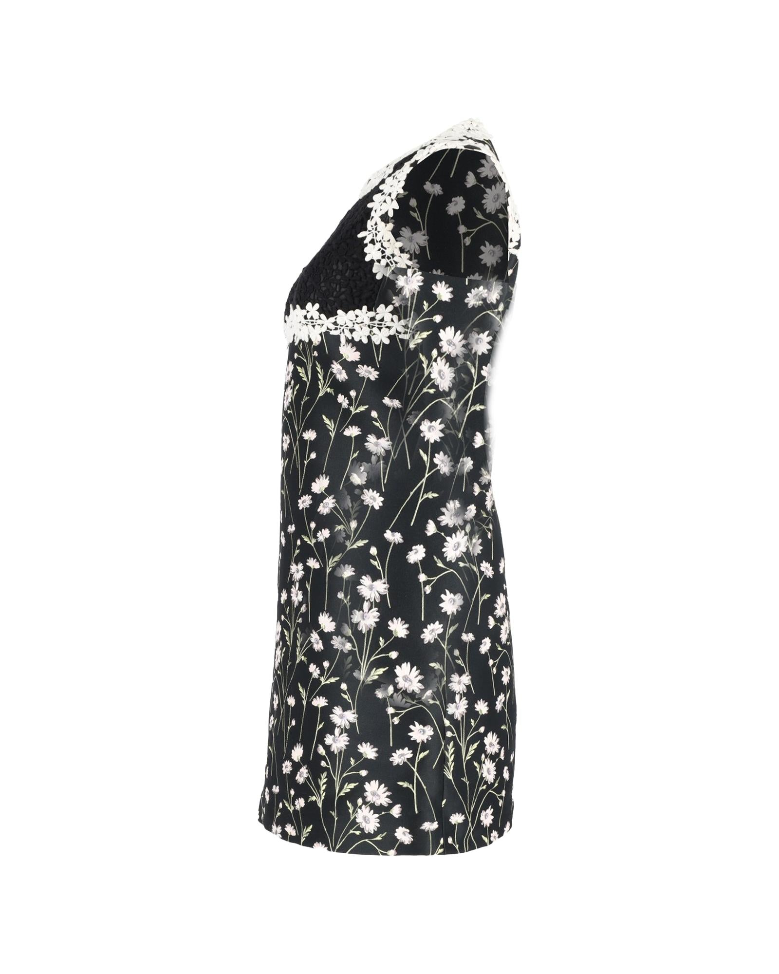 - Giambattista Valli Floral Print Lace Detail Mini Shift Dress in Multicolor Polyester