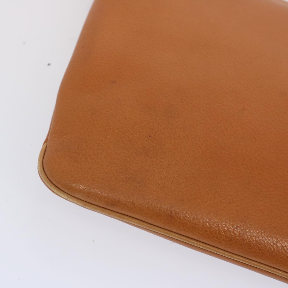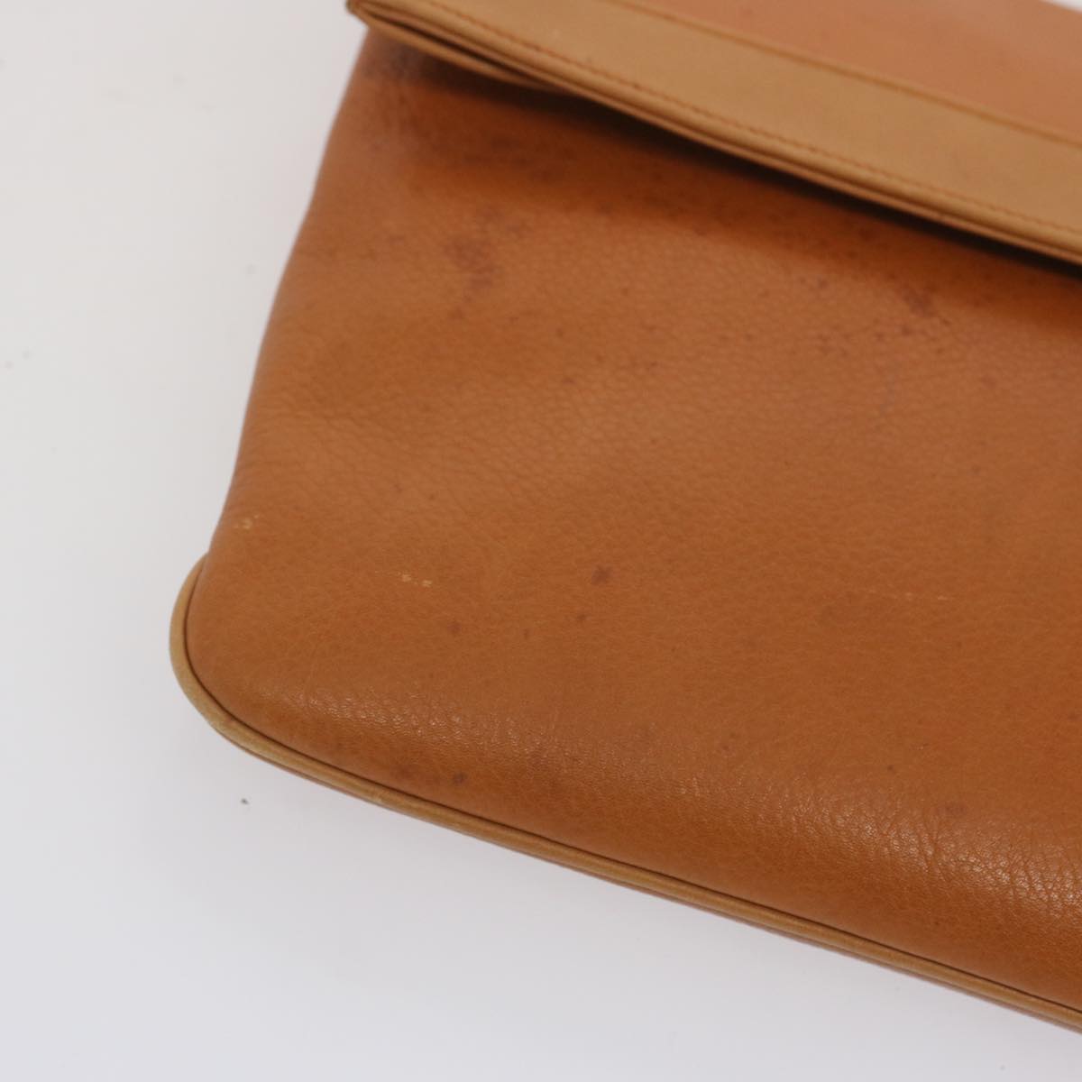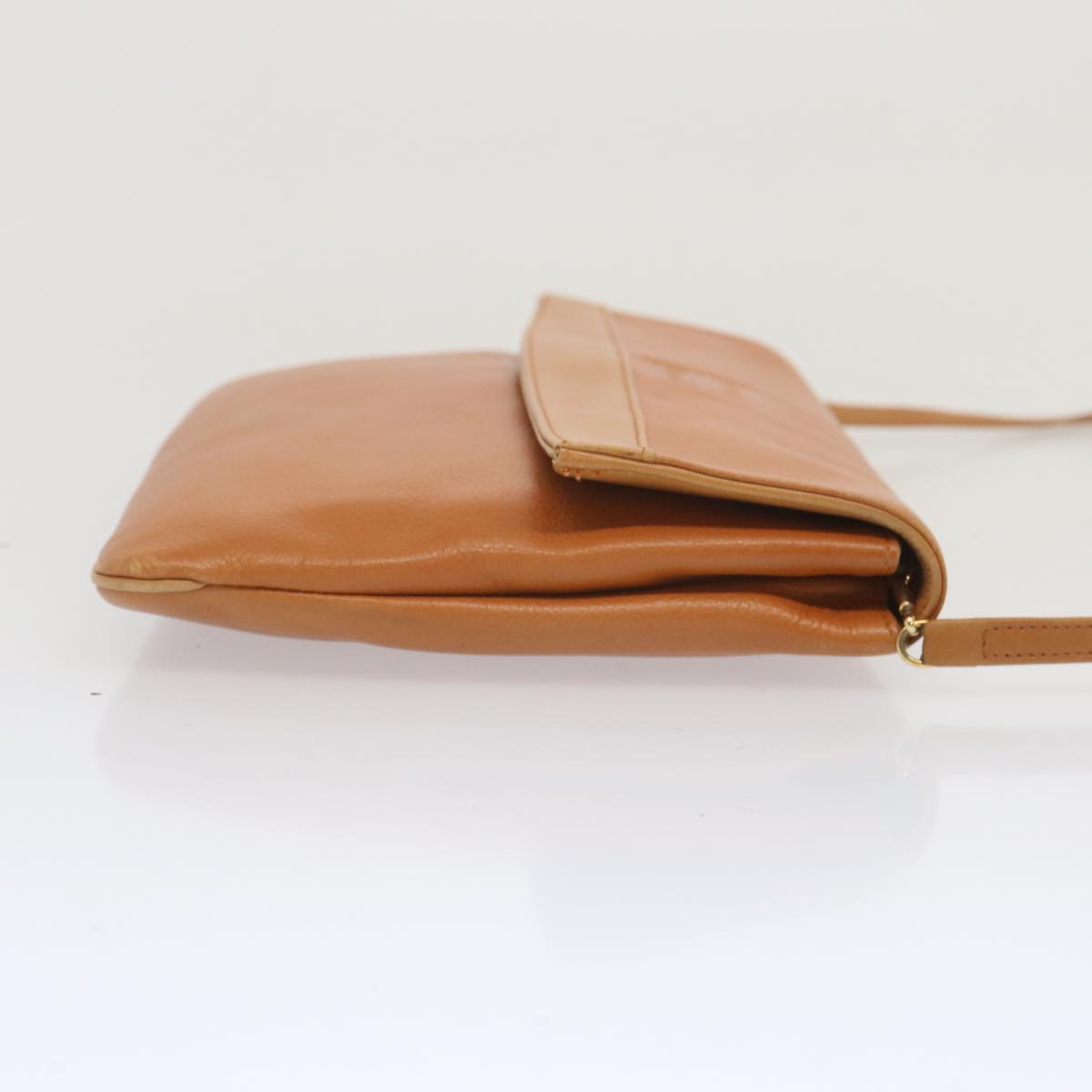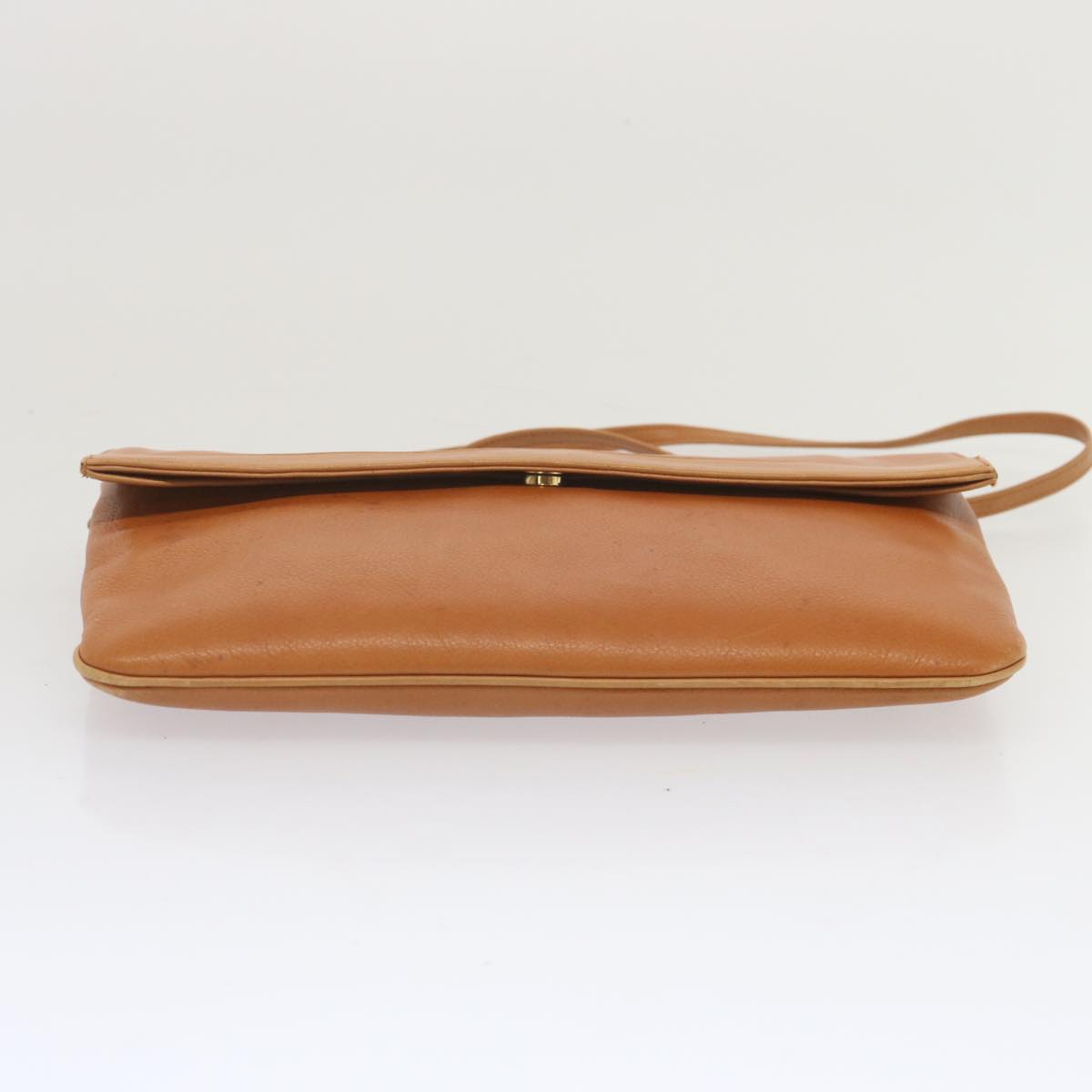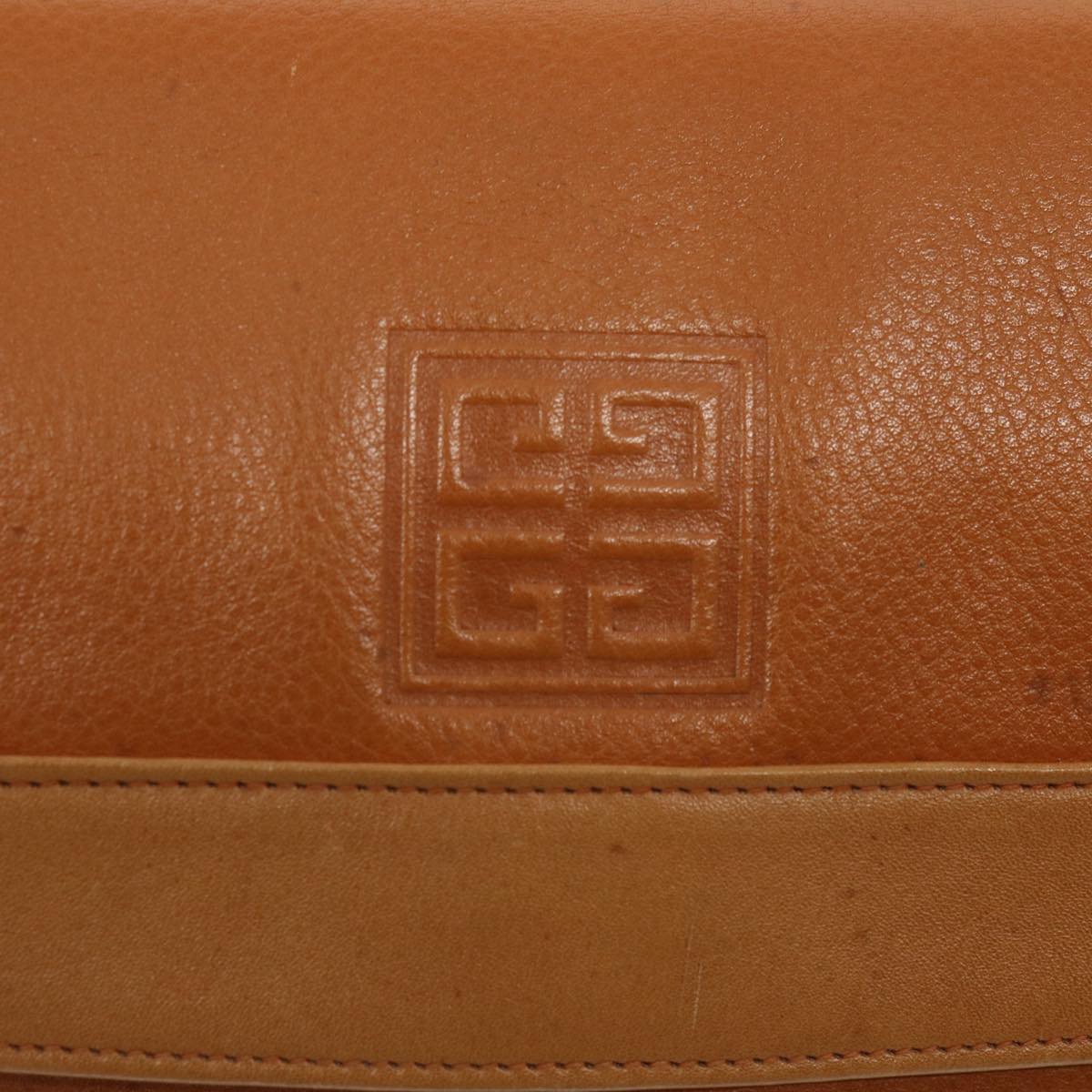 The exterior surface displays rubbing a slight loss of shape and a stain while the shoulder strap exhibits rubbing as well. There are slight scratches on the metal fittings and inside in the pockets and along the corners rubbing is noticeable. Additionally there is a persistent storage odor present within the item.