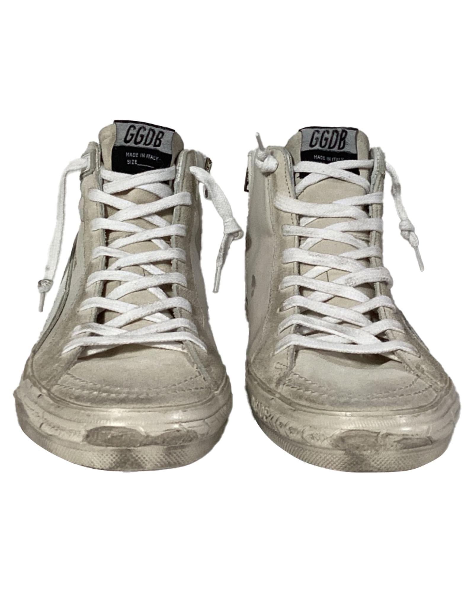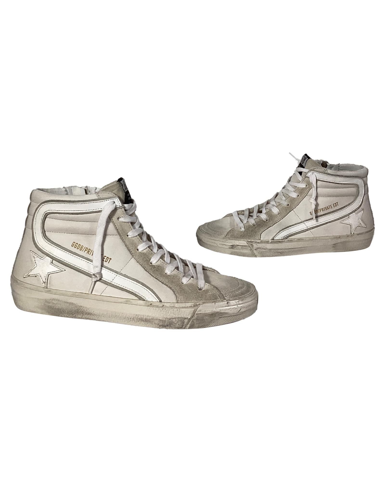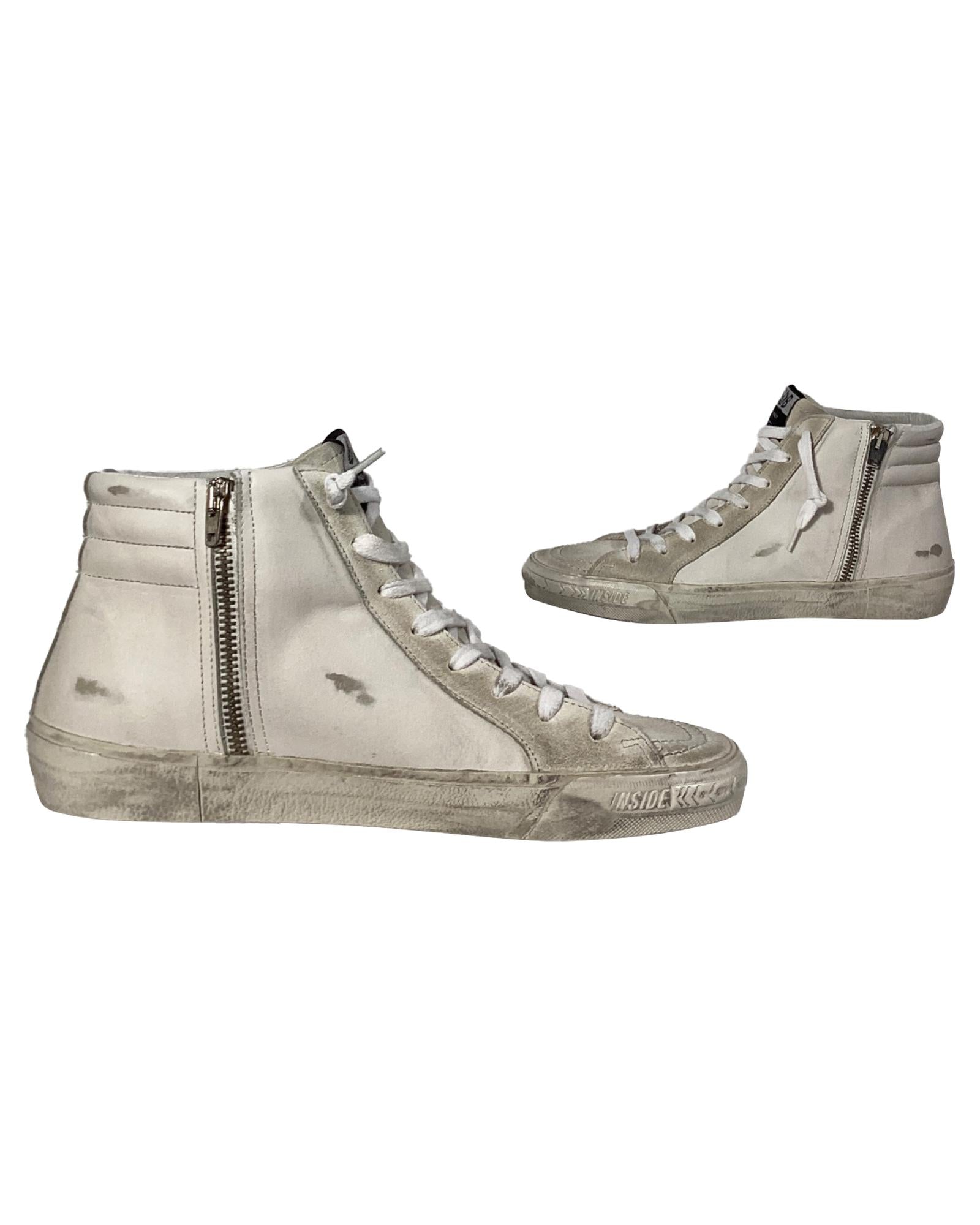 Vintage-Inspired High-Top Sneakers with Distressed Detailing