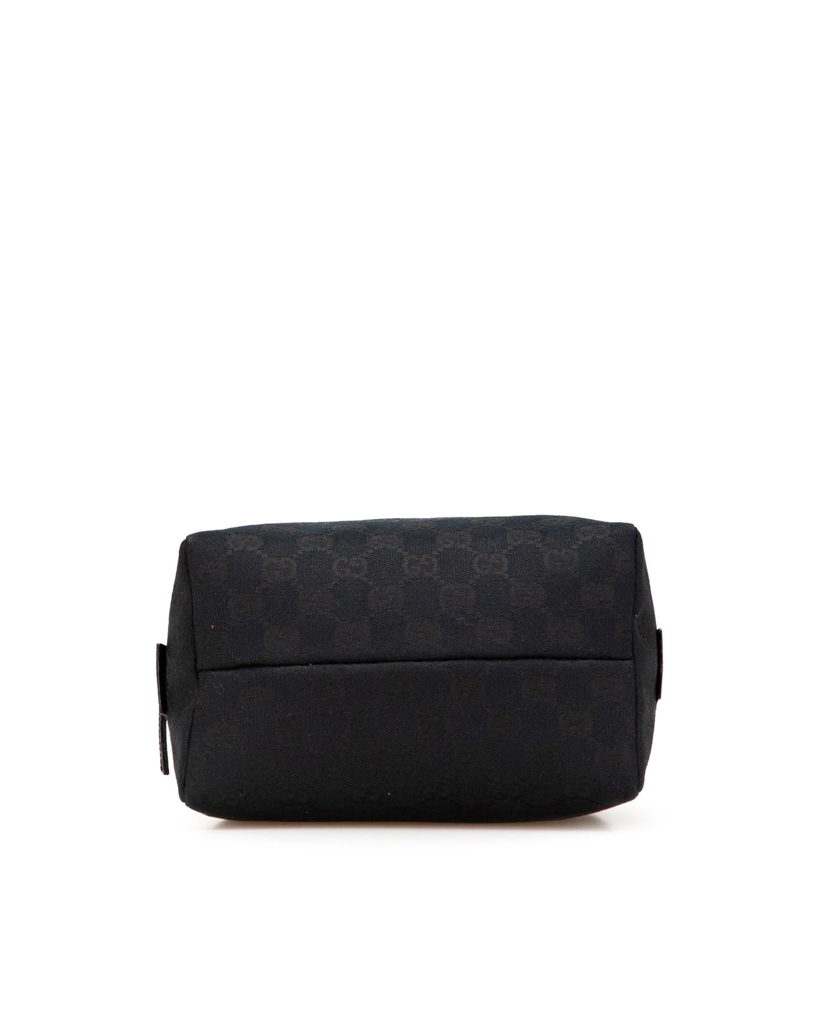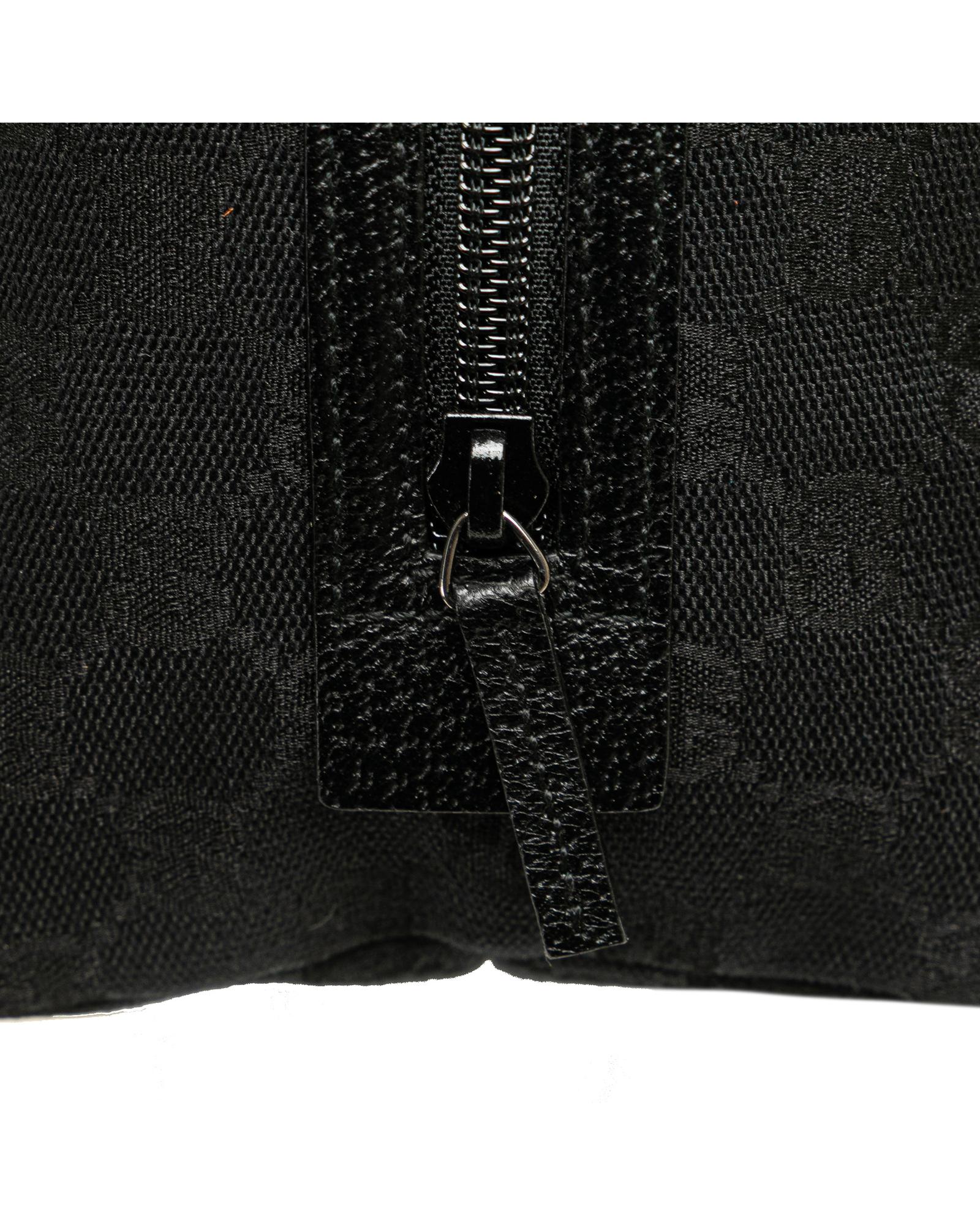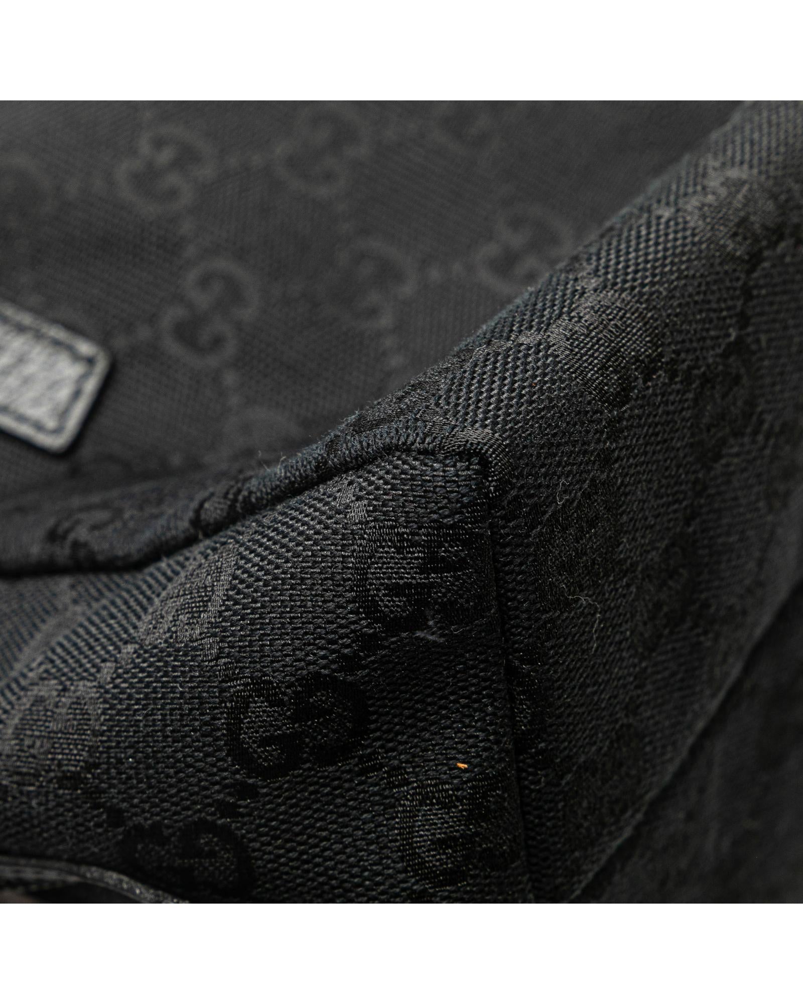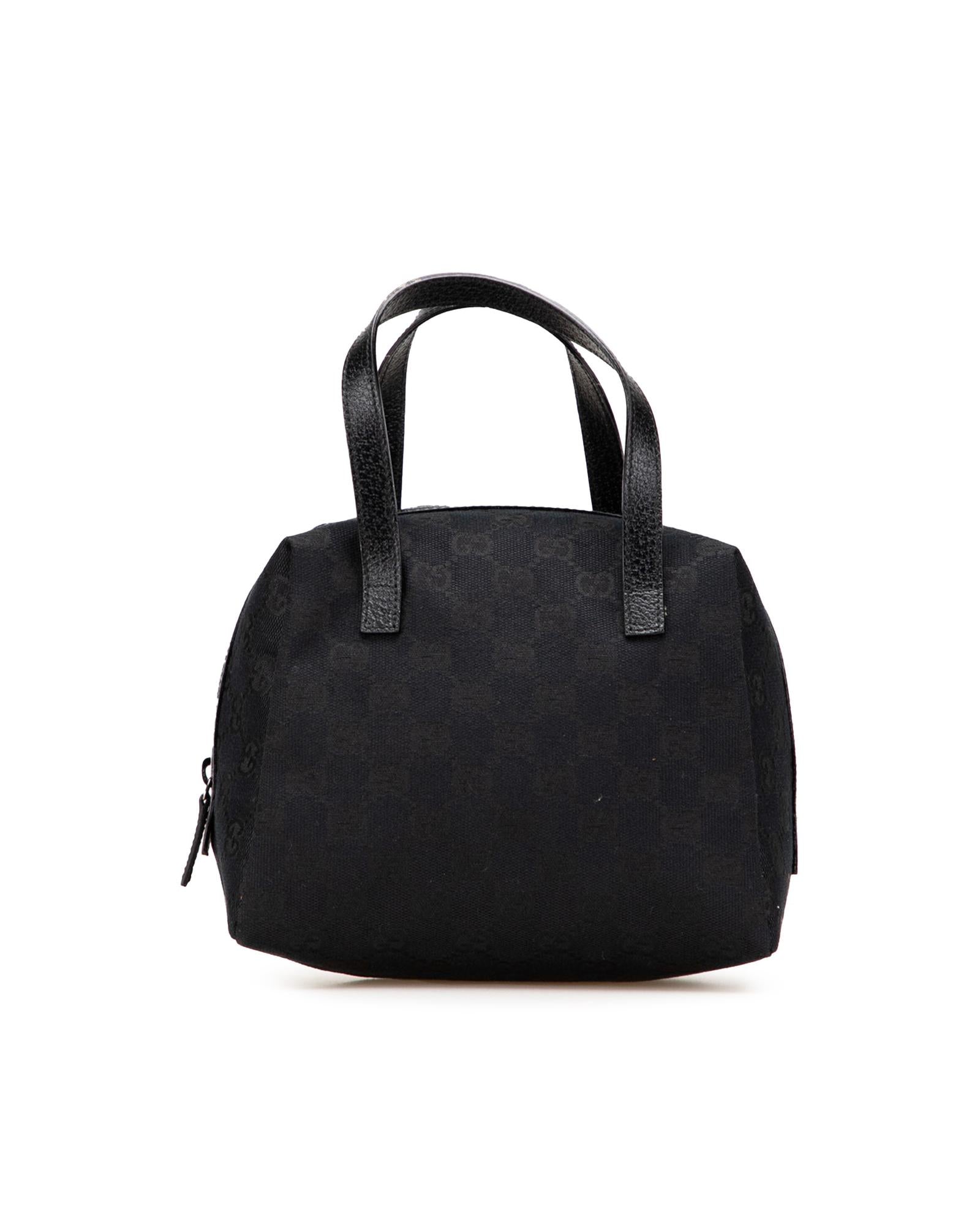 This handbag features a canvas body with leather trim flat leather handles a top zip closure and an interior zip pocket.Brand: Gucci
