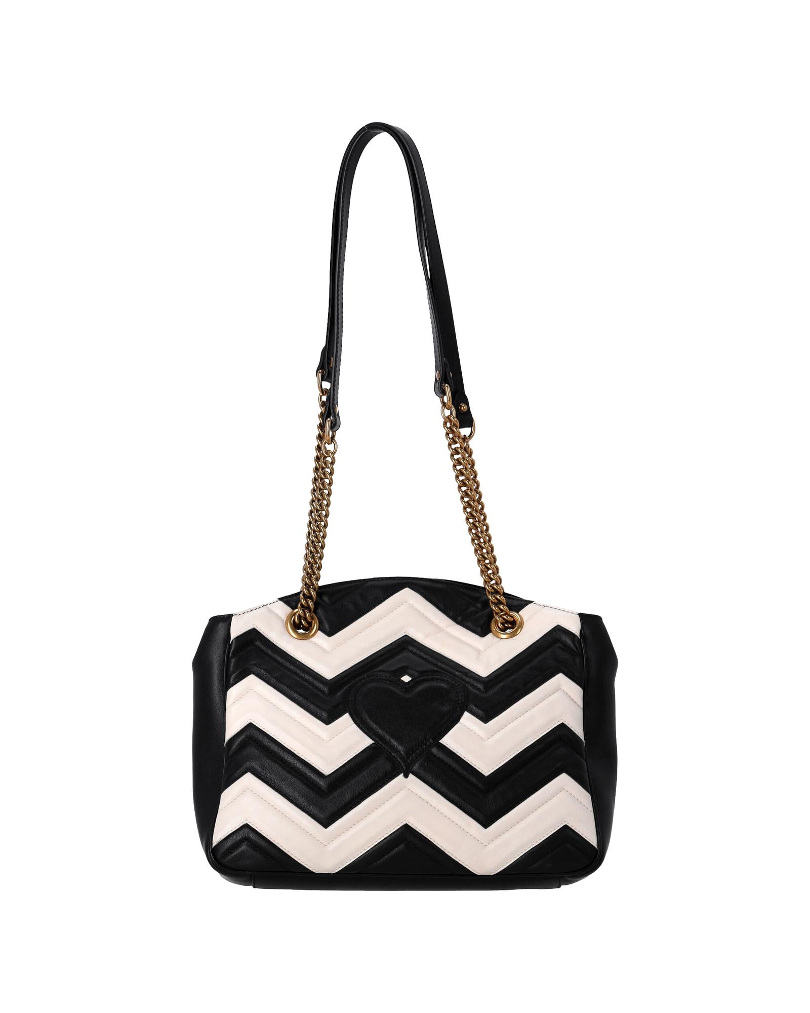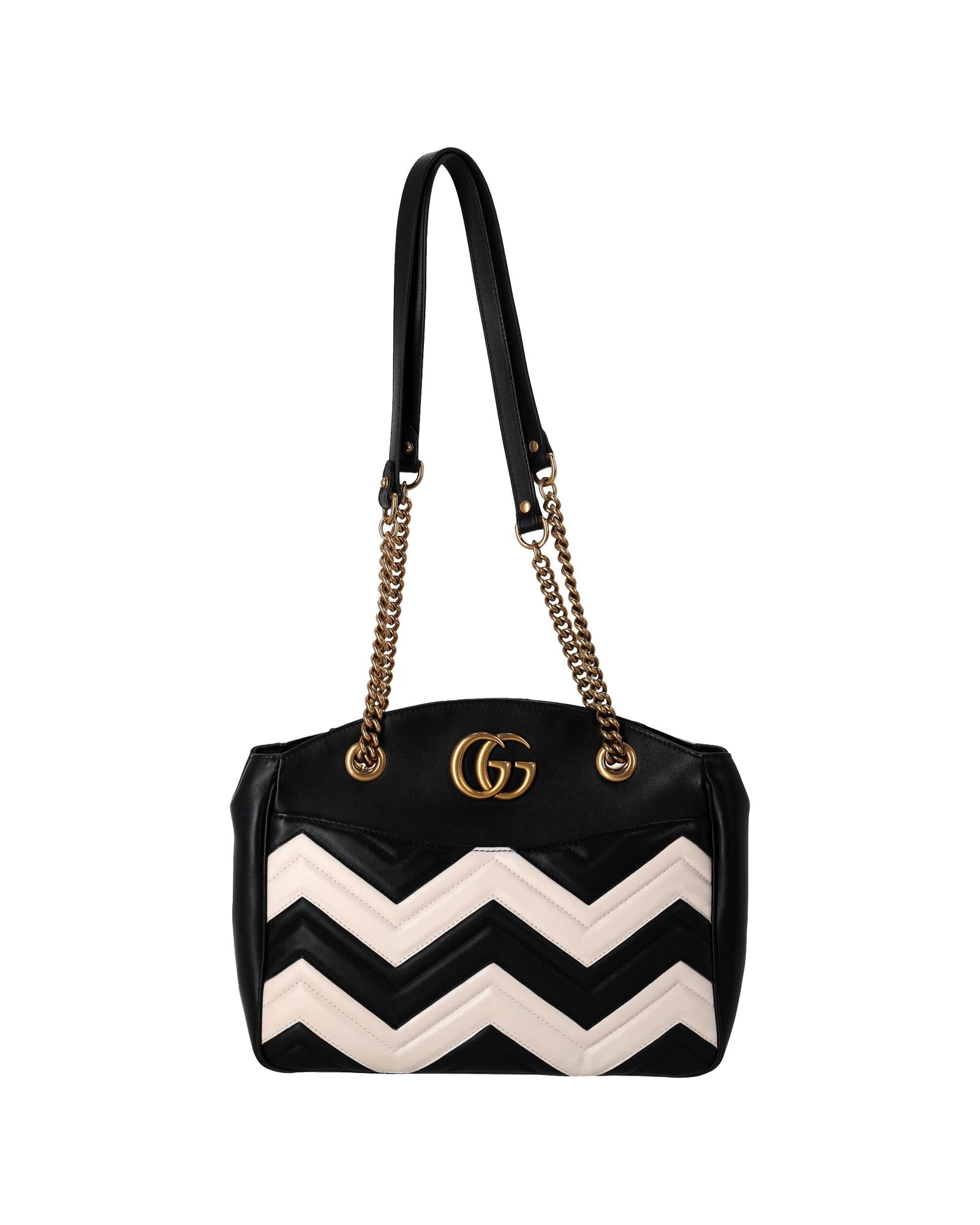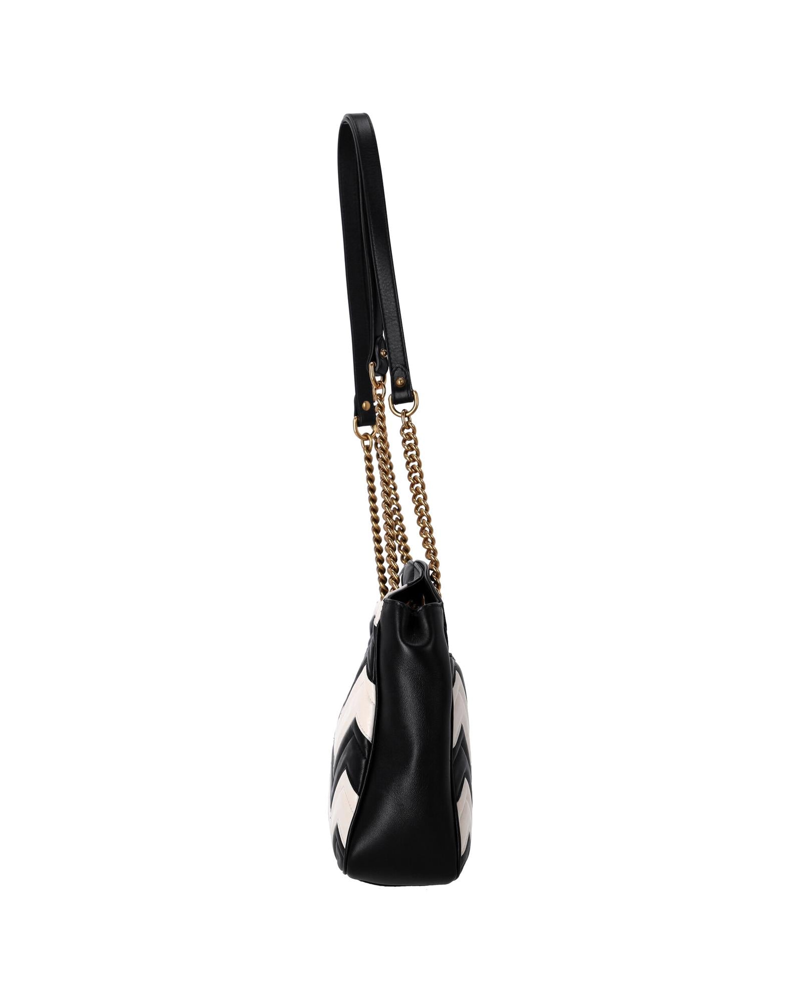 • Gucci GG Marmont Chevron Shoulder Bag in Black and White Leather