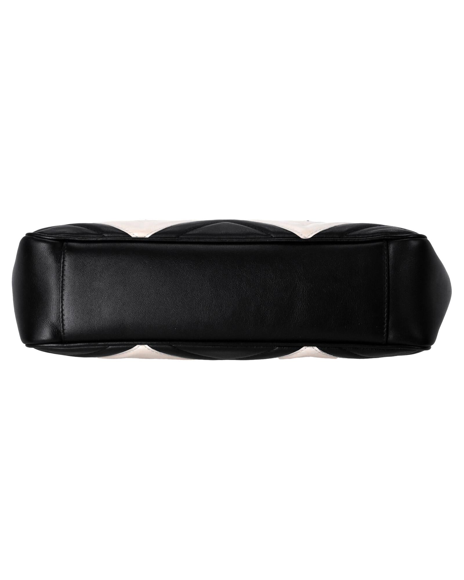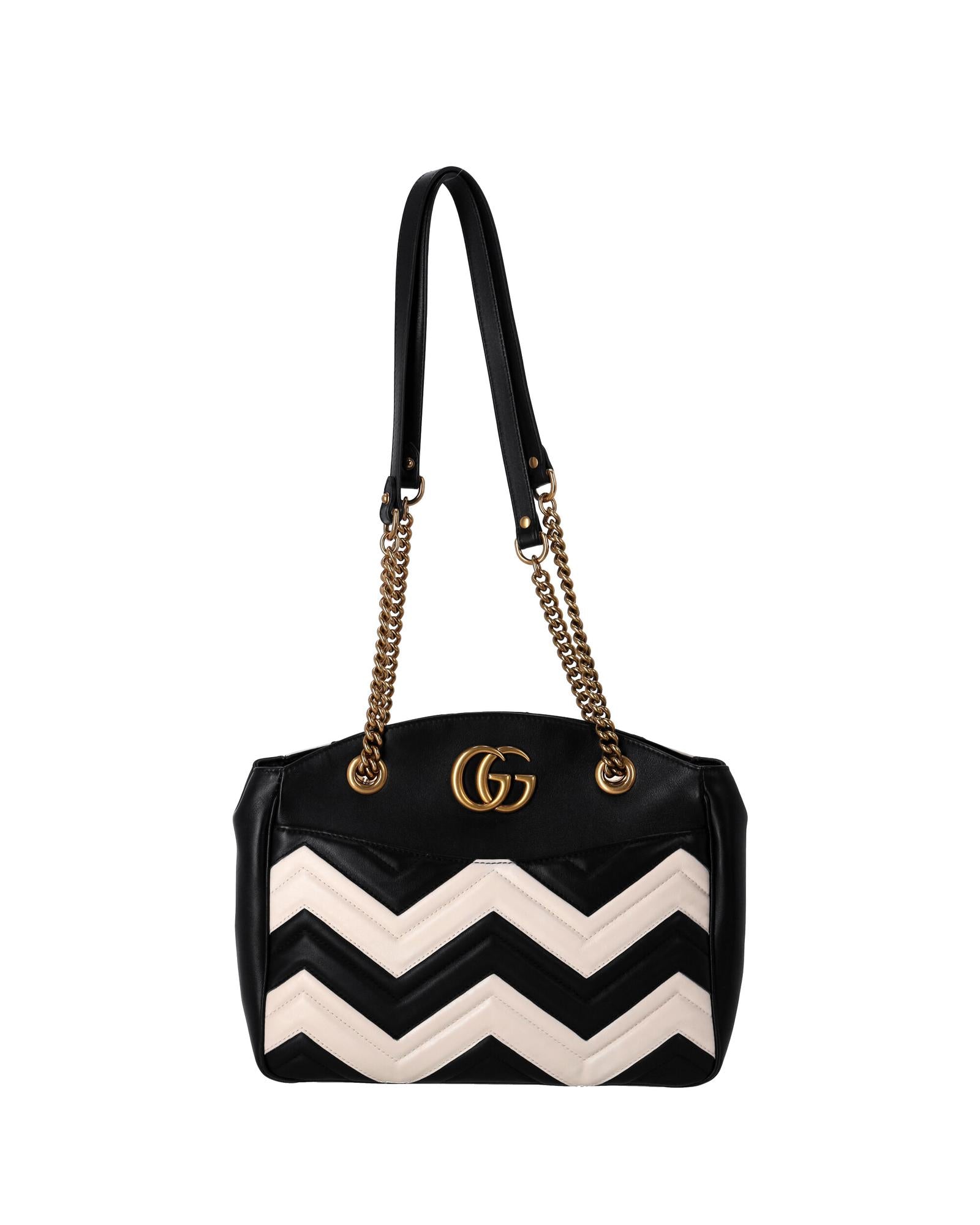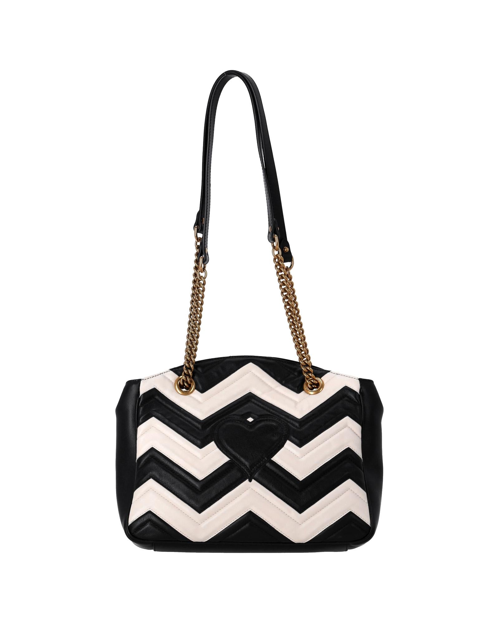 • Gucci GG Marmont Chevron Shoulder Bag in Black and White Leather