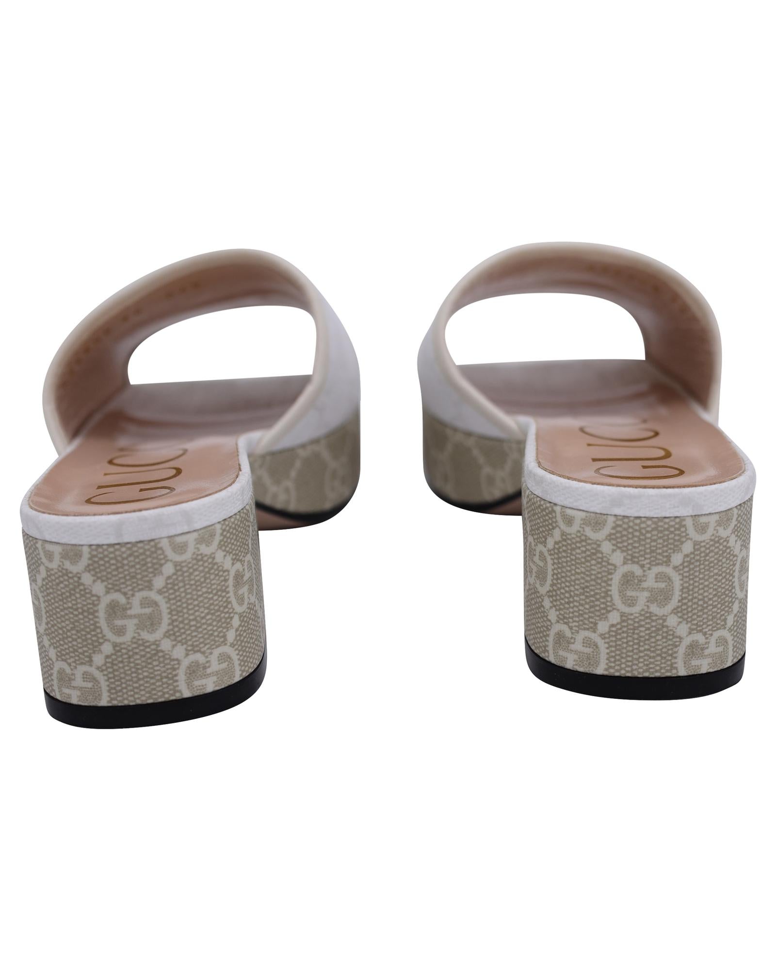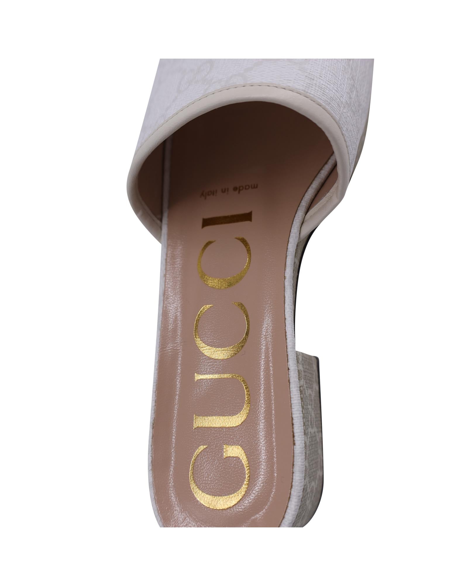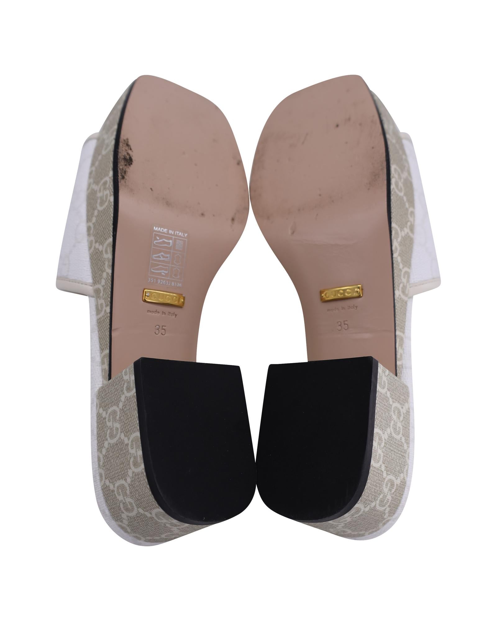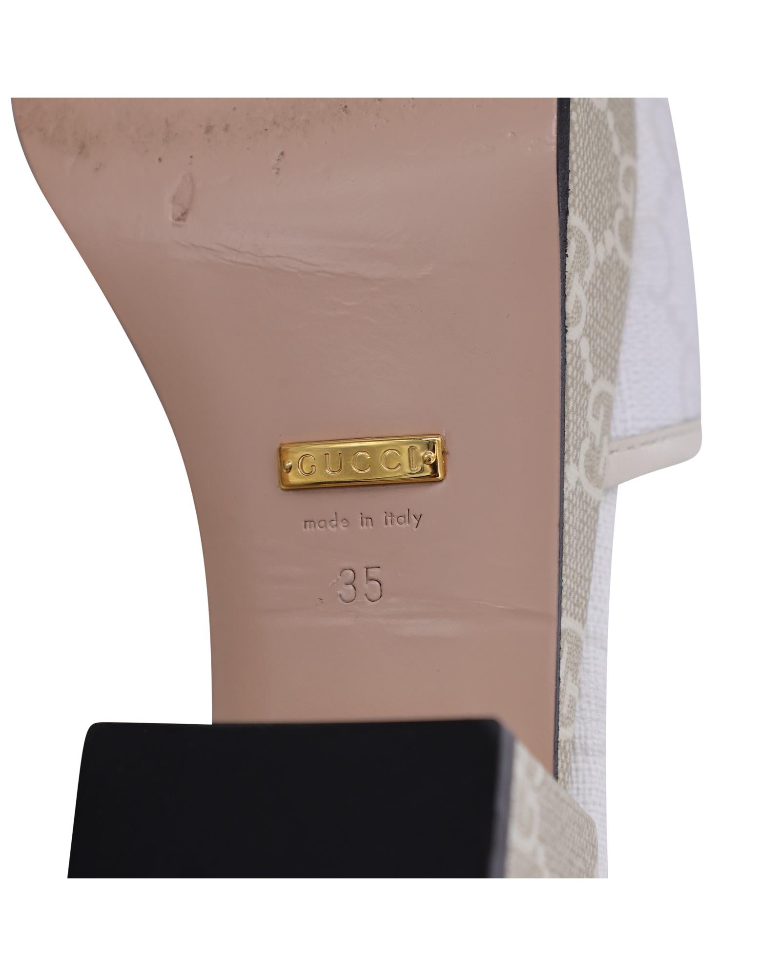 - Gucci GG Supreme Monogram Malaga Kid Platform Slides in White Canvas