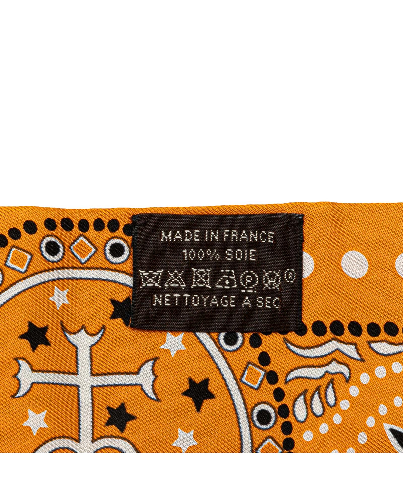 This scarf features the Entre Ciel Et Mer Bandana print on 100% silk.