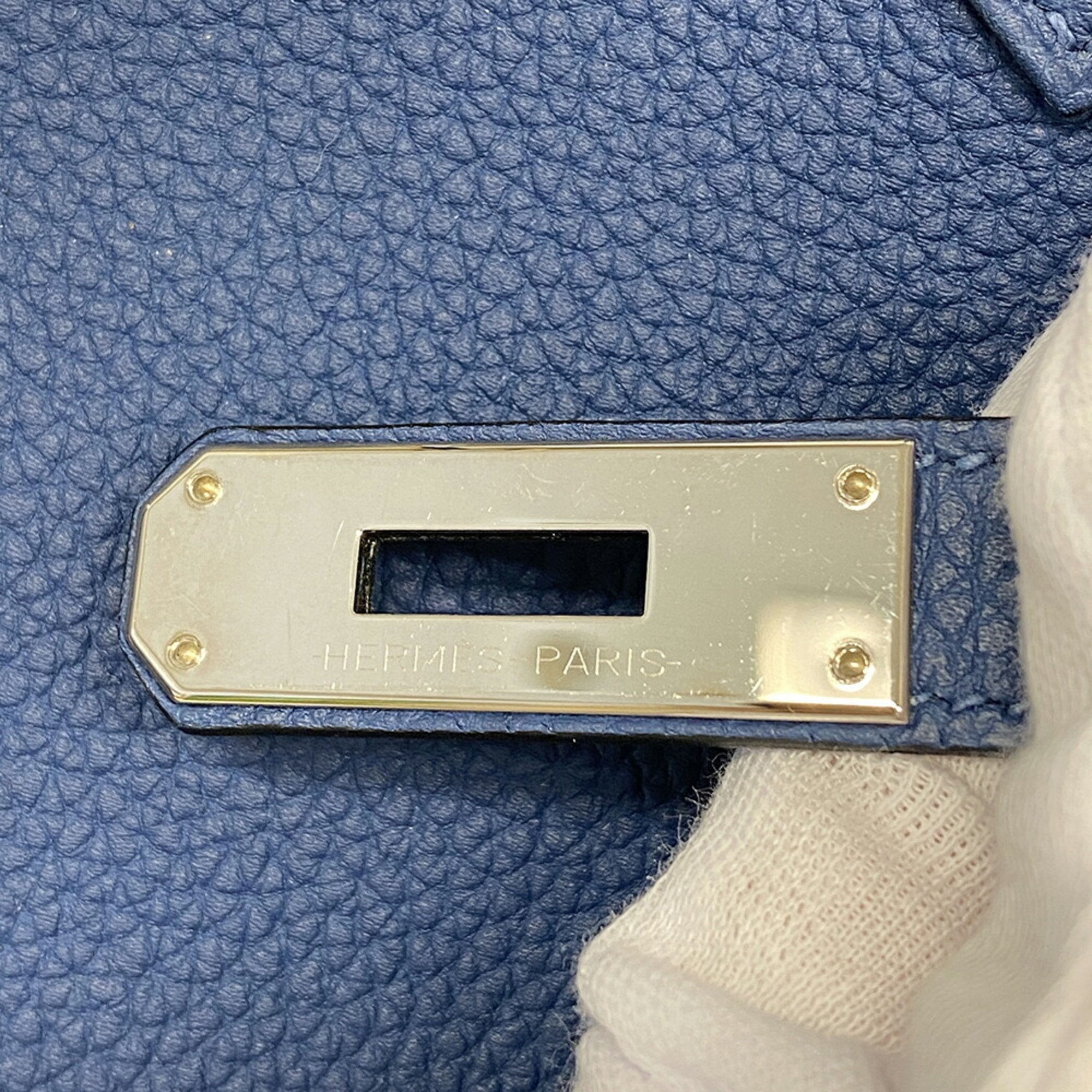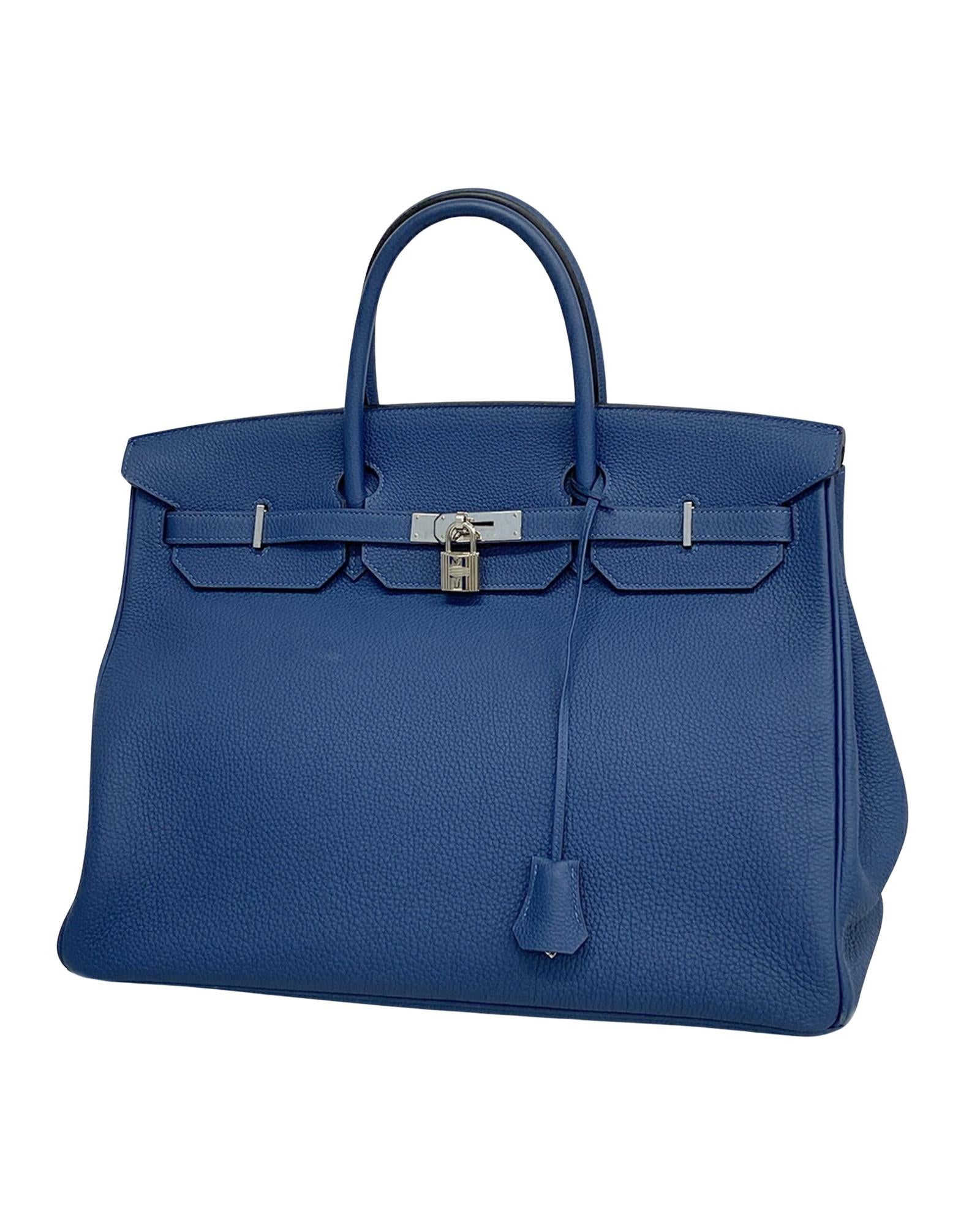 Brand: Hermes Model: Birkin 40 Color: Navy Material: Leather Inclusions: Box Clochette Dust bag Key Padlock Rain cover Dimensions: 27.5cm x 39cm x 20cm Serial number: D Country of origin: France Condition: AB - good condition. Introducing the Hermes Birkin 40 Handbag a luxurious accessory from the esteemed brand Hermes. Crafted from durable Togo leather this iconic handbag features a spacious interior and is secured with a classic turn lock closure. Elevate your ensemble with the timeless elegance of the Hermes Birkin 40 Handbag designed to complement the style of sophisticated women everywhere. Examination of its condition reveals slight scratches and discreet imperfections which remain on the surface and in no way detract from the item's elegance. It is an elegant testimony to the assiduous and scrupulous use it has undergone. We recommend that you look at all the pictures before making your purchase to ensure that you are satisfied with the condition of the item.