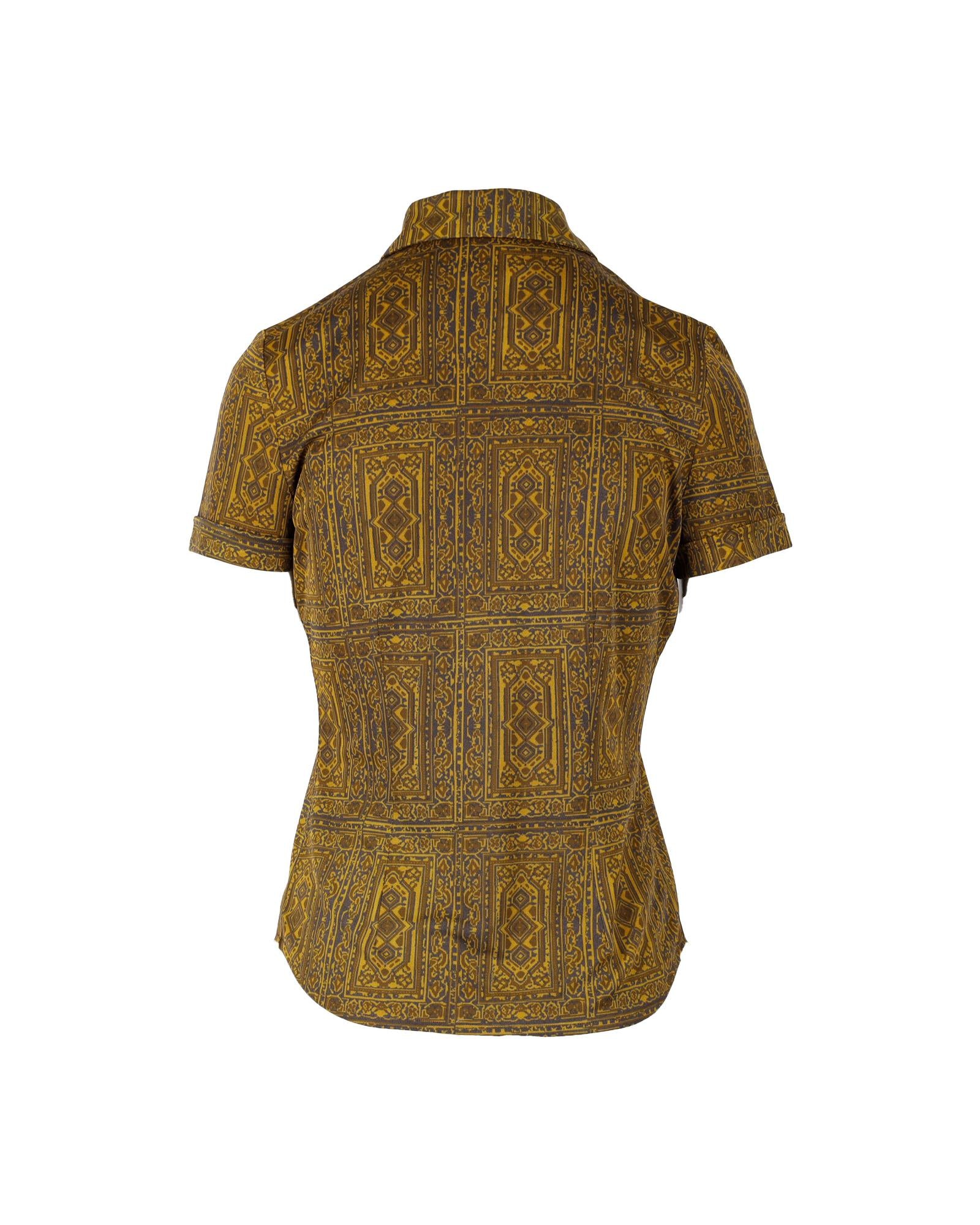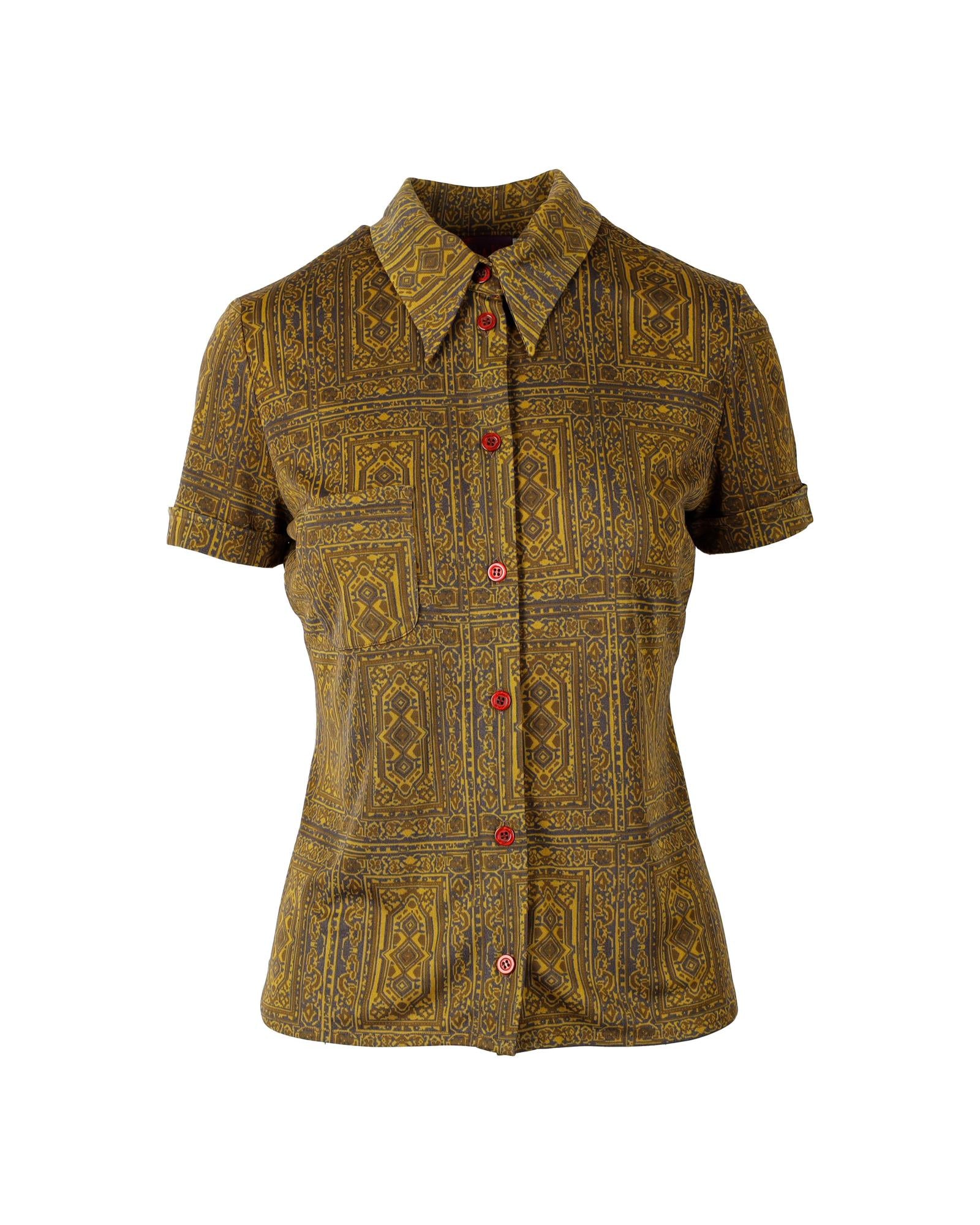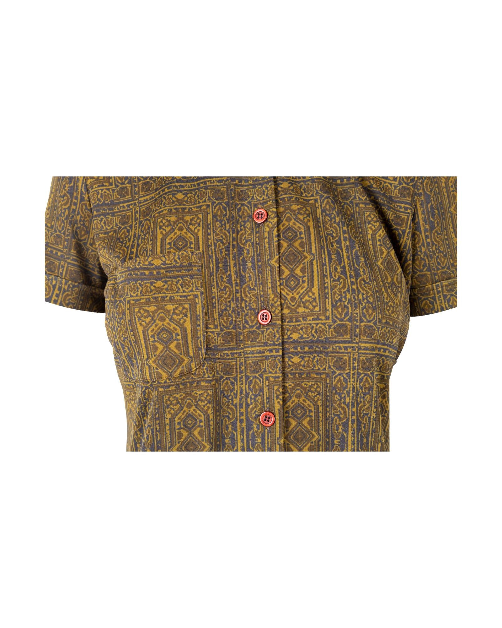 Printed Short Sleeve Shirt with Eye-Catching Design and Bold Buttons