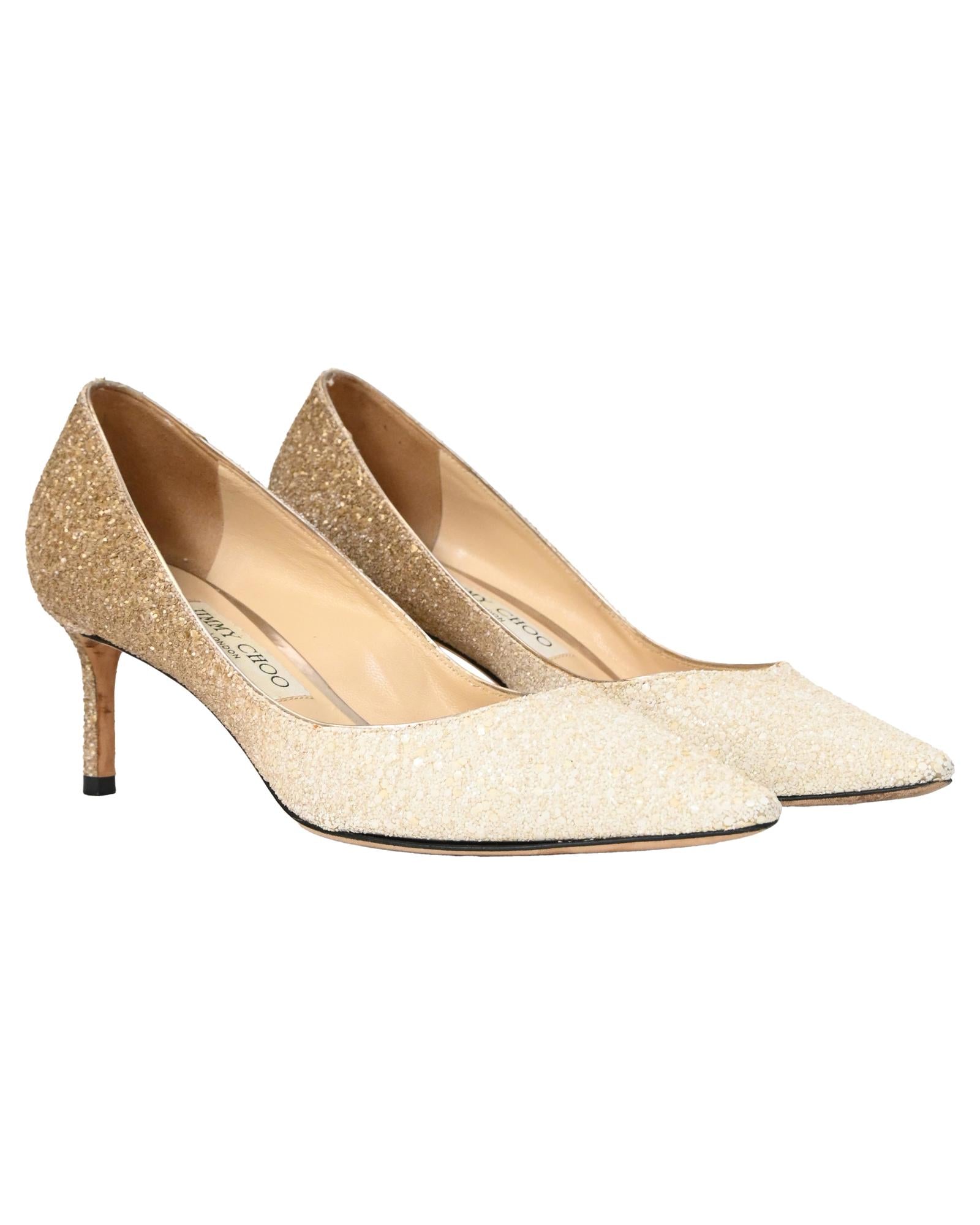 - Jimmy Choo Pointed Toe Pumps in Gold Glitter