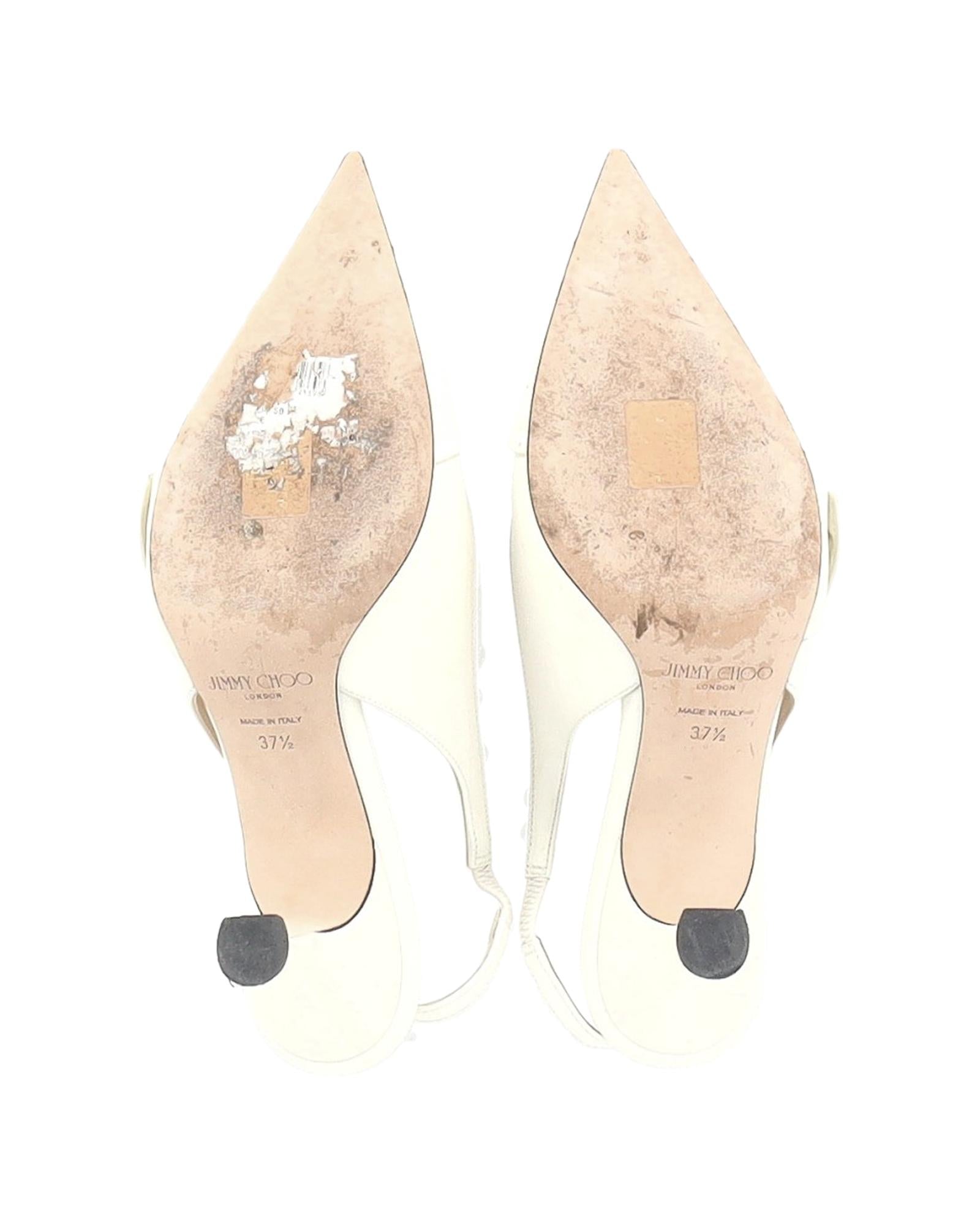 - Jimmy Choo Hedera Slingback Kitten Heel Pumps in White Leather