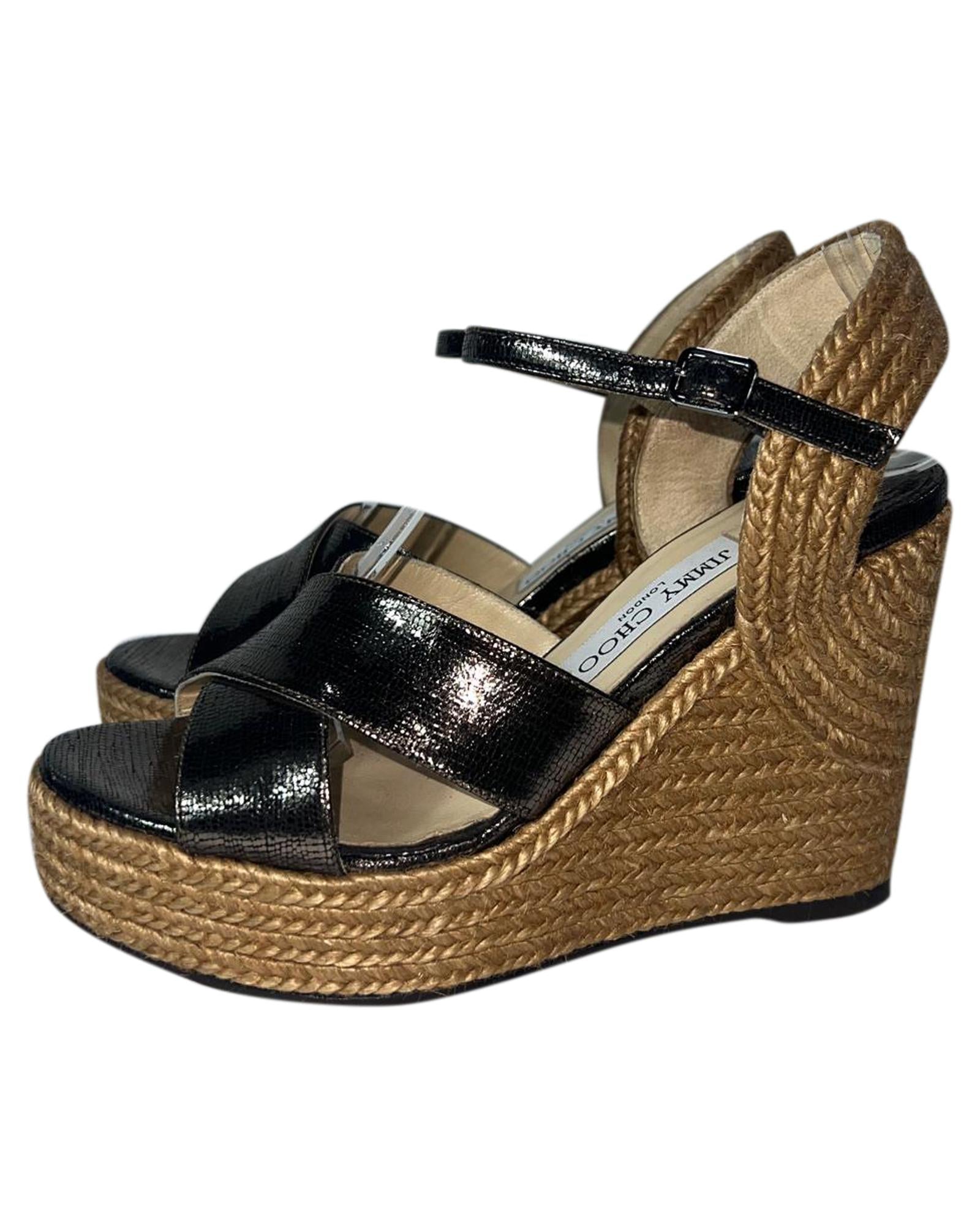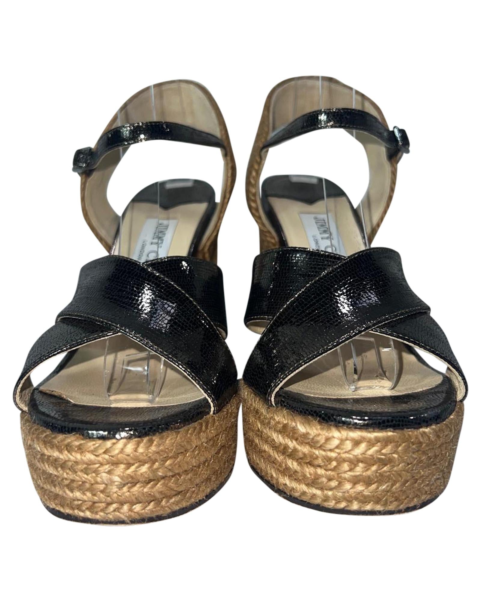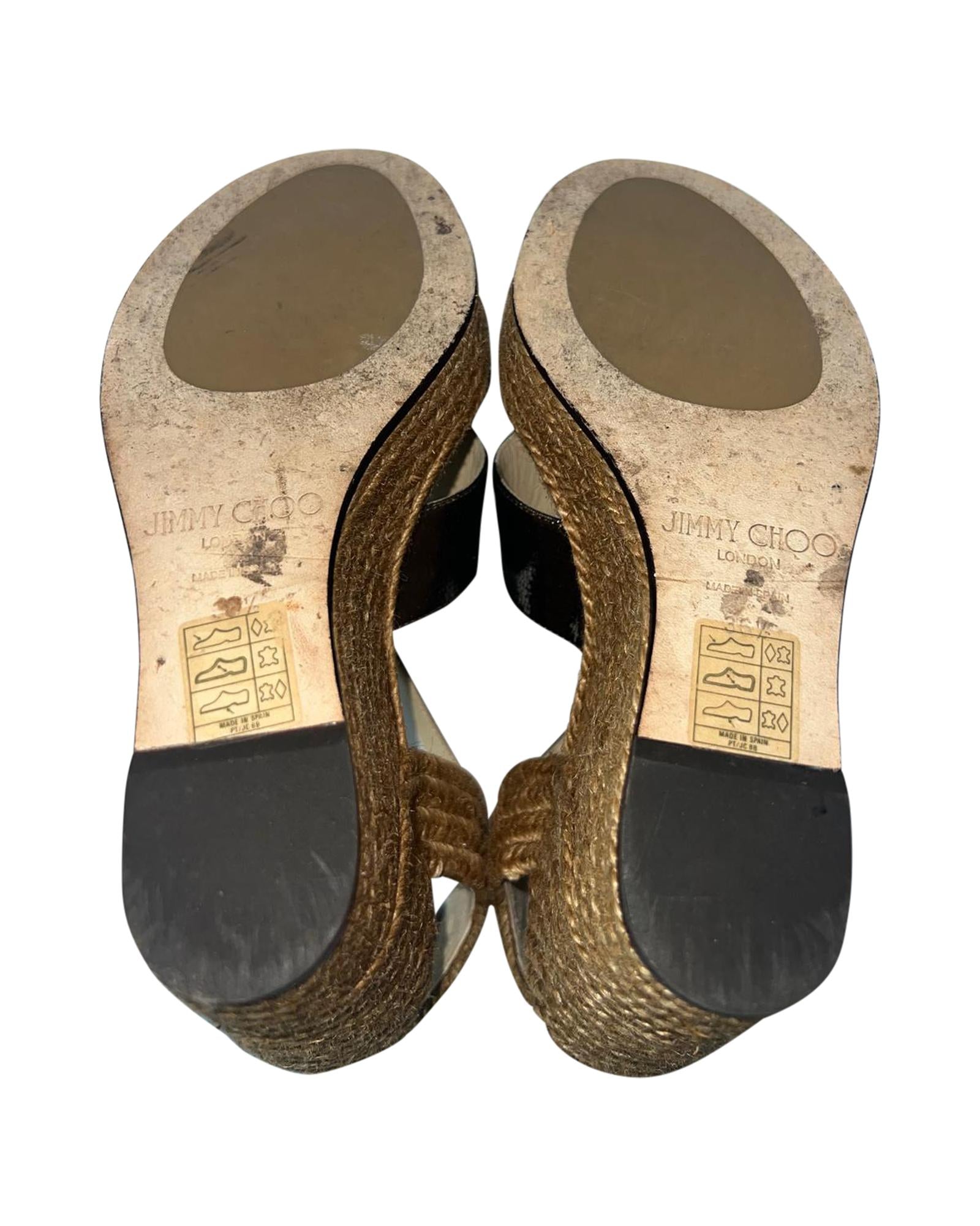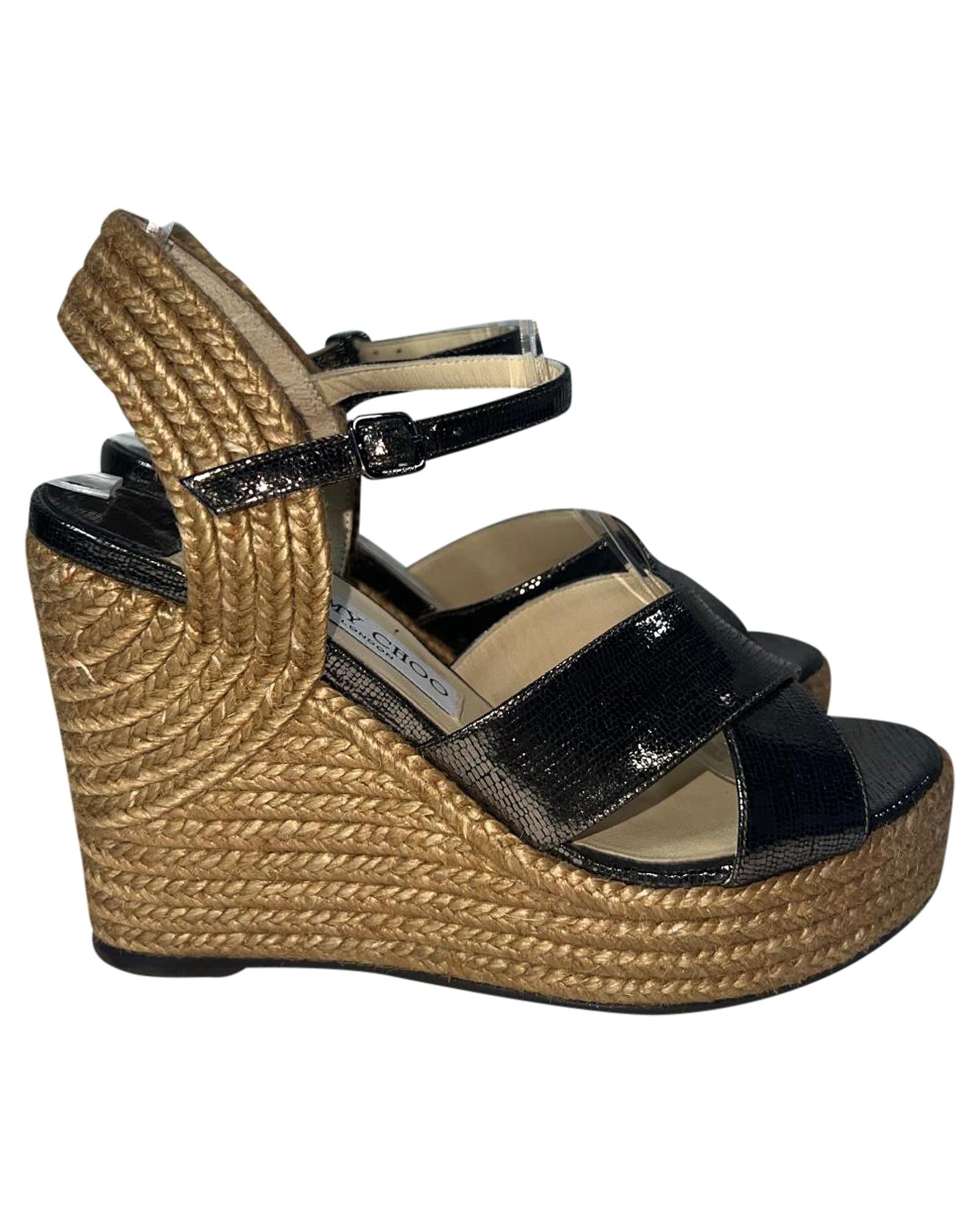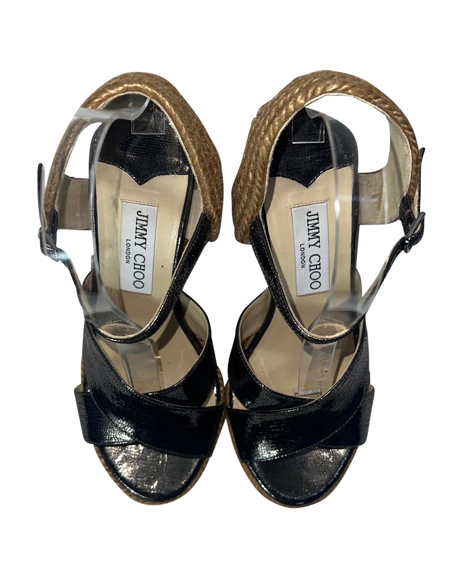 - Jimmy Choo Dellena Espadrille Wedge Sandals in Black Leather