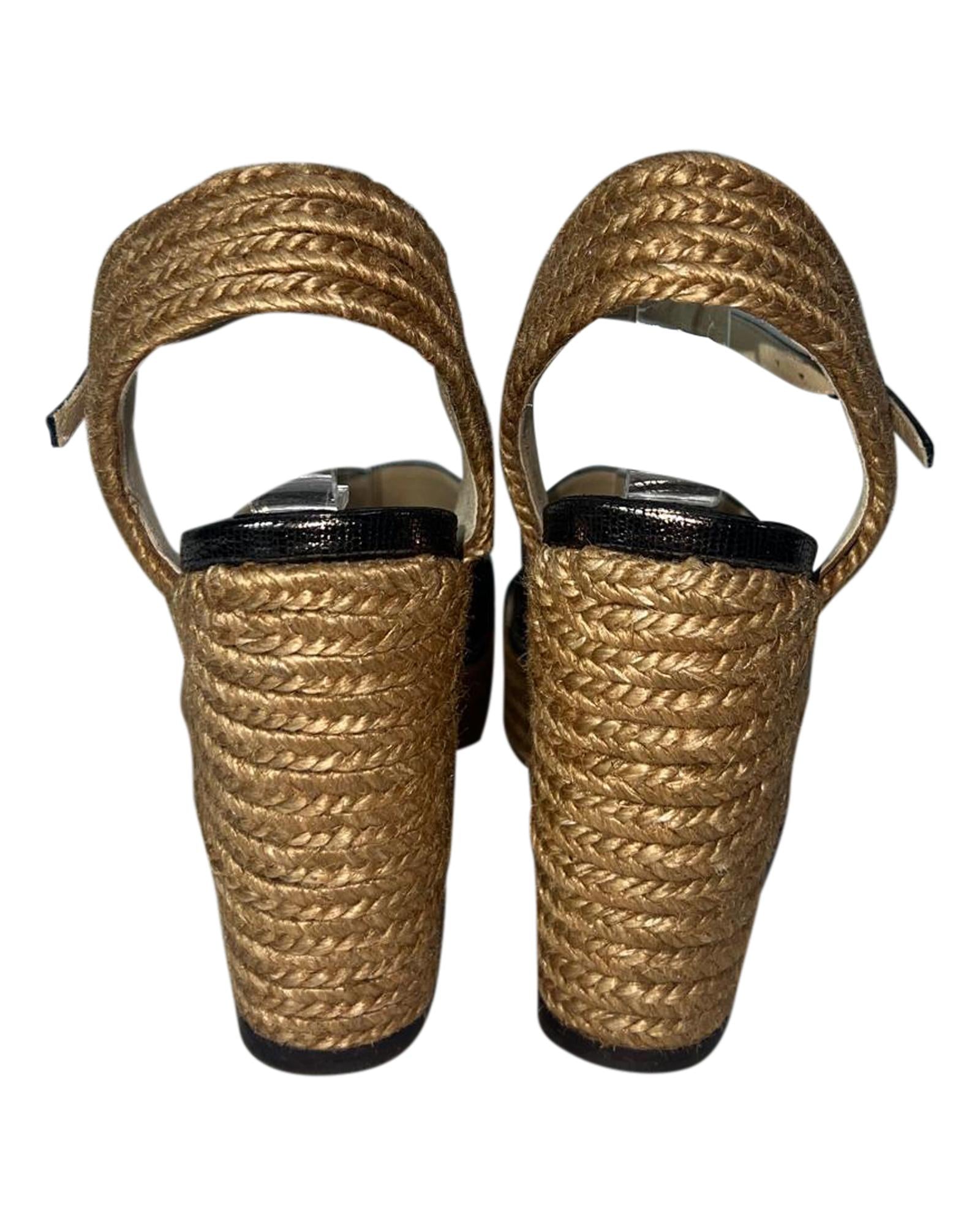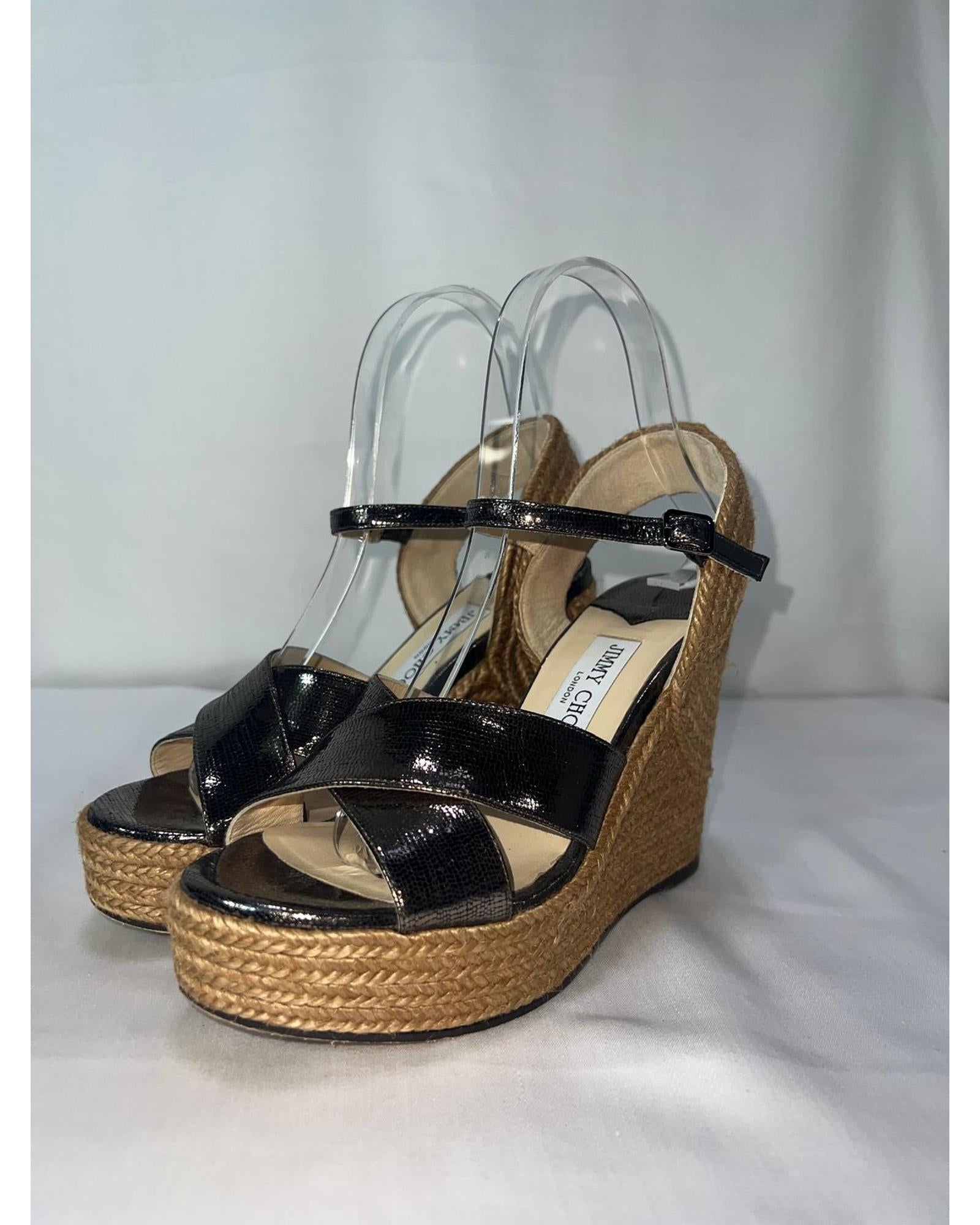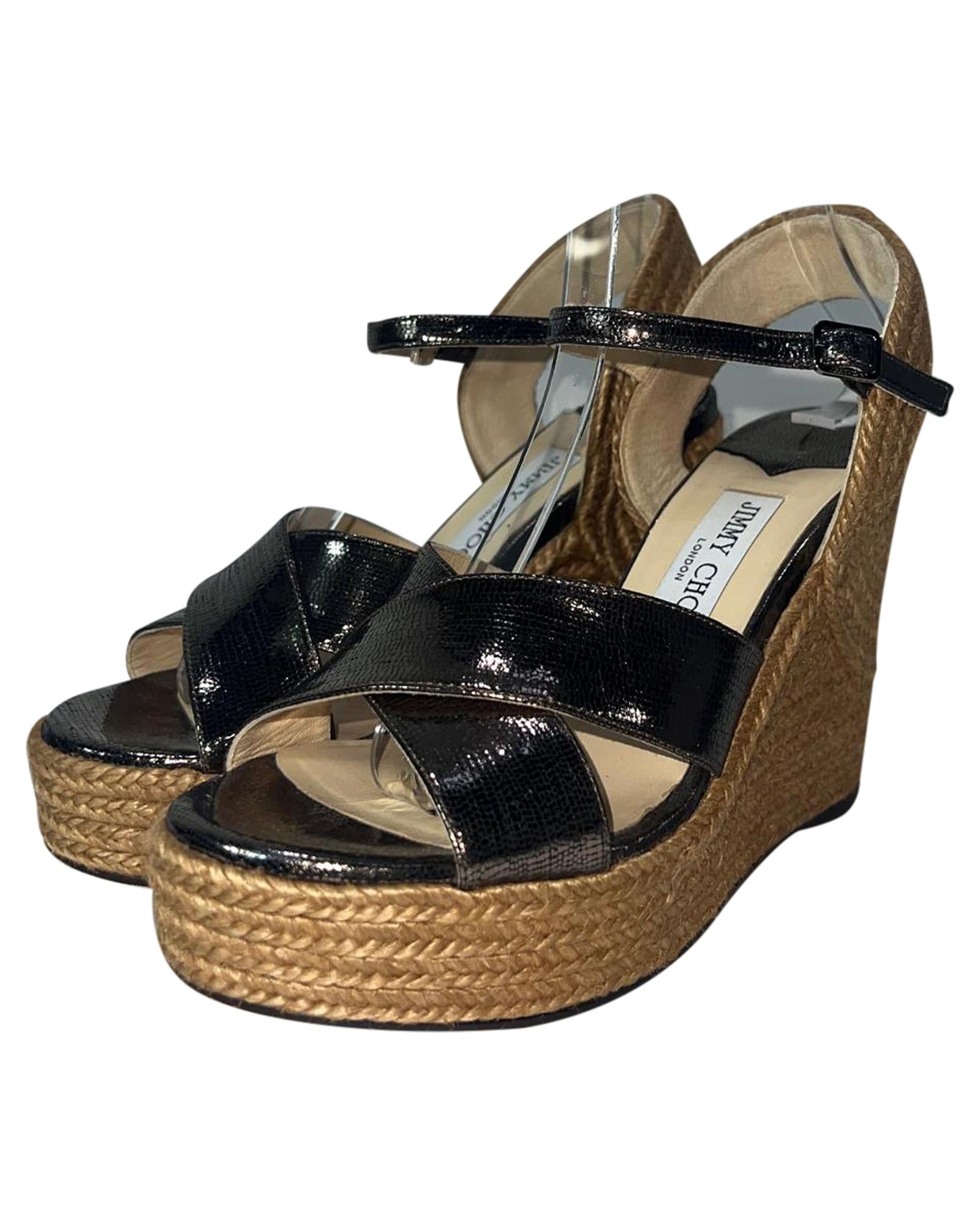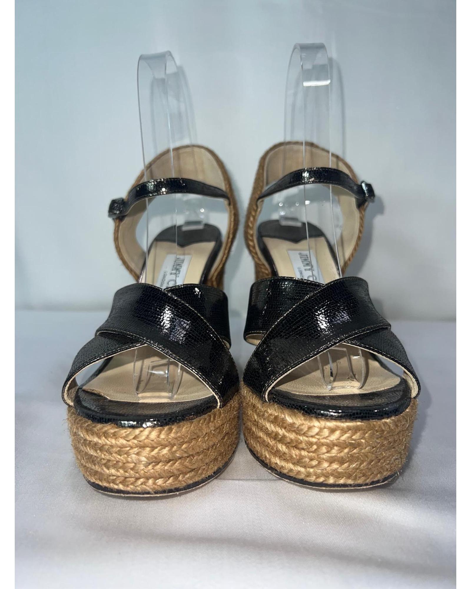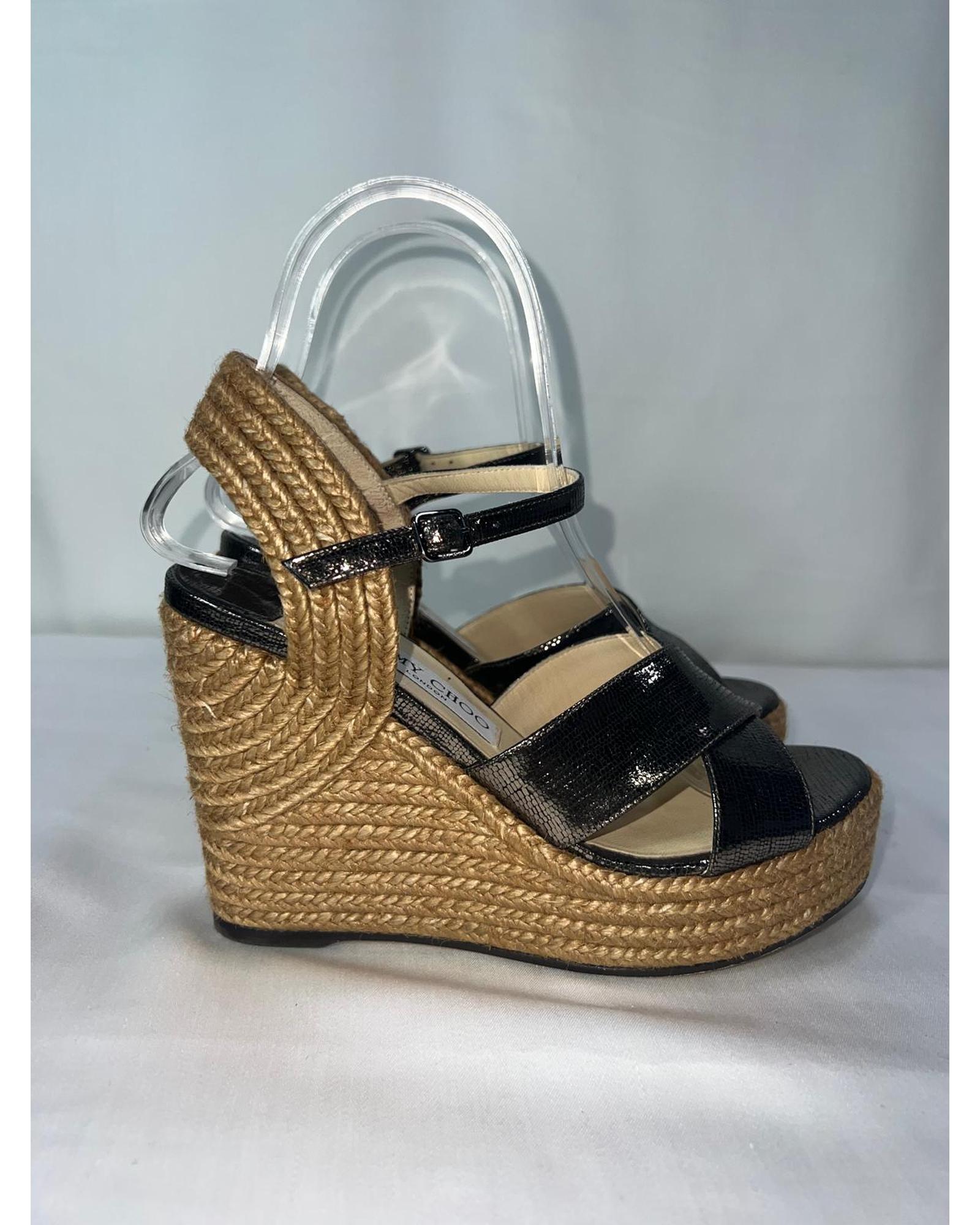 - Jimmy Choo Dellena Espadrille Wedge Sandals in Black Leather