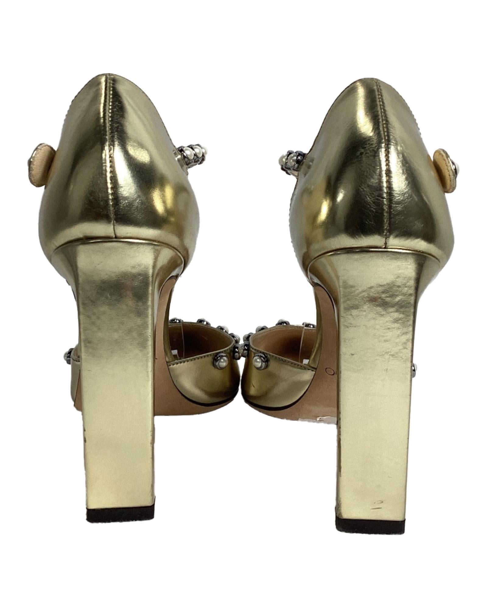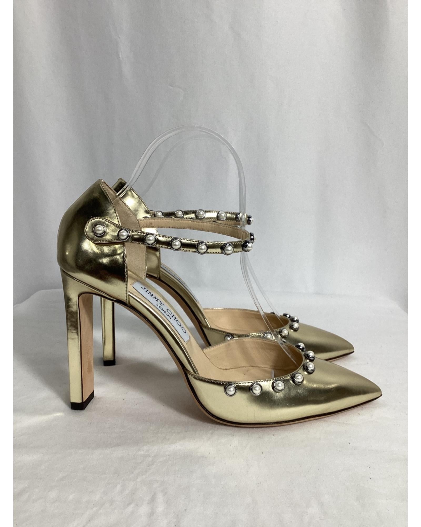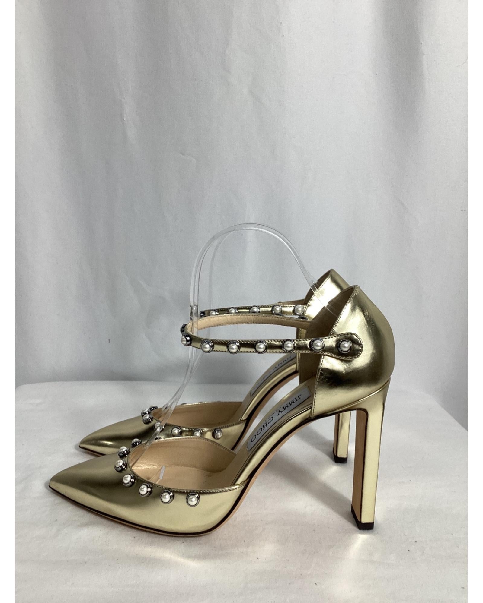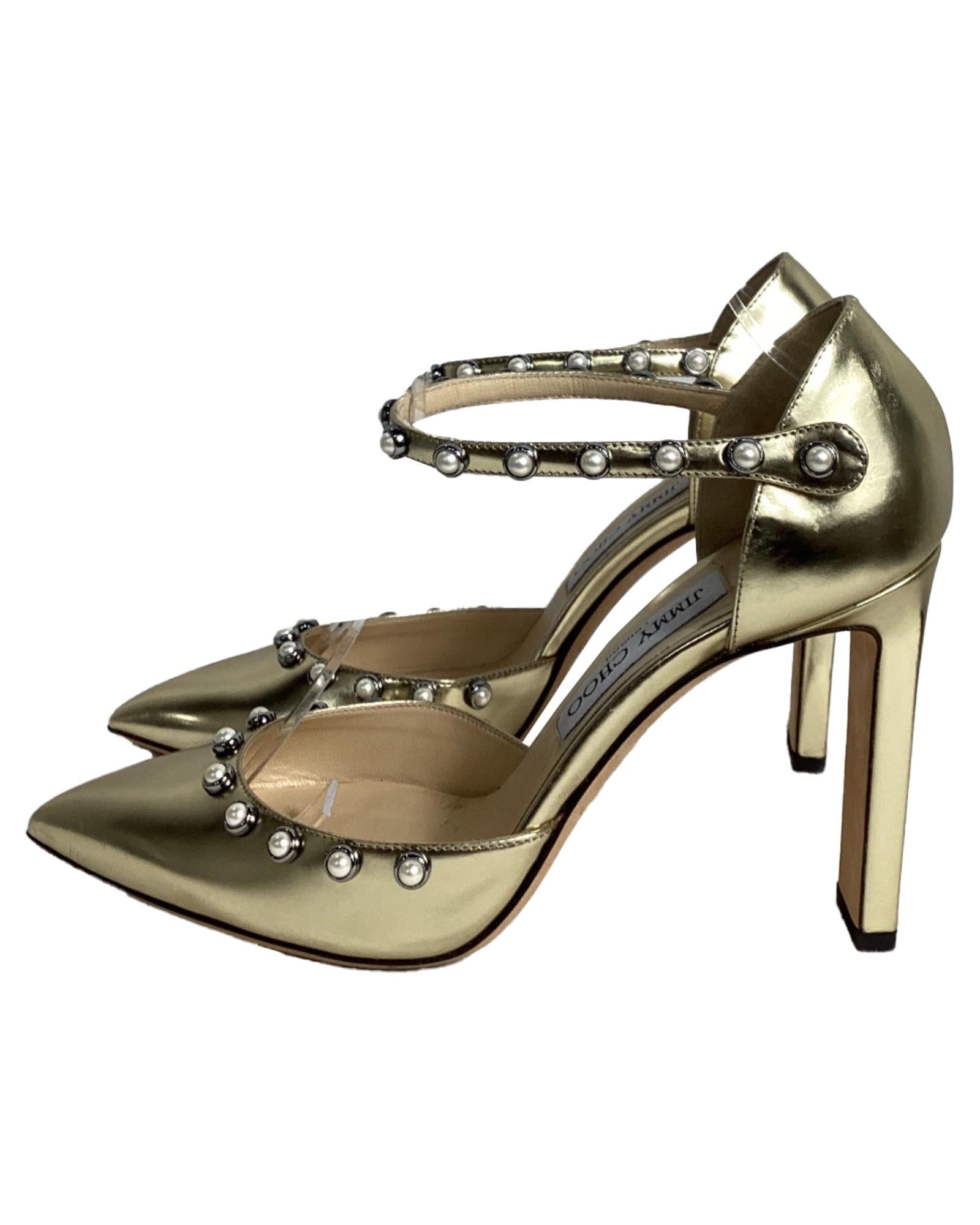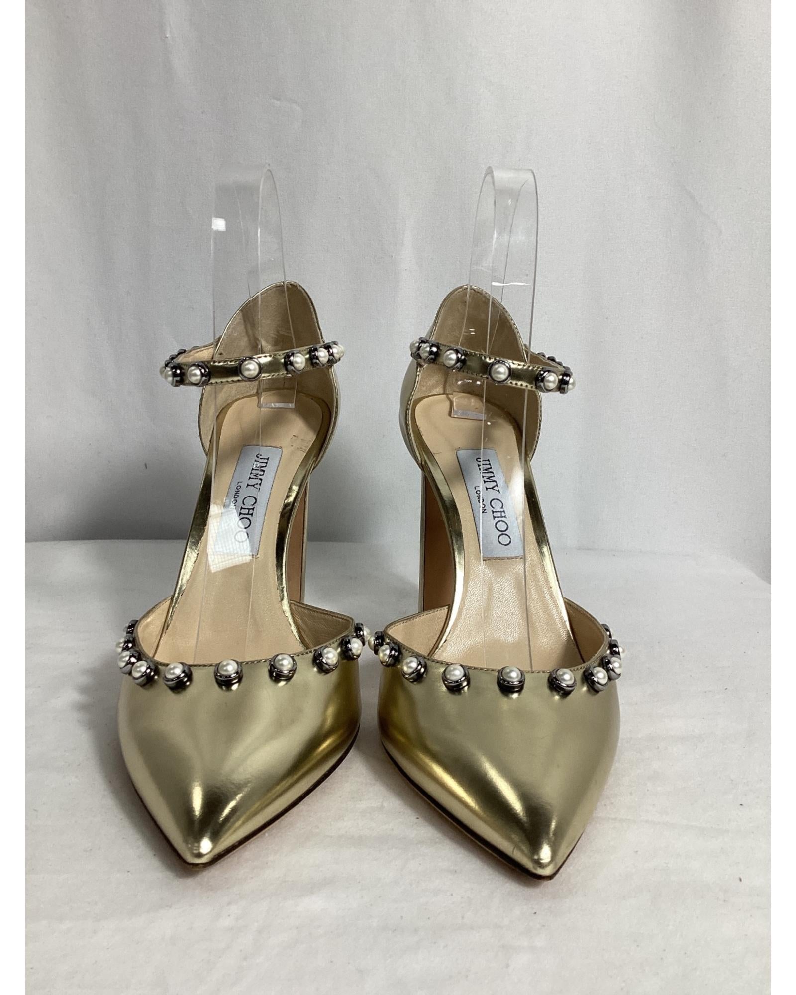 - Jimmy Choo Leema Faux Pearl Accents DOrsay Pumps in Gold Leather