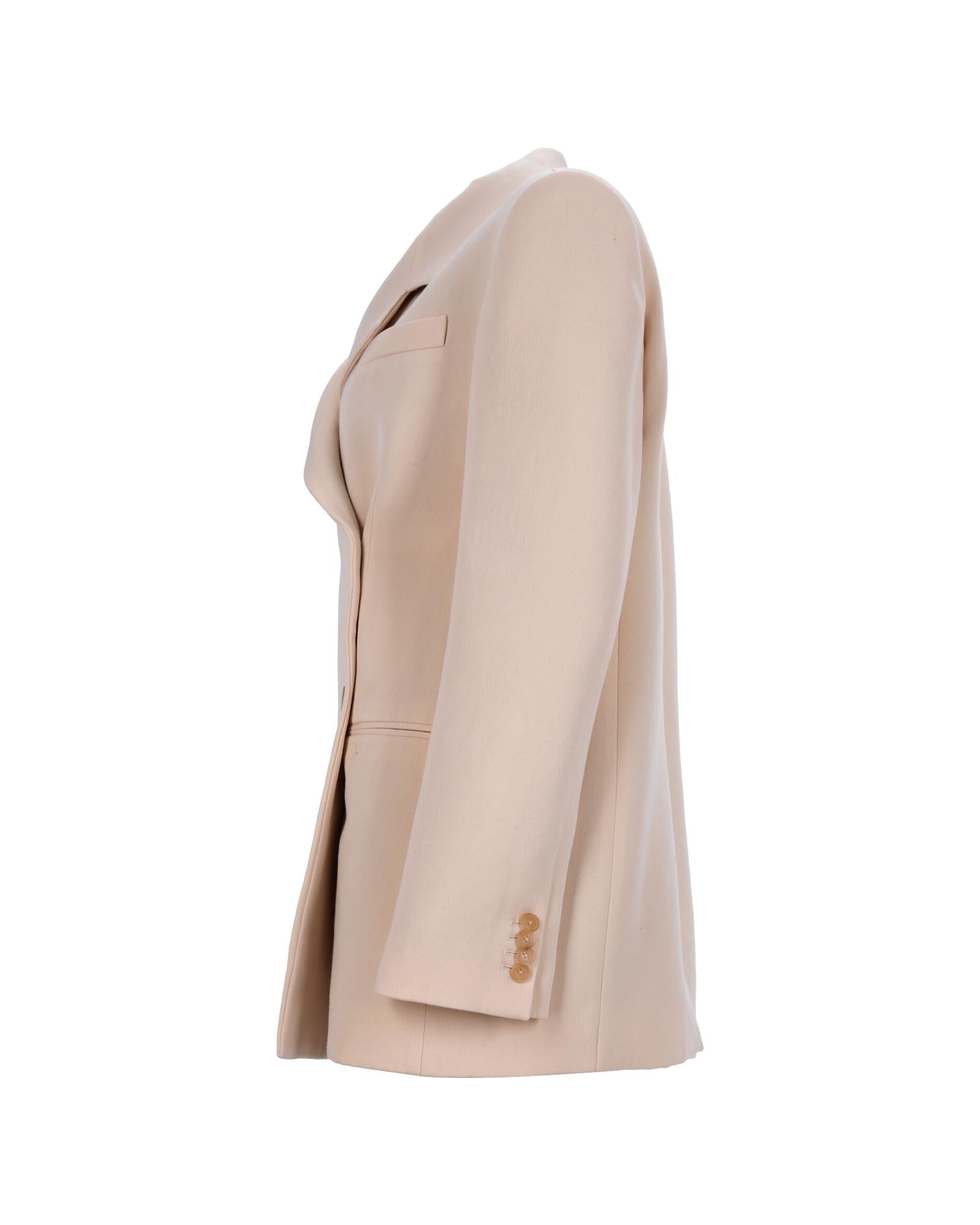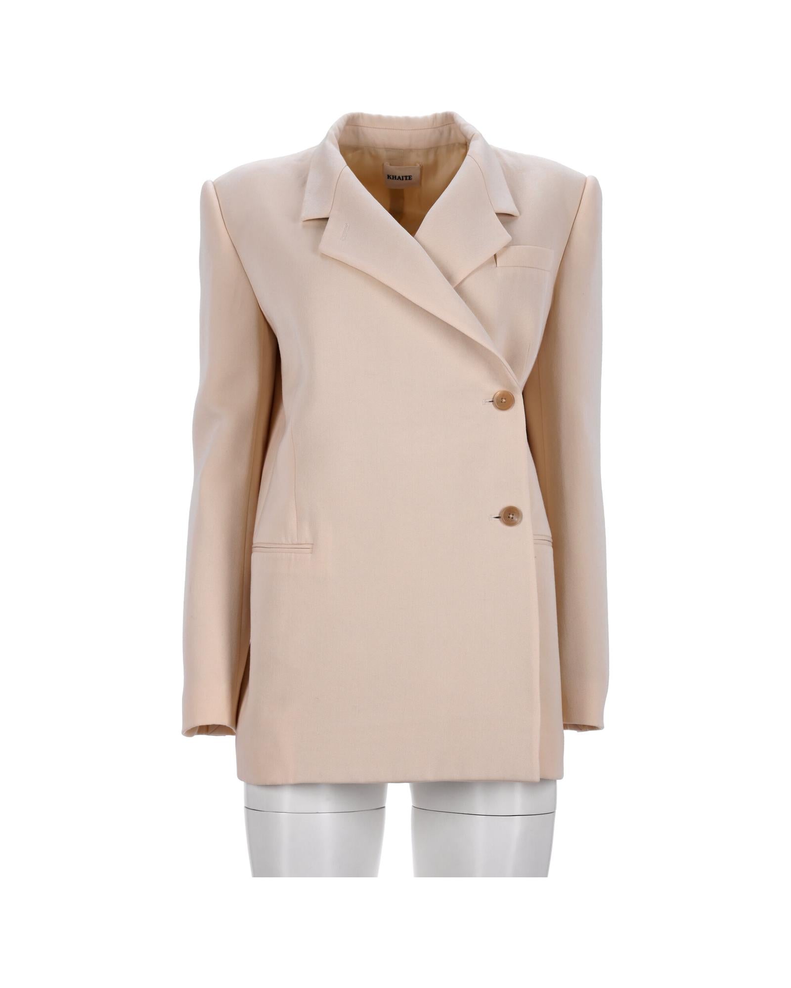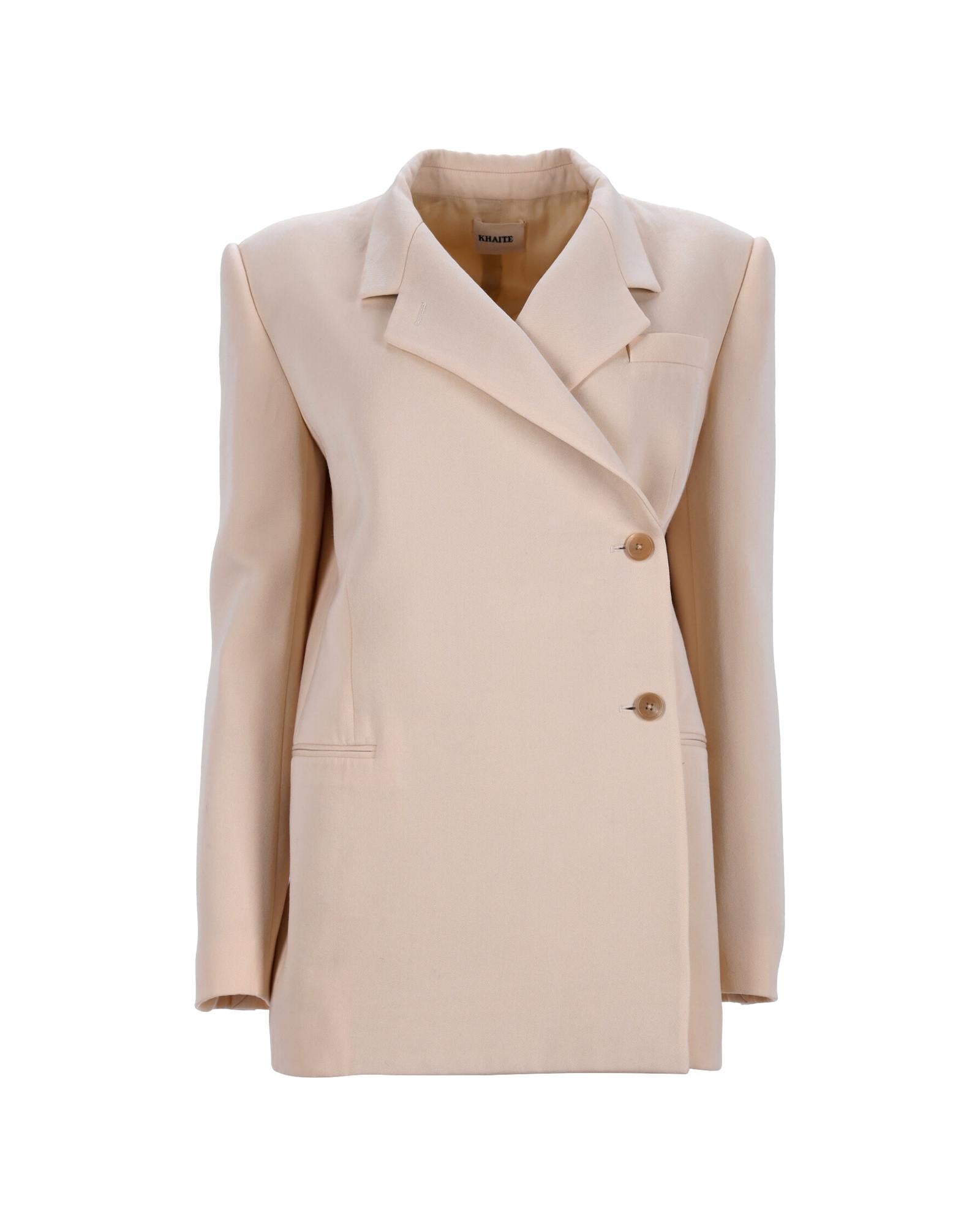 - Khaite Otero Asymmetric Blazer in Beige Virgin Wool