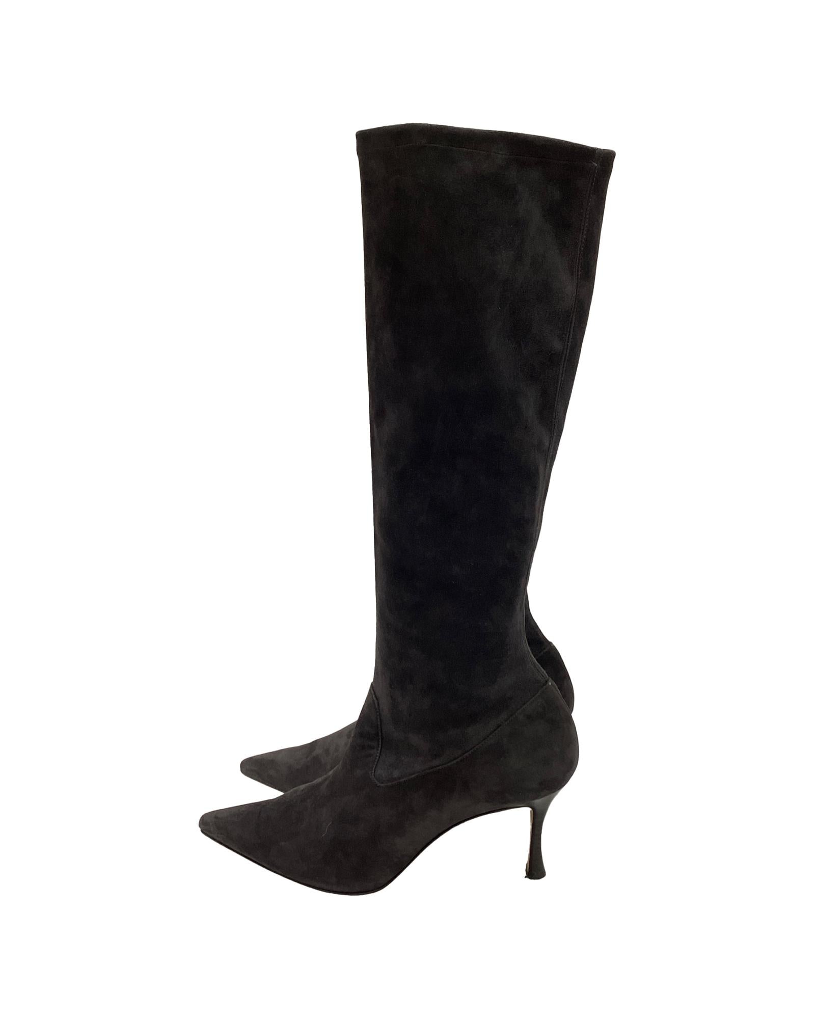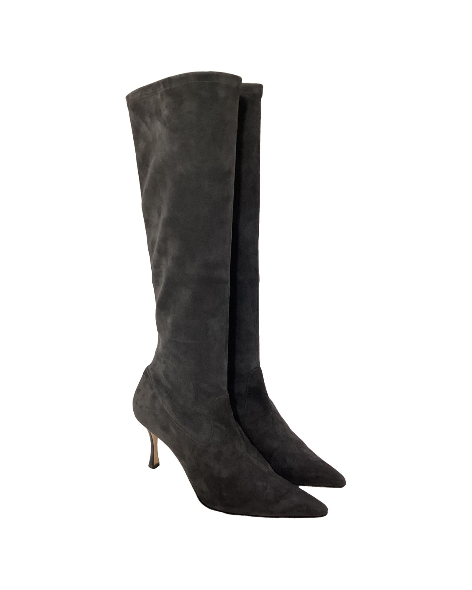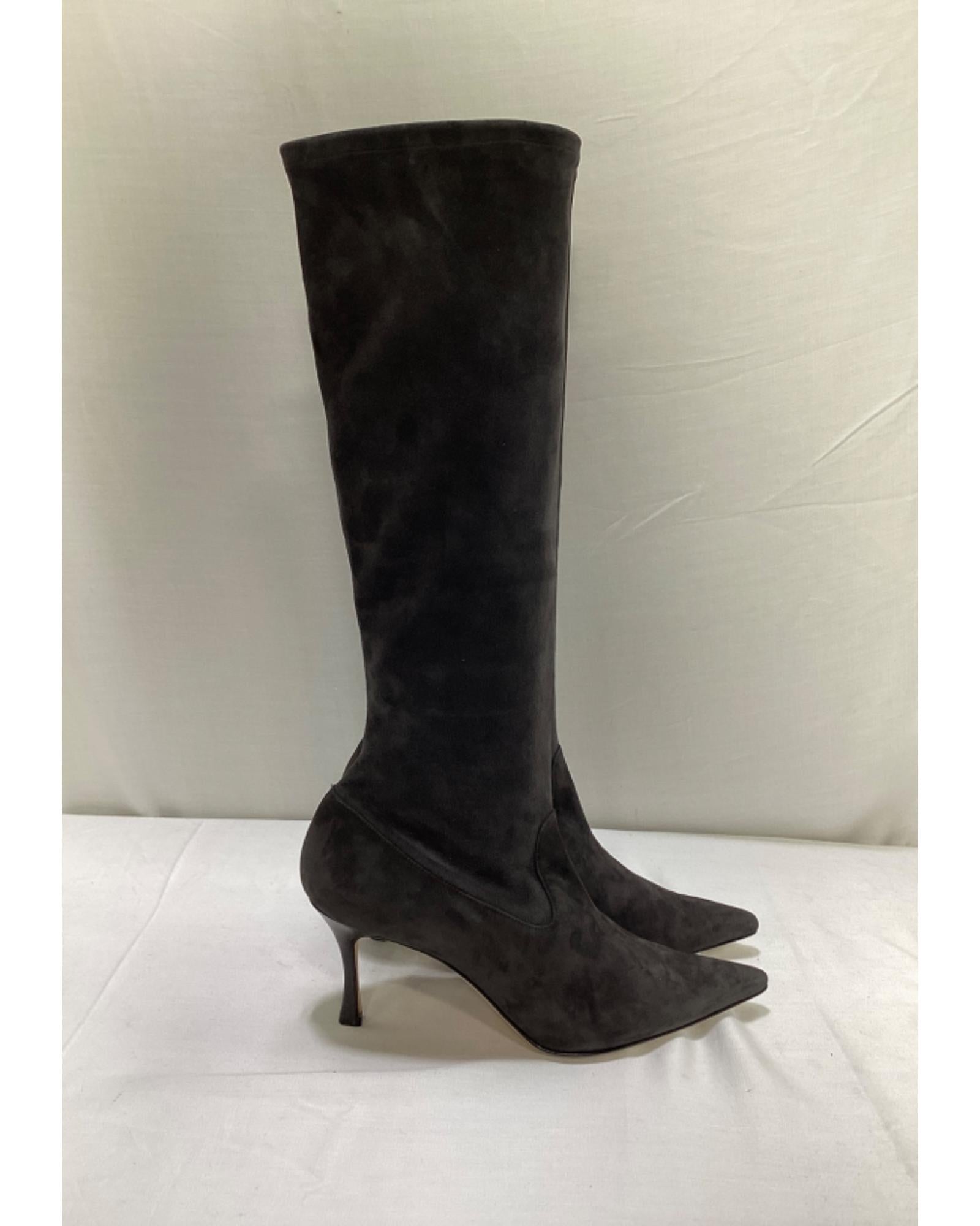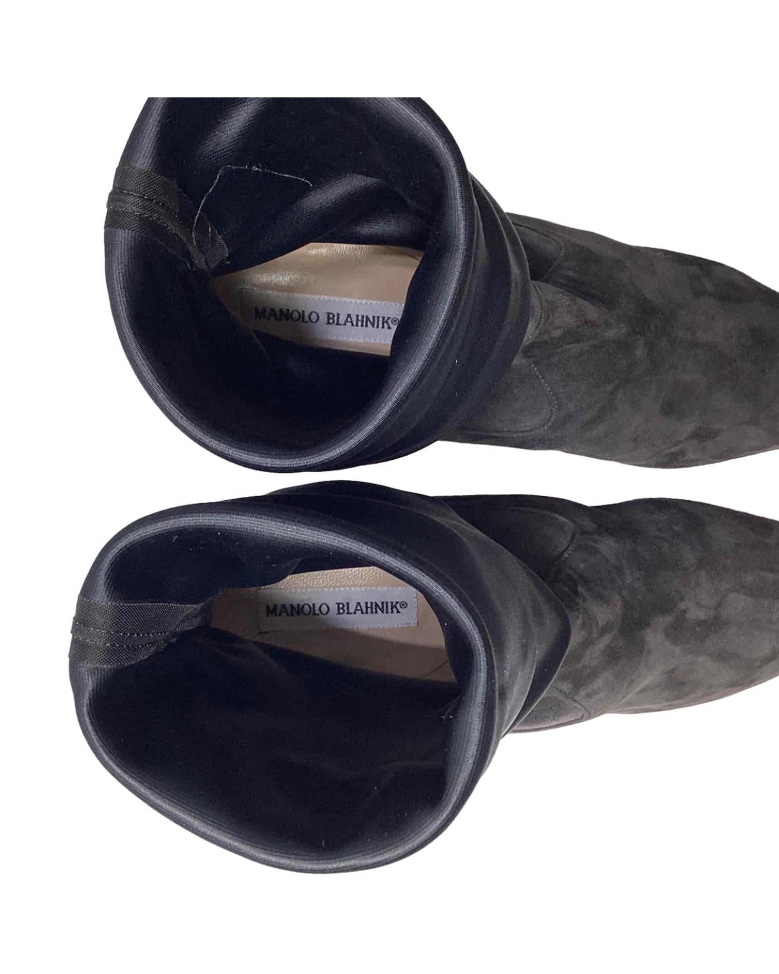 - Manolo Blahnik Stretch High Heel Boots in Grey Suede