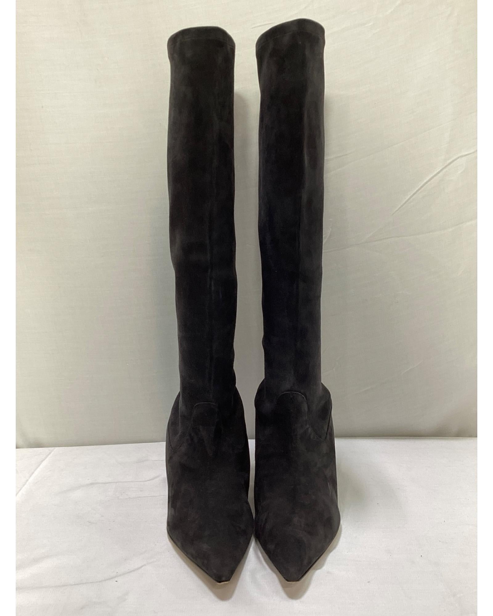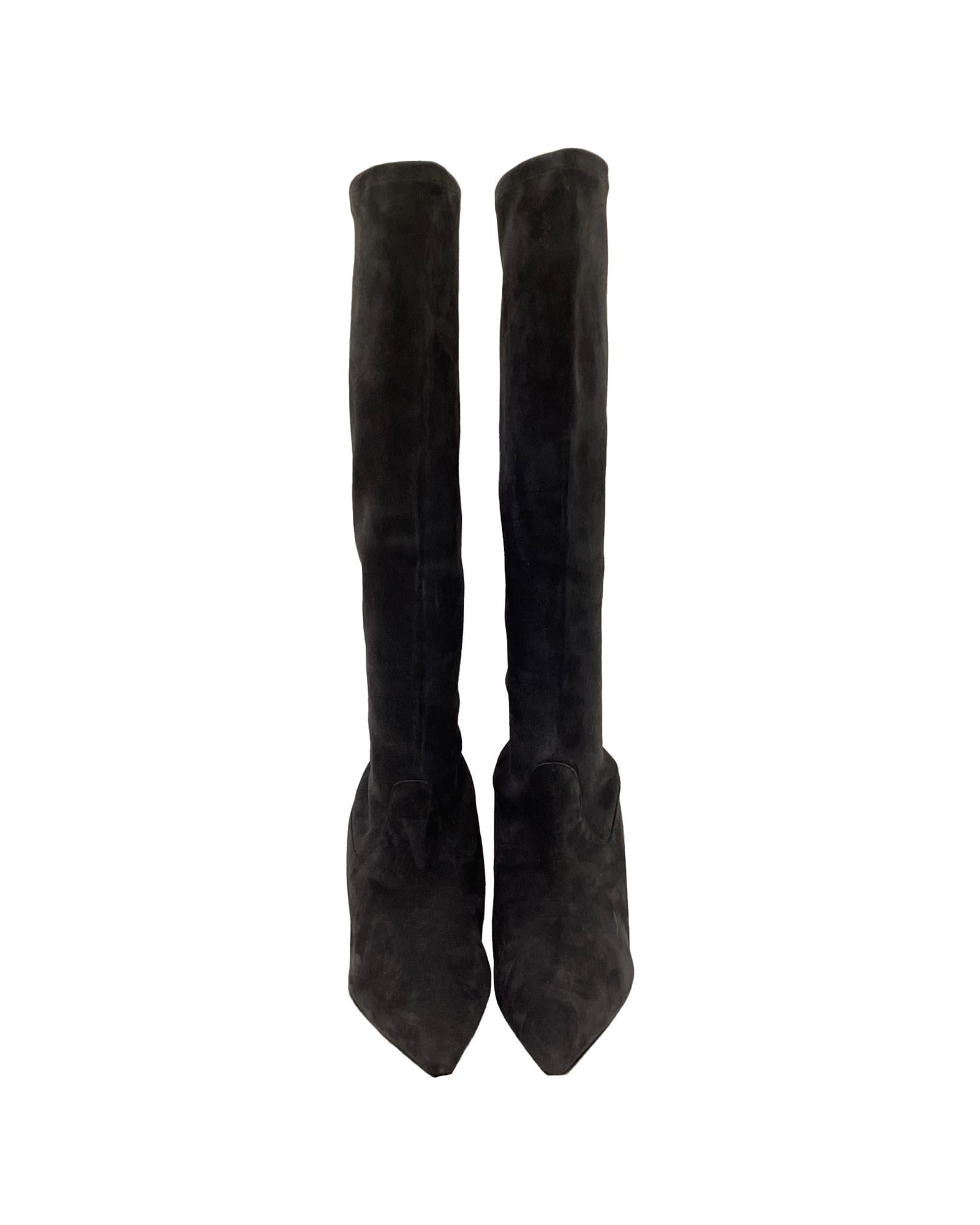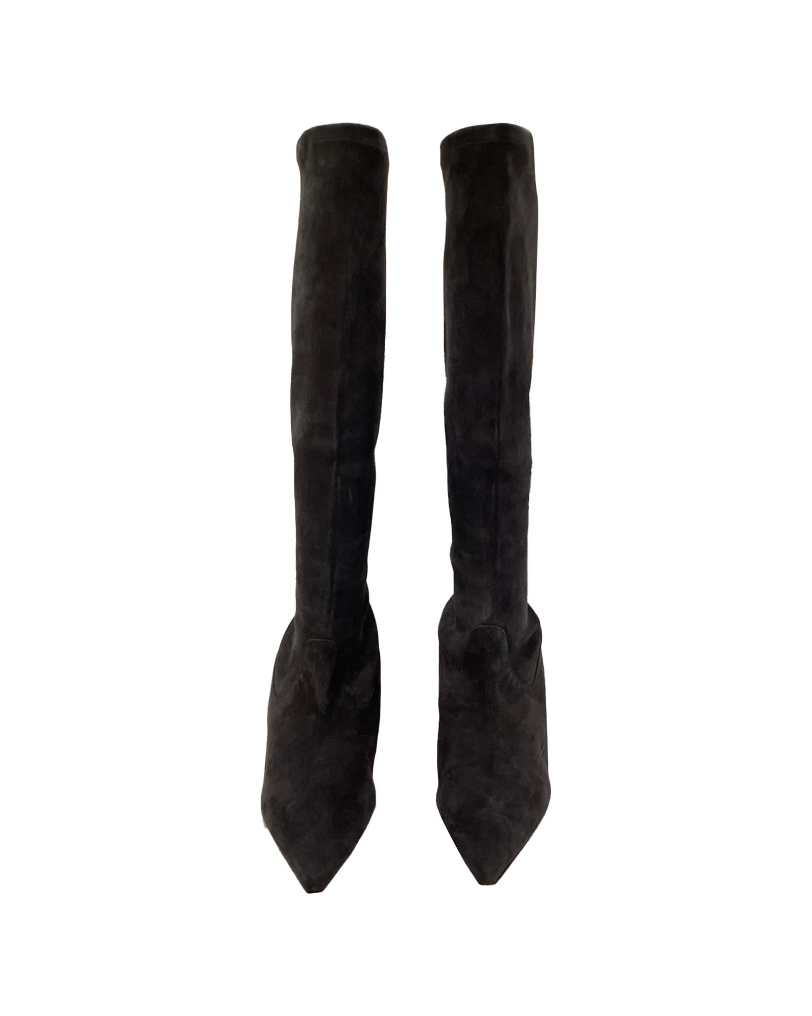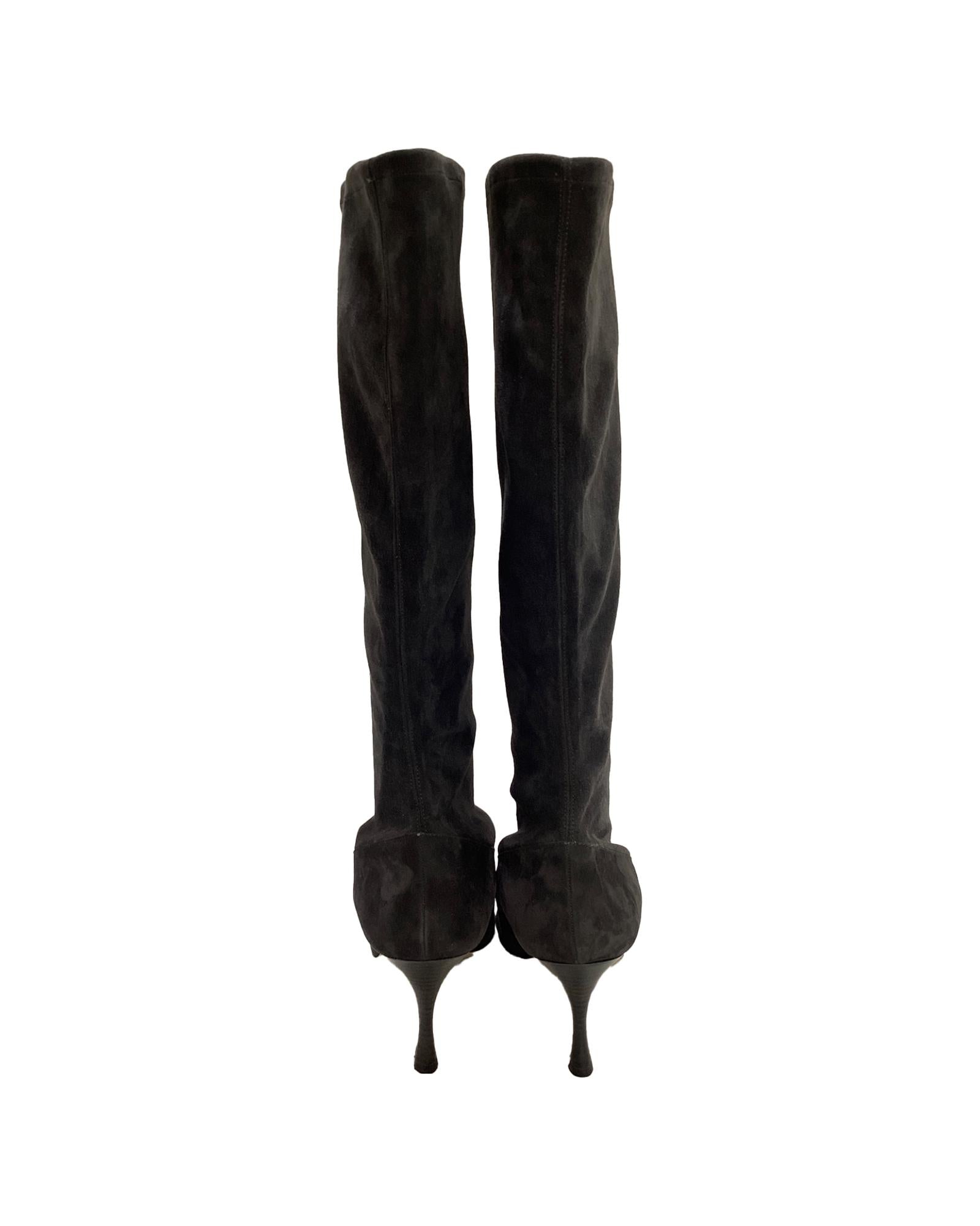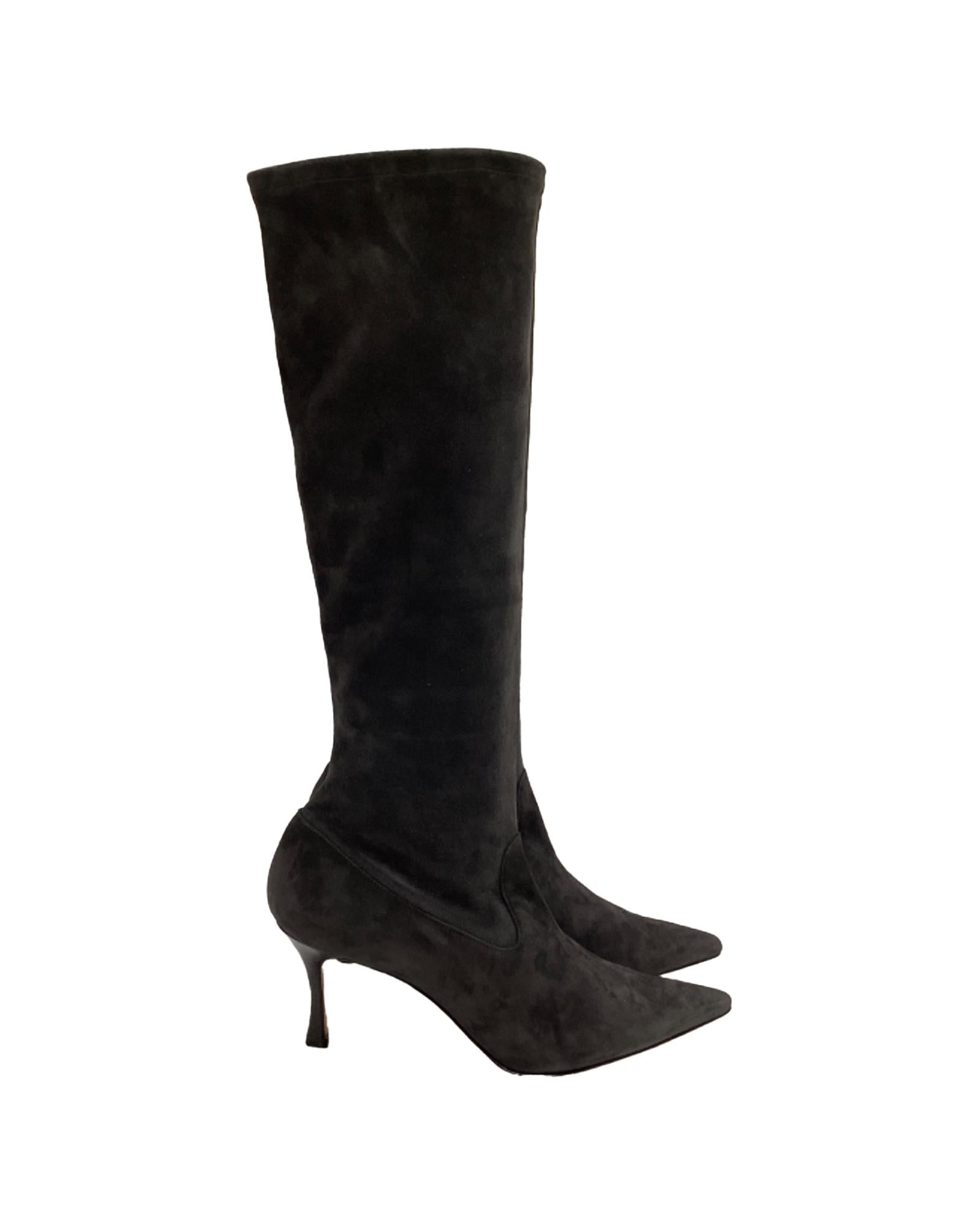 - Manolo Blahnik Stretch High Heel Boots in Grey Suede