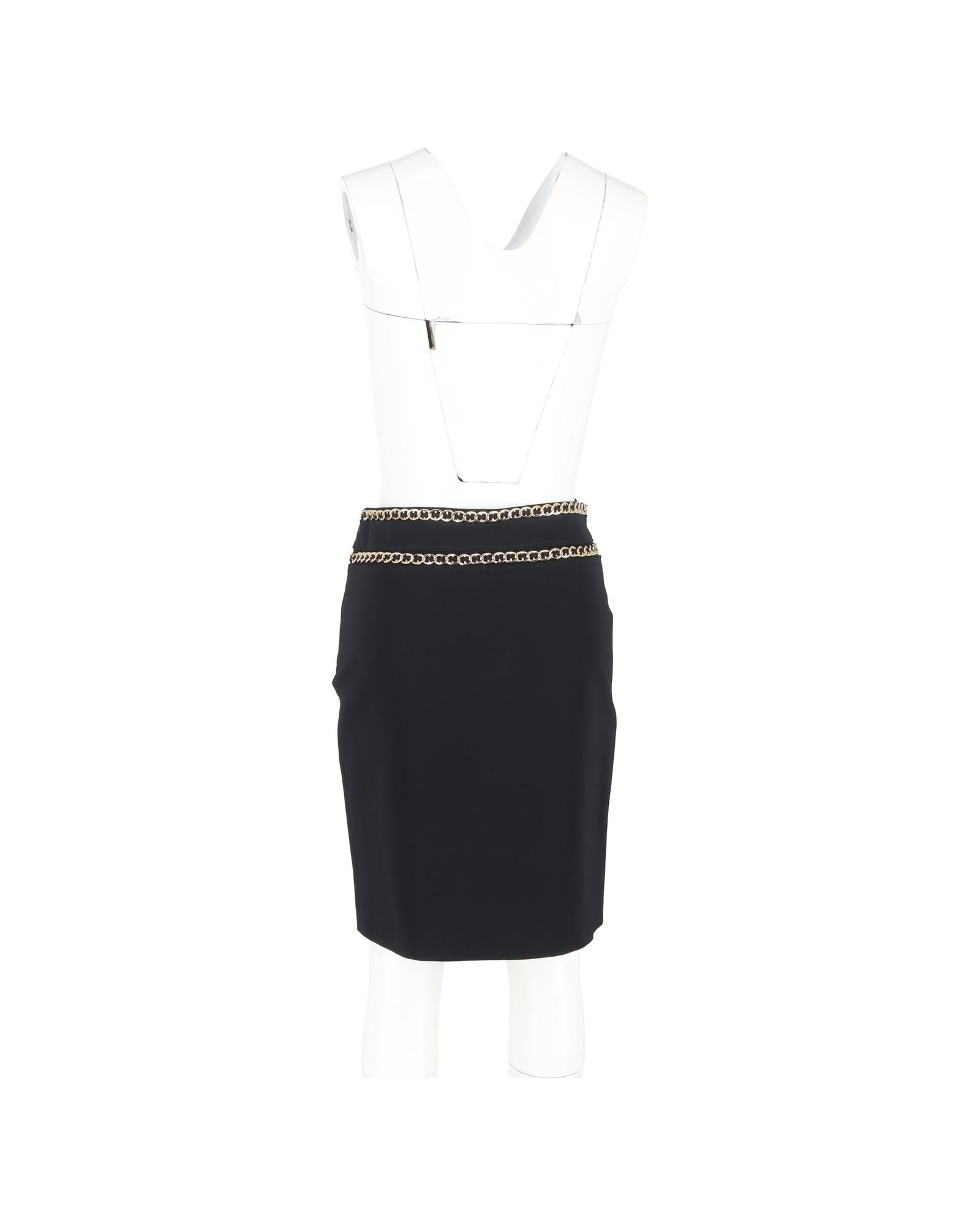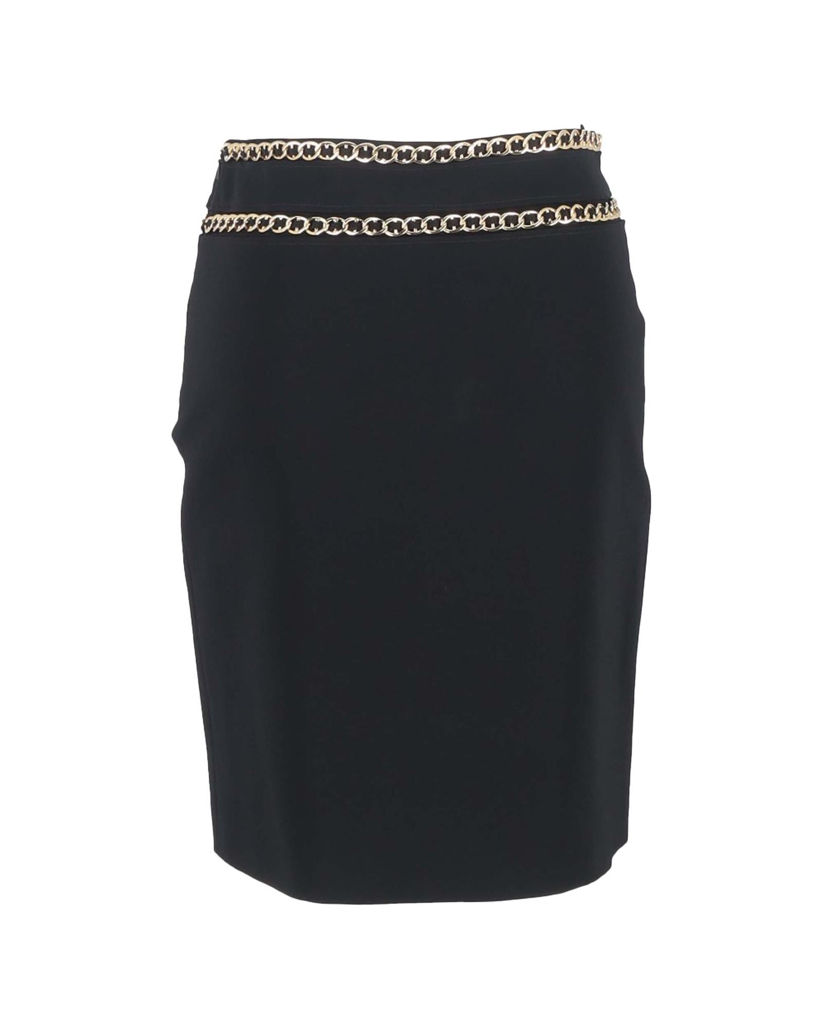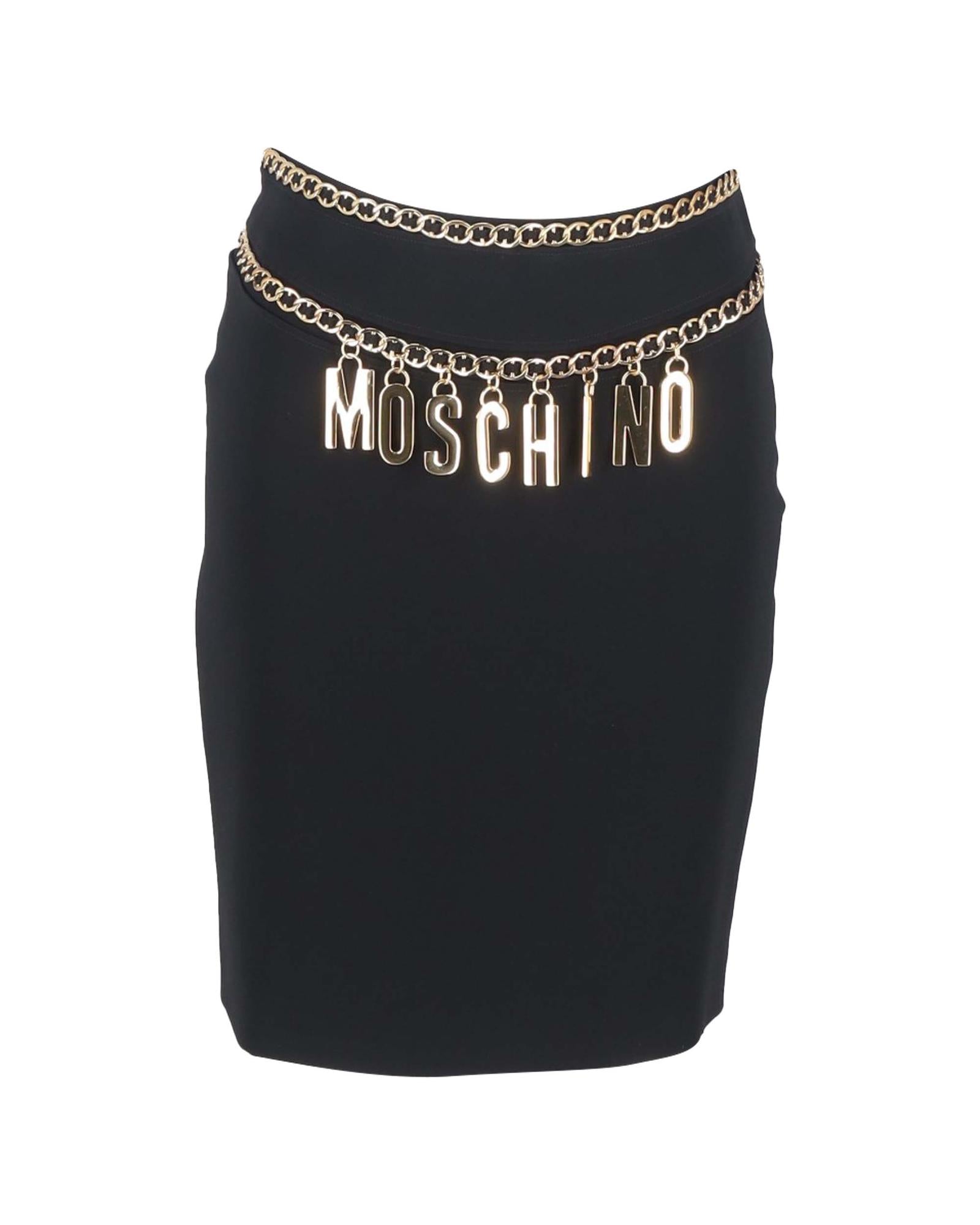 - Moschino Couture Logo Chain Detailed Short Skirt in Black & Gold Triacetate