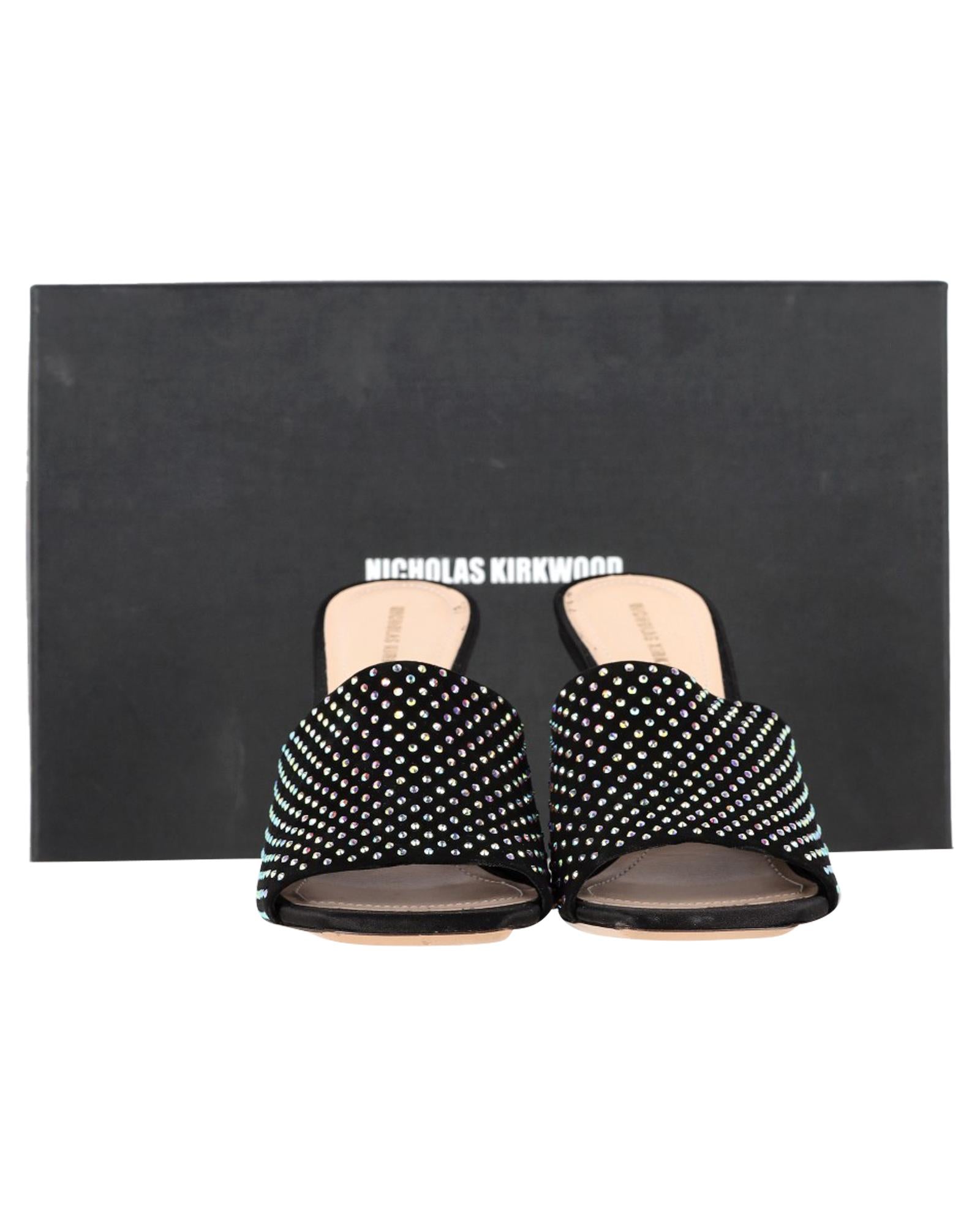 - Nicholas Kirkwood Alba 90 Heeled Mules in Black Suede