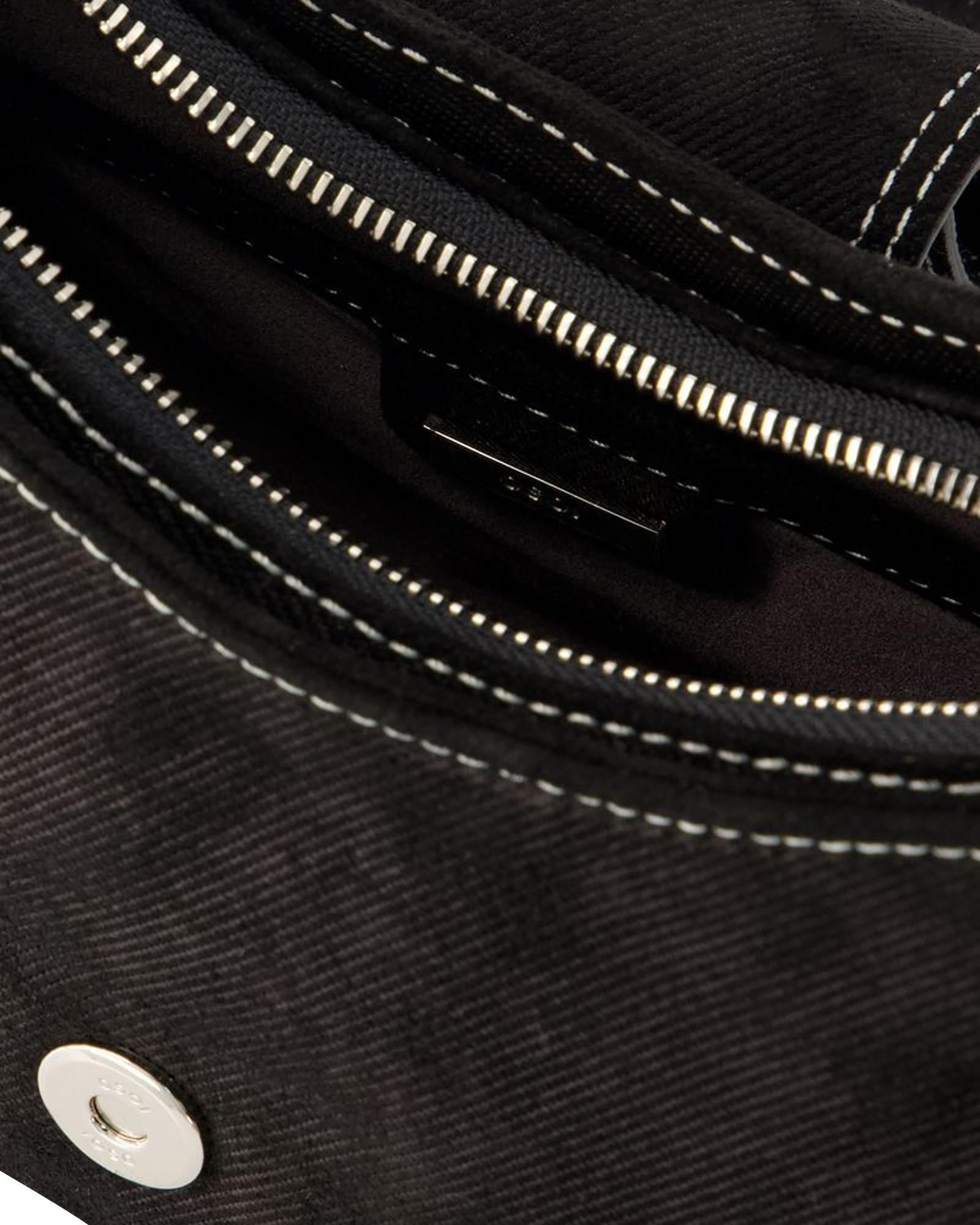• Versatile and stylish hobo bag Made of grained goatskin for a luxurious feel Adjustable shoulder strap for added convenience Lined with a combination of polyester and polyurethane Sleek black color for a sophisticated look Equipped with a top magnetic clasp for easy closure Interior features one flat pocket for storage Product Id: 285604 Original Price: EUR 420