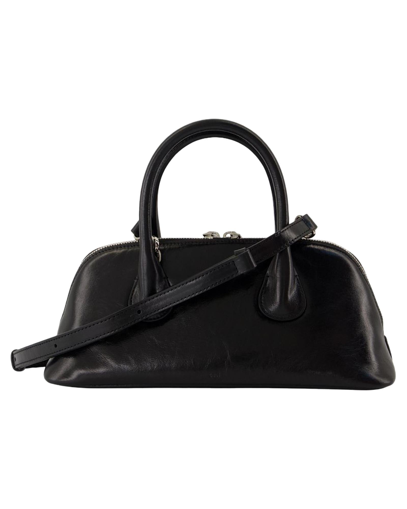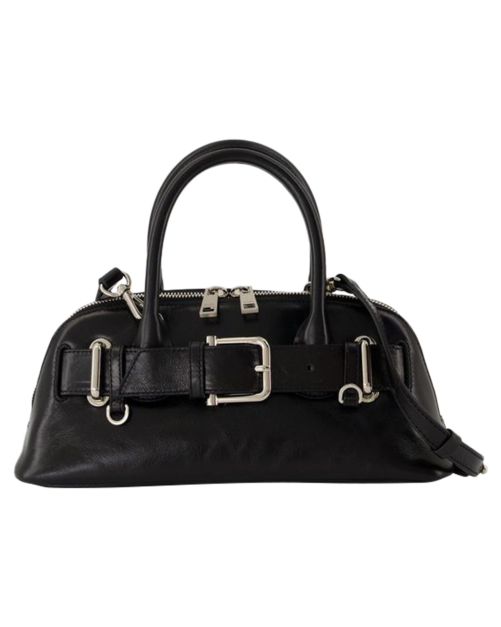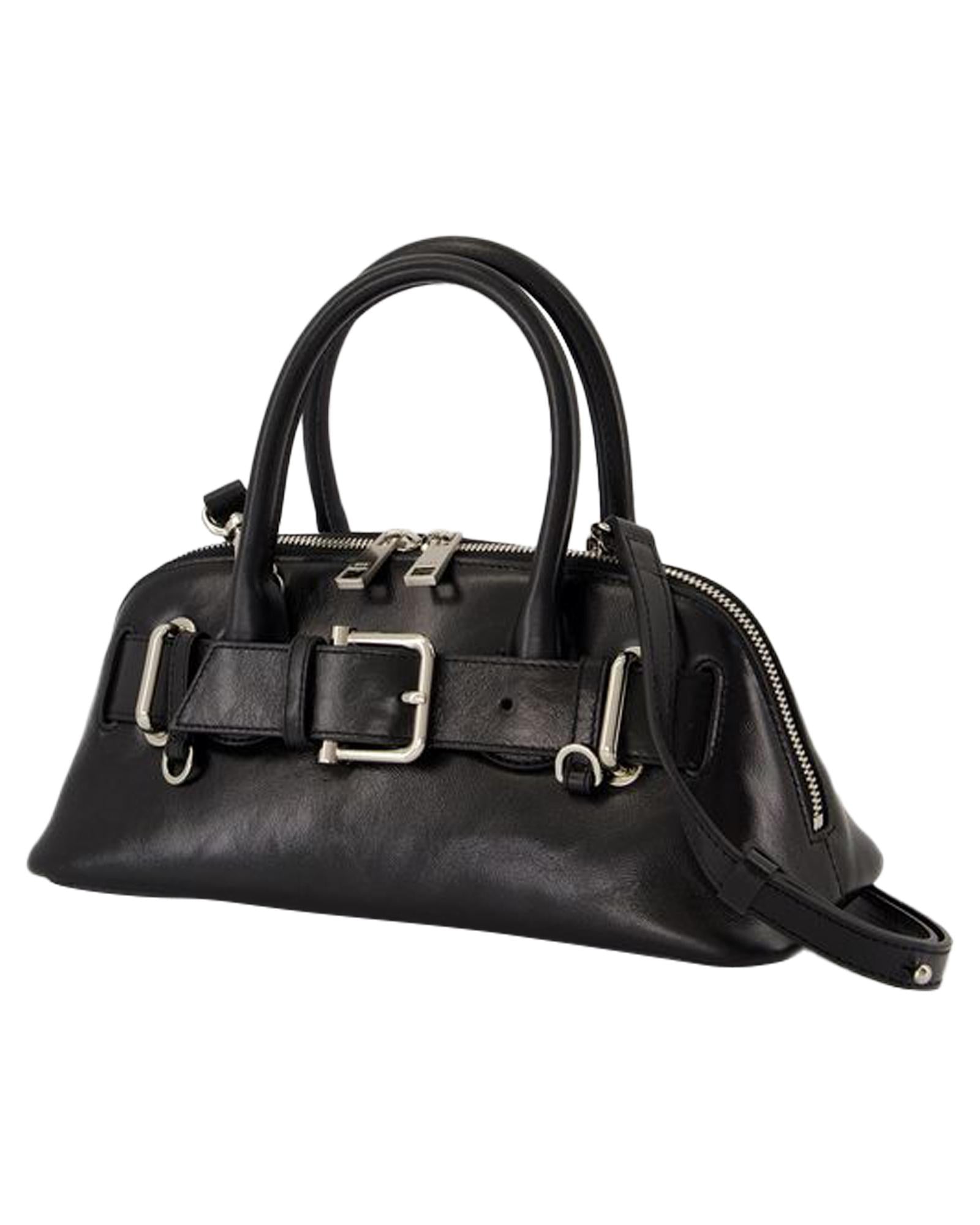 Zip Brocle Mini Leather Shoulder Bag with Detachable Crossbody Strap