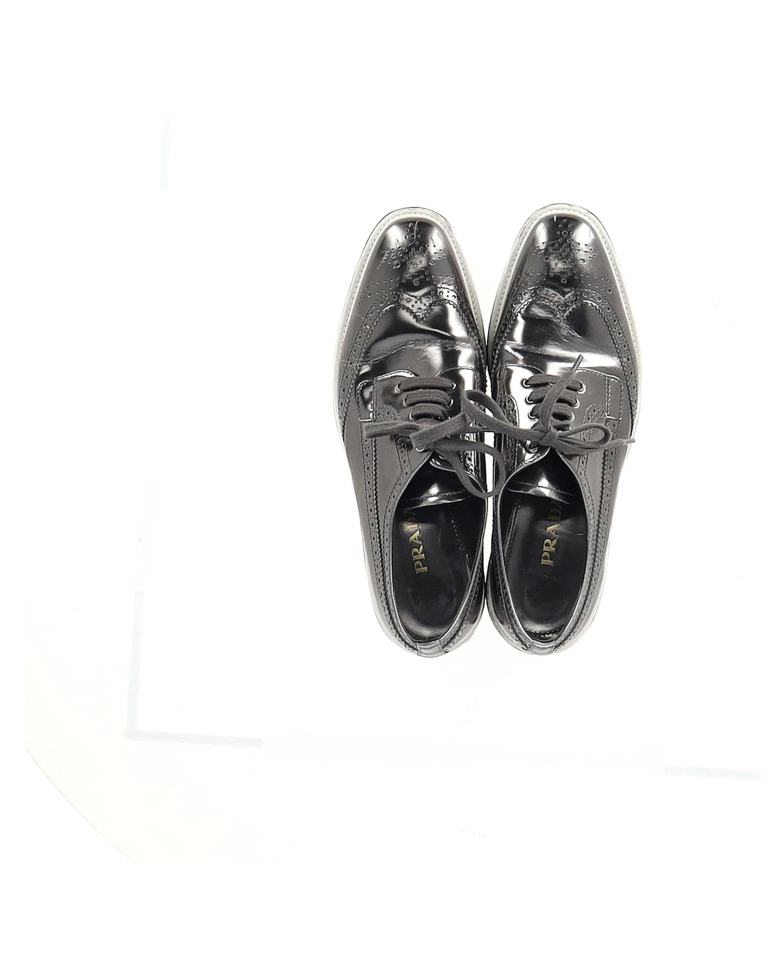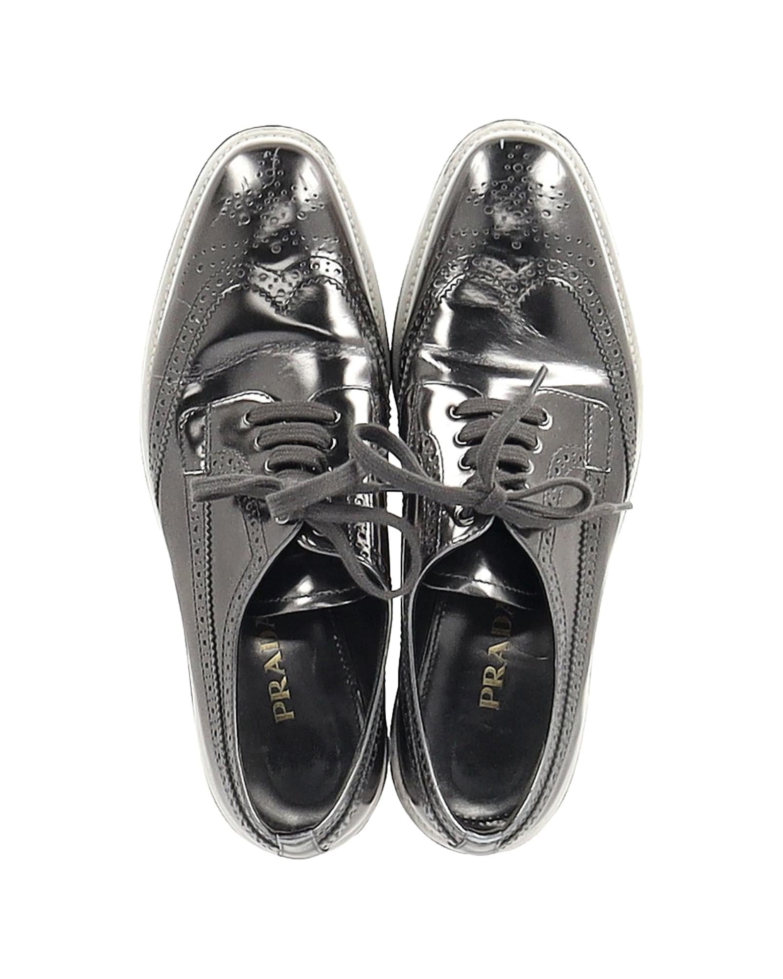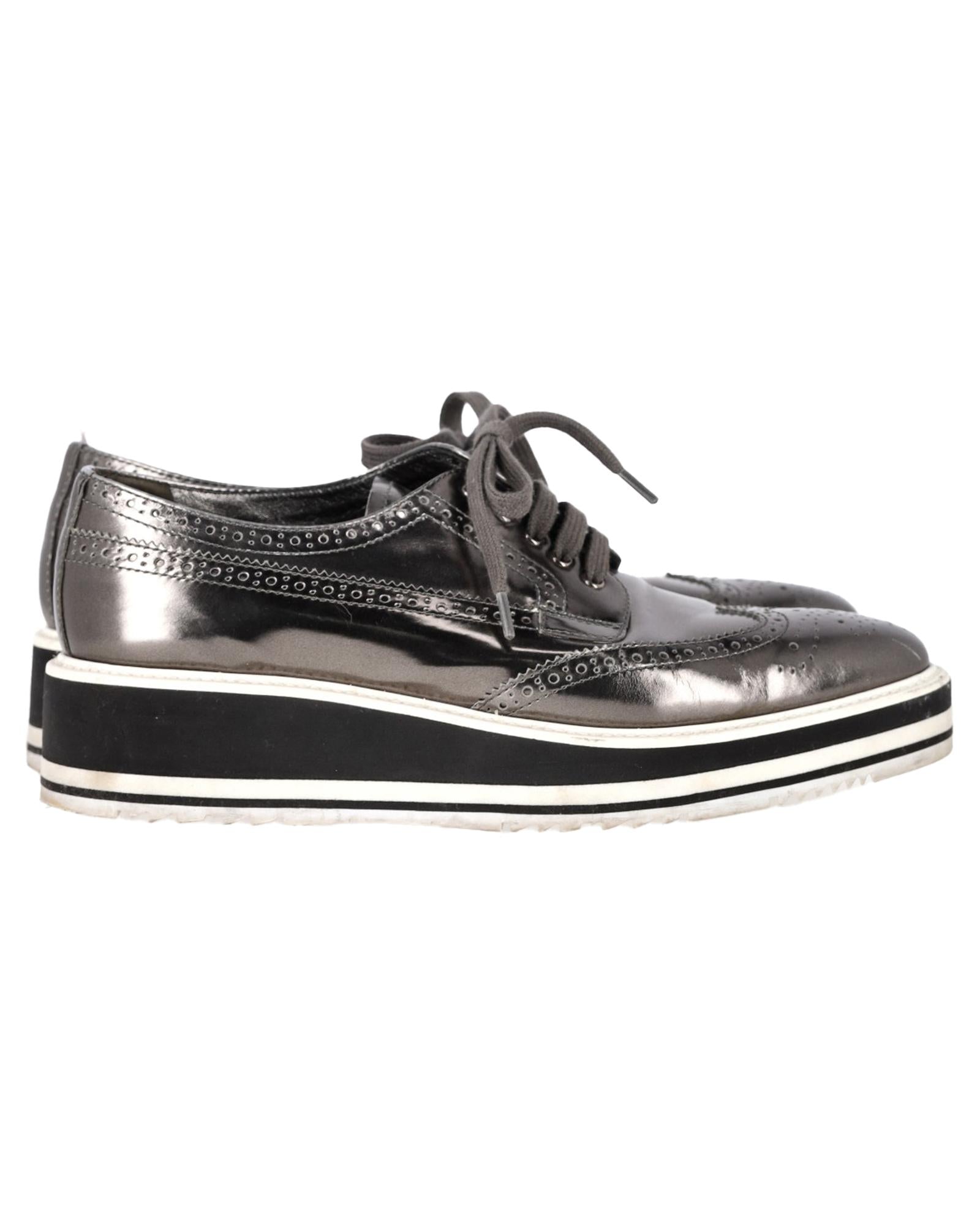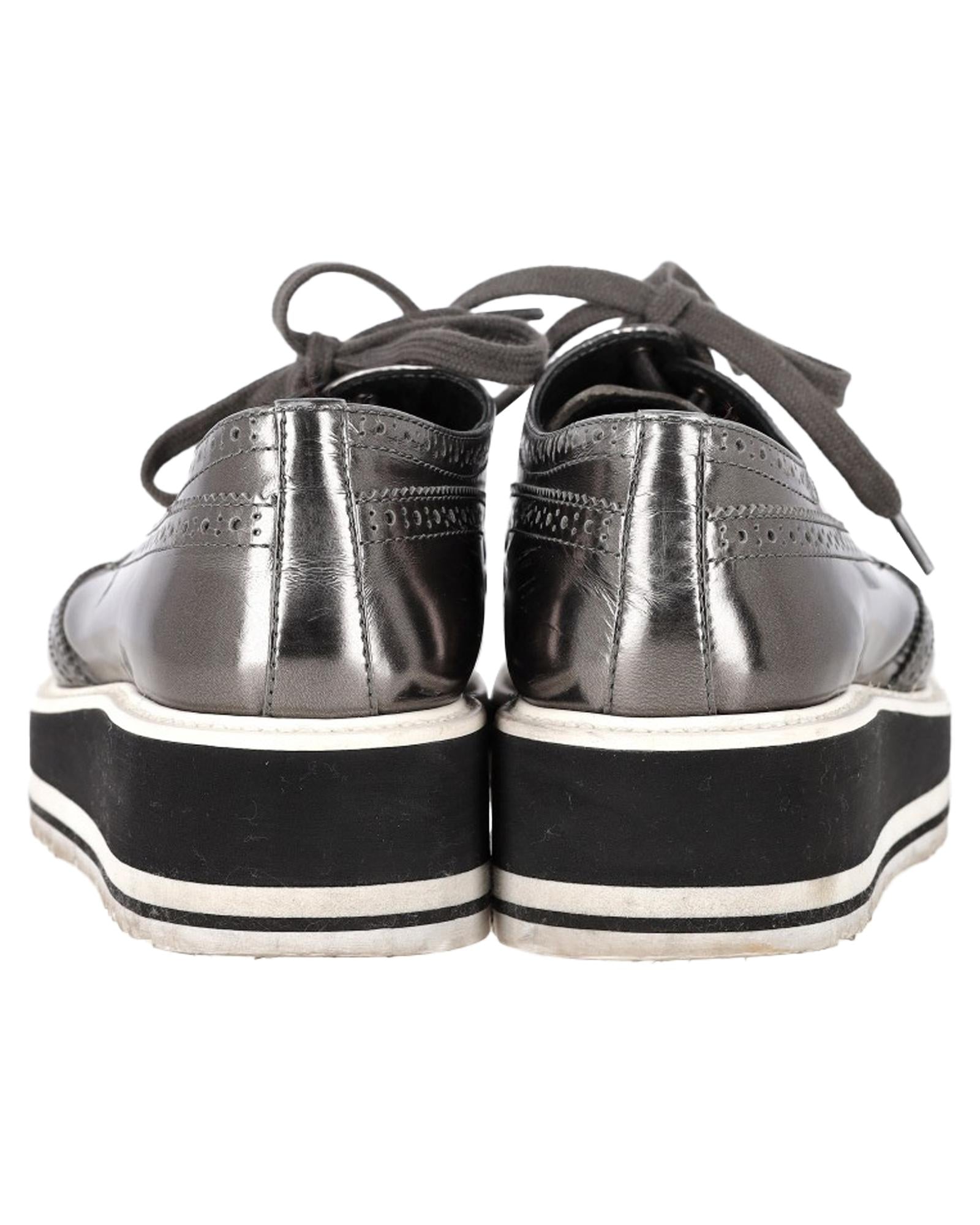 - Prada Metallic Brogue Platform Low Top Sneakers in silver leather