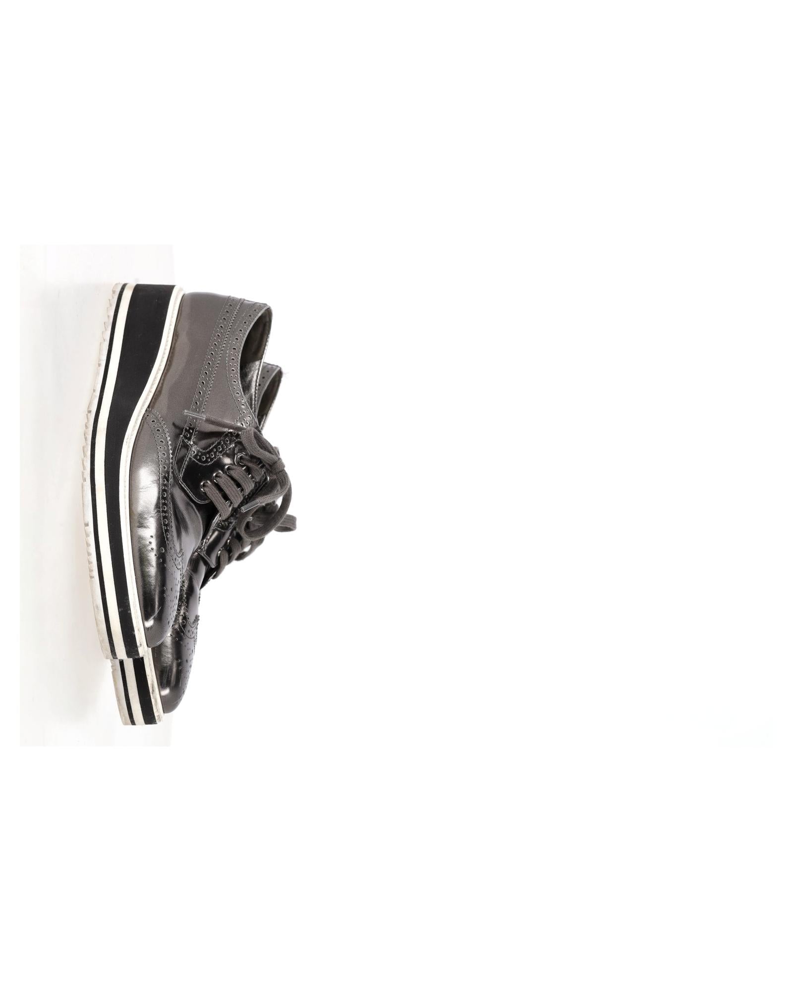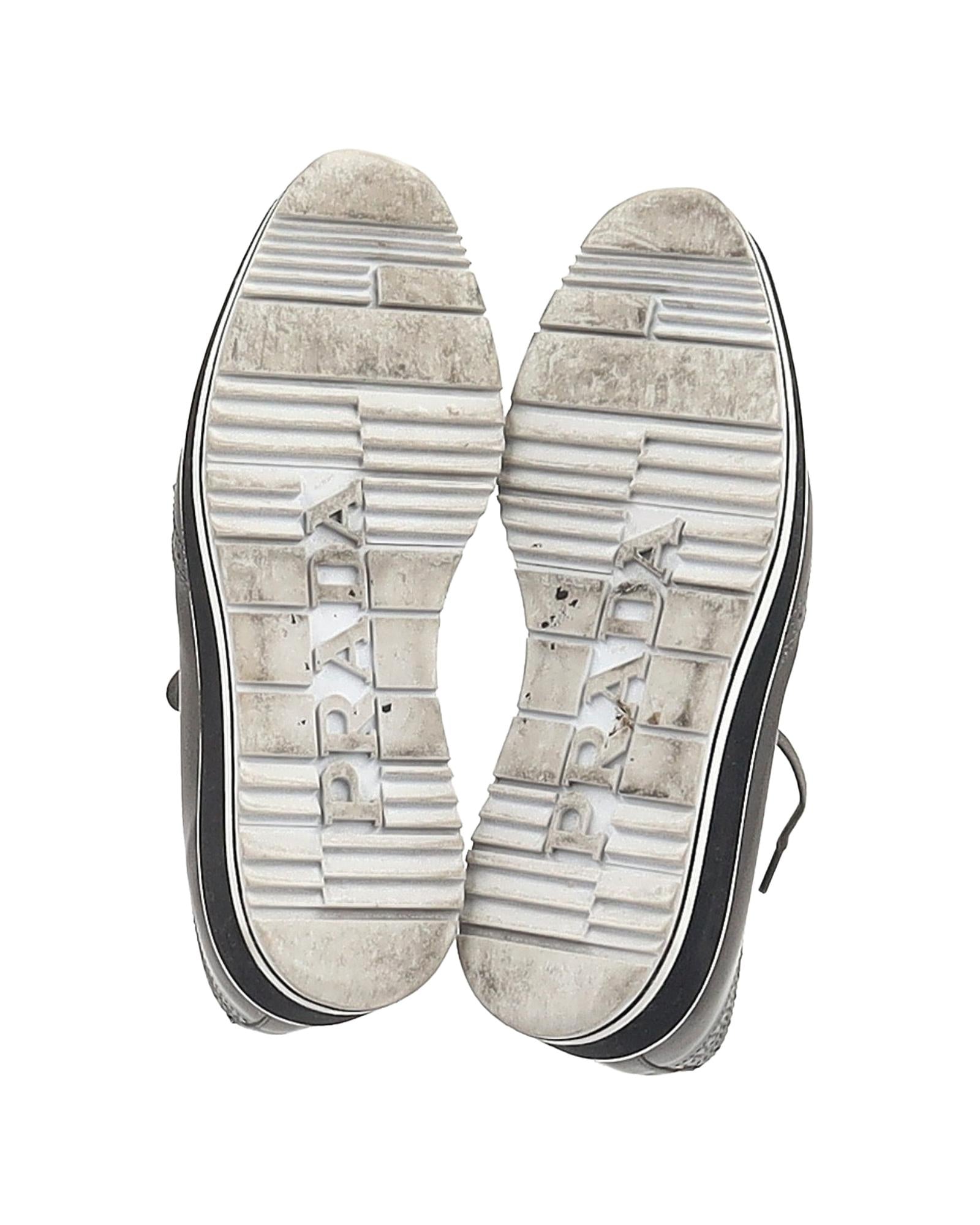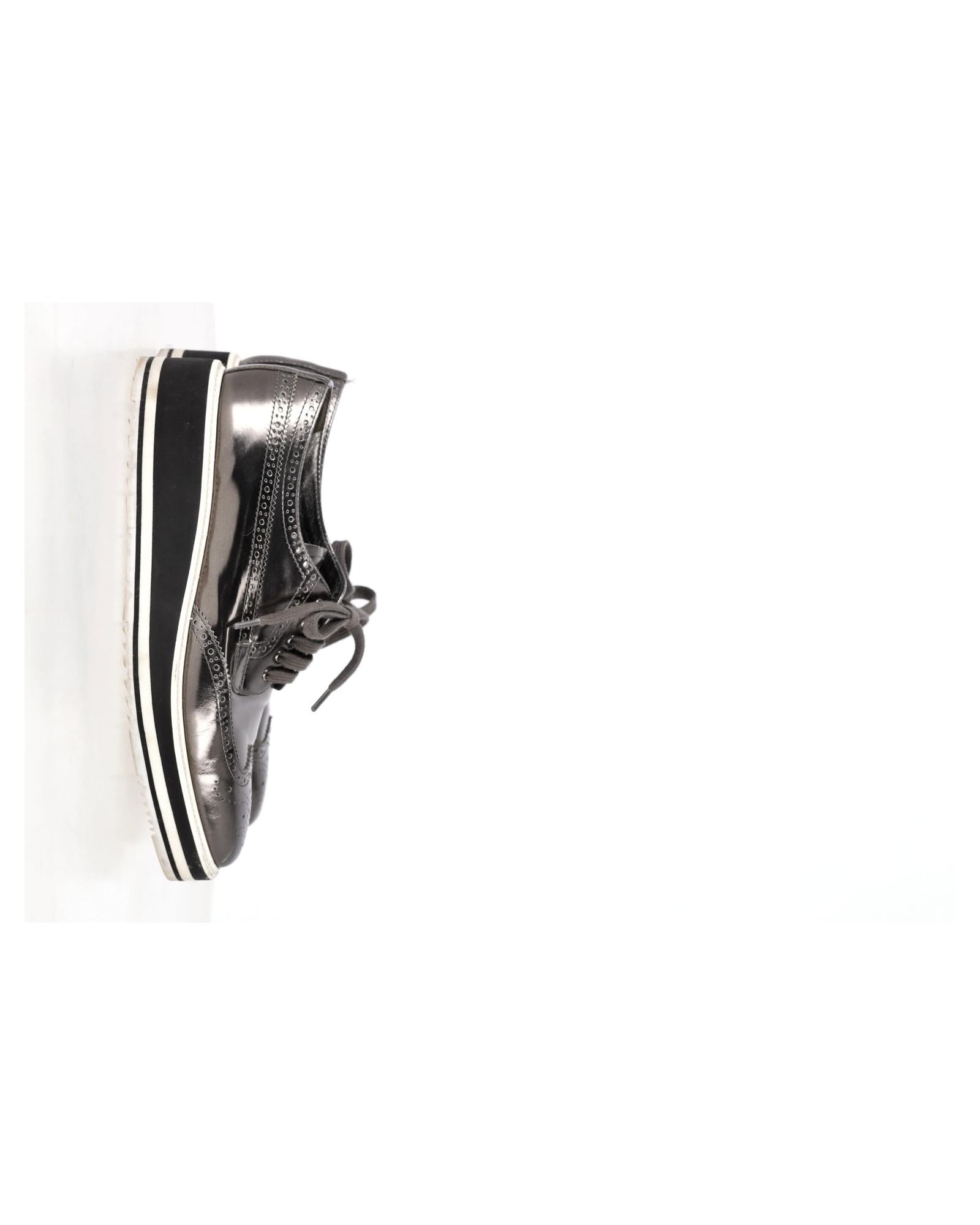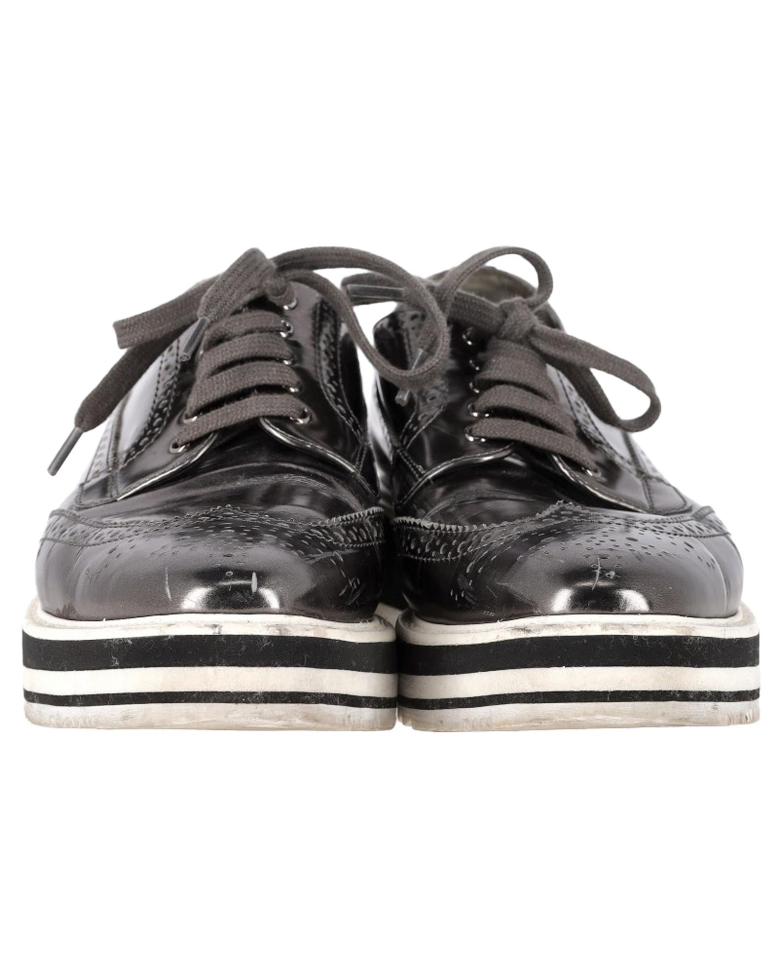 - Prada Metallic Brogue Platform Low Top Sneakers in silver leather