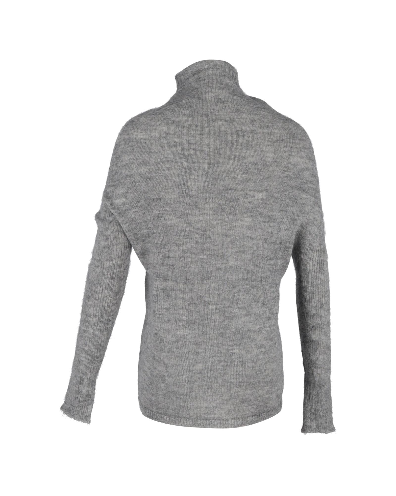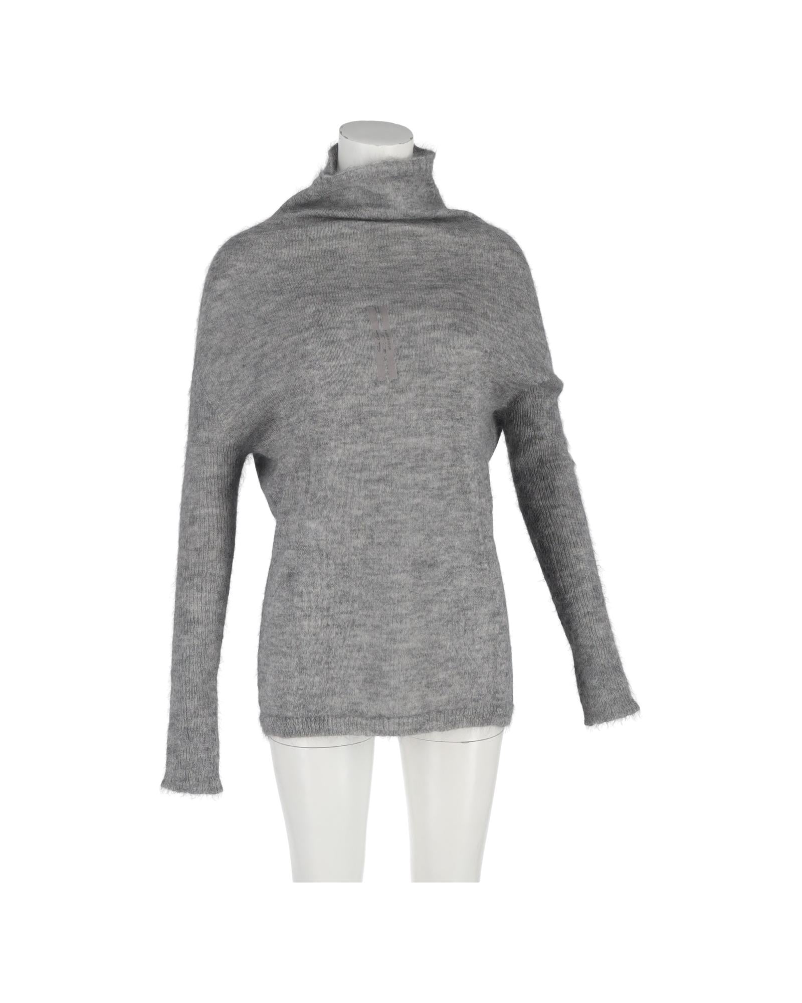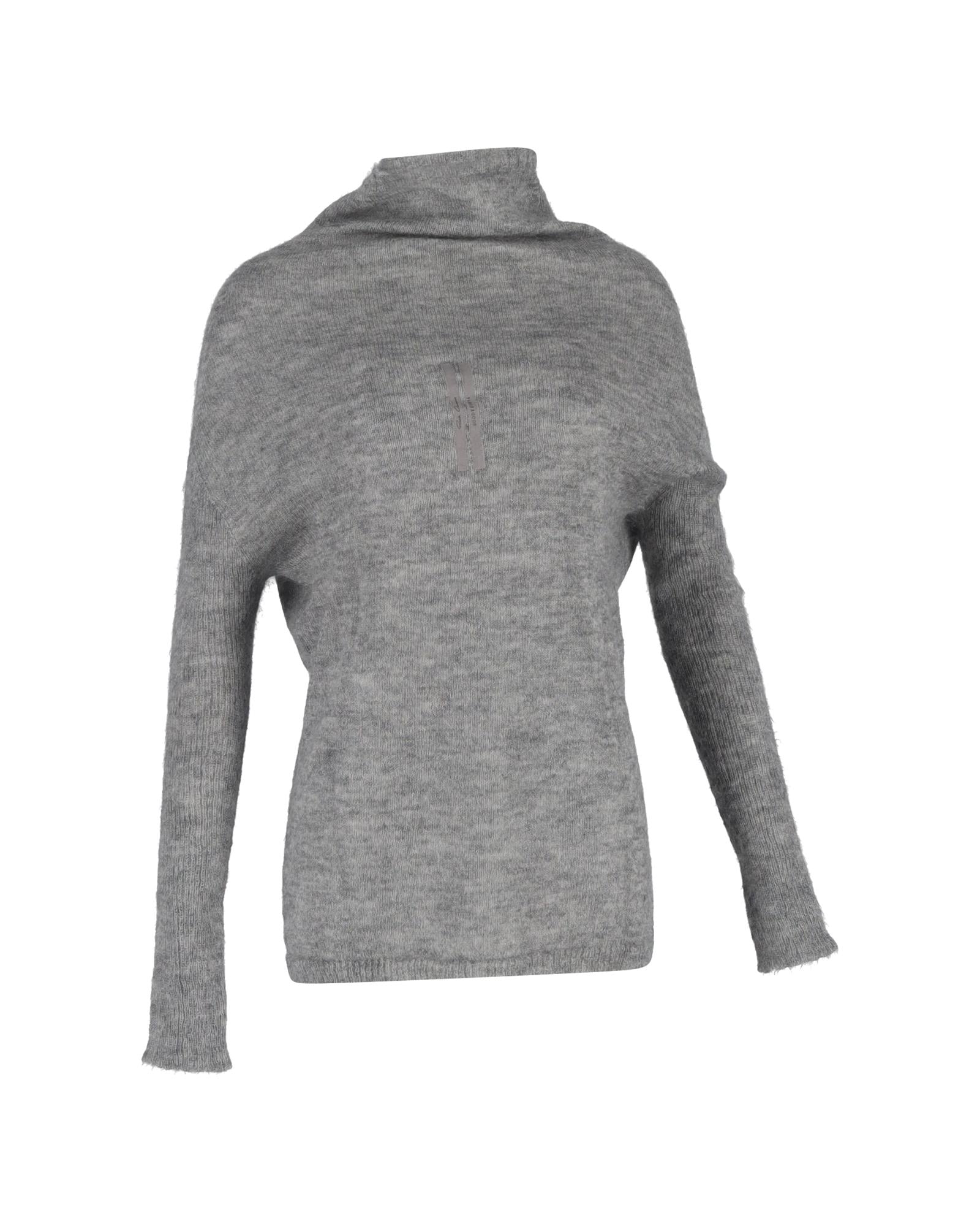 - Rick Owens Knitted Mock Neck Sweater in Grey Wool