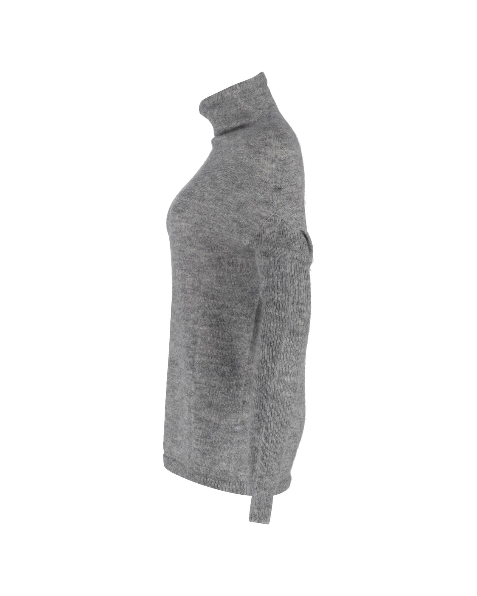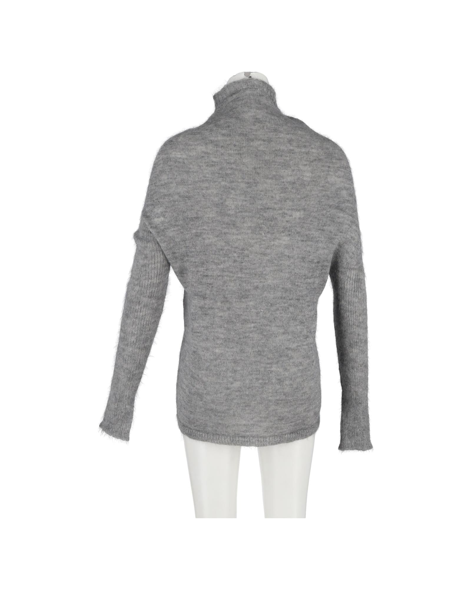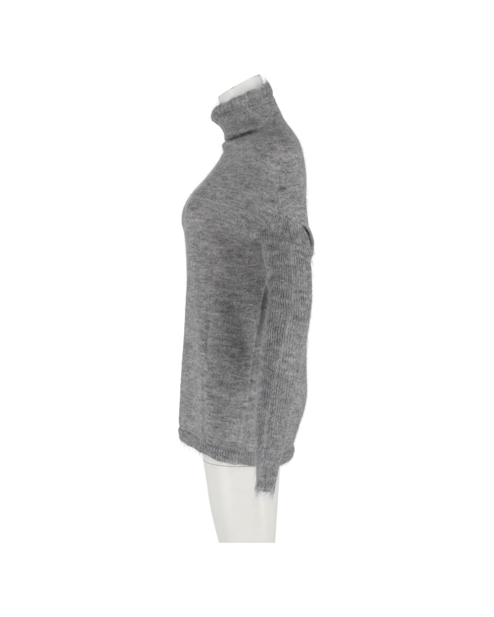 - Rick Owens Knitted Mock Neck Sweater in Grey Wool