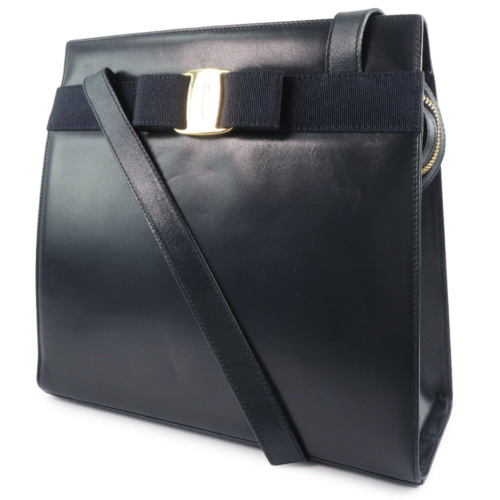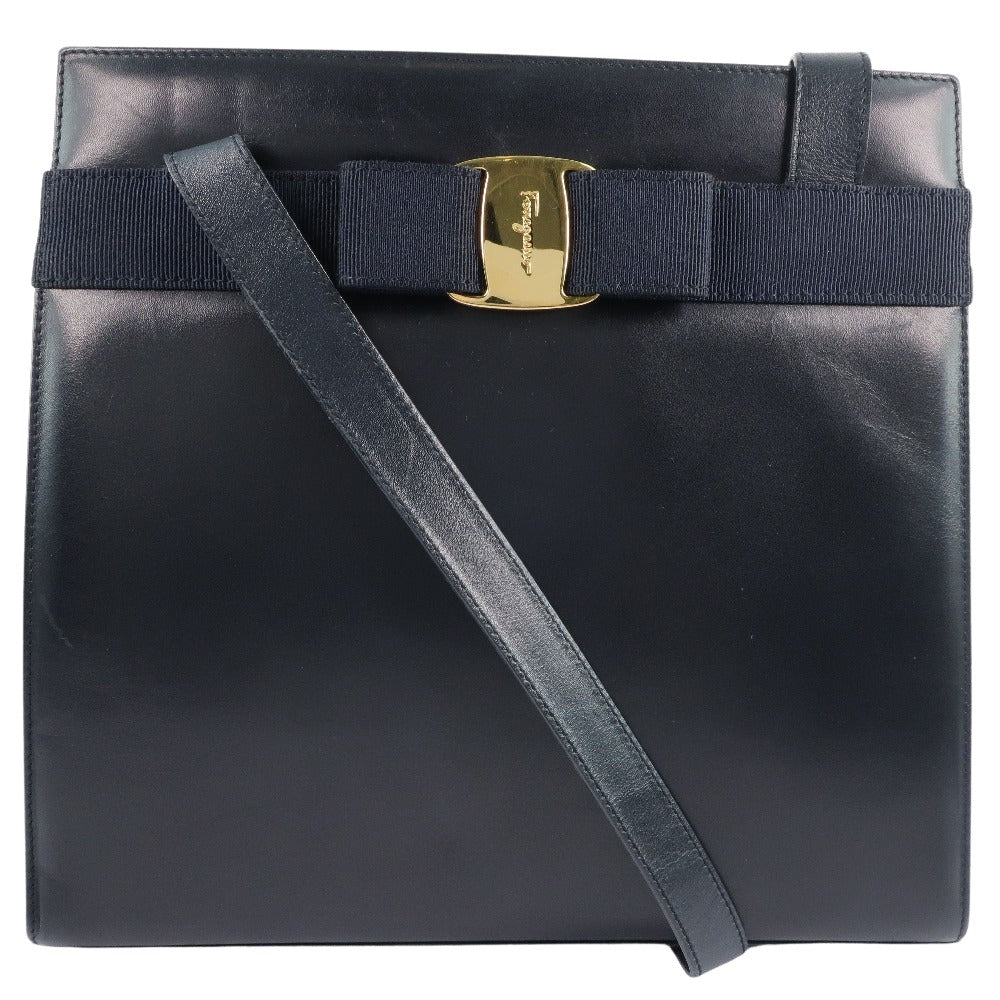 Navy Leather Vala Shoulder Bag by Salvatore Ferragamo