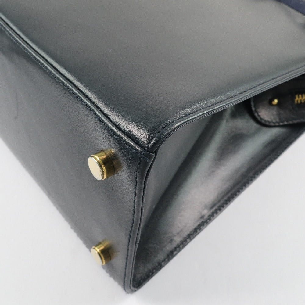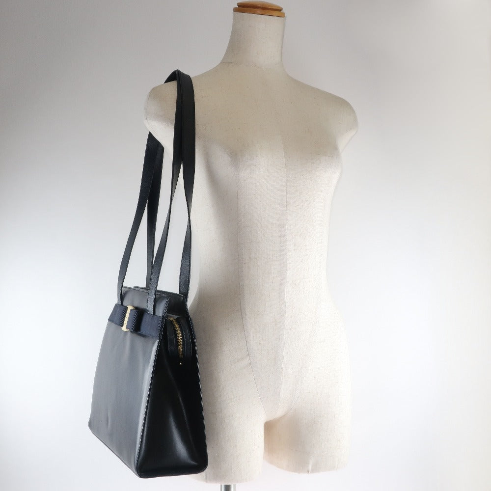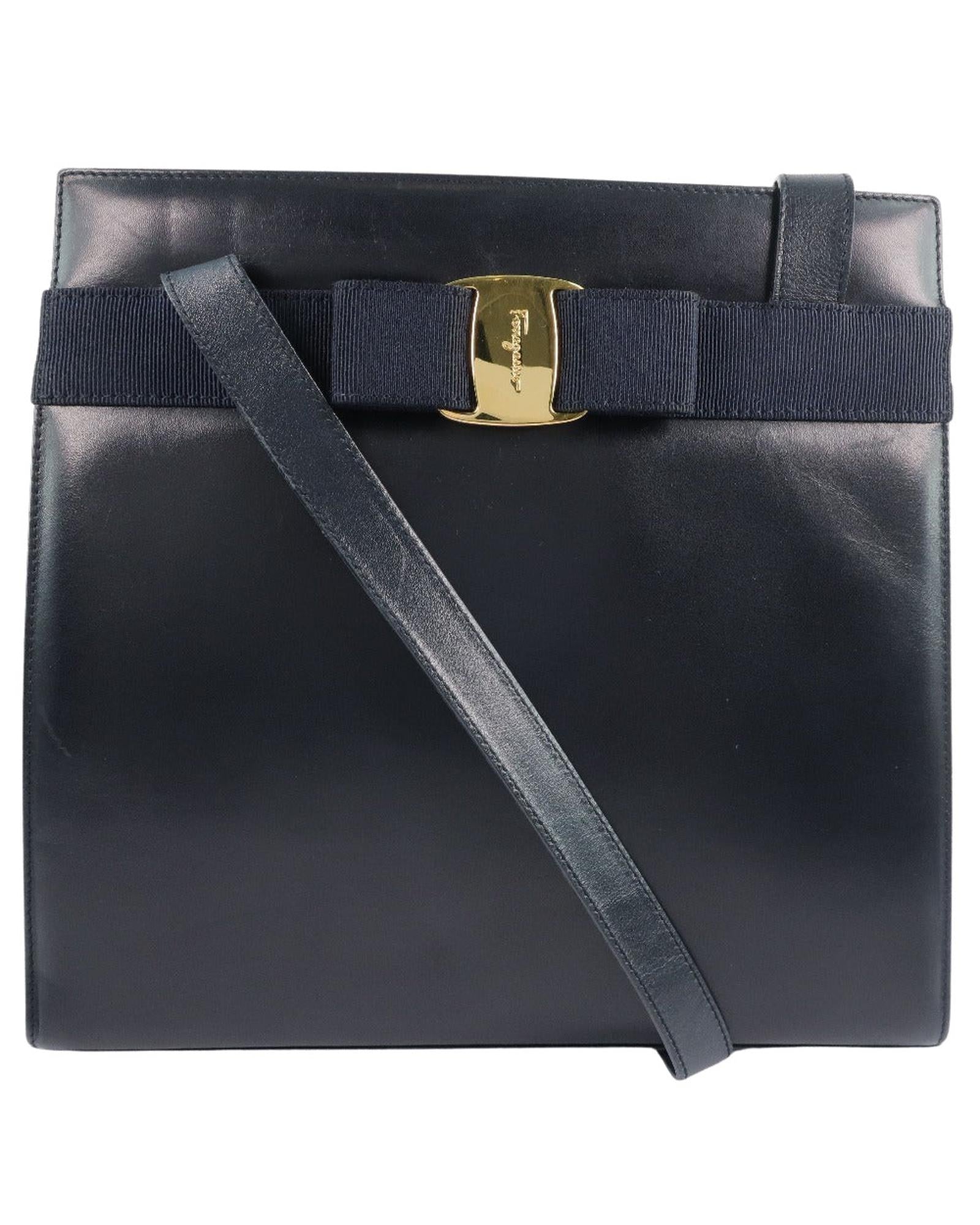 Navy Leather Vala Shoulder Bag by Salvatore Ferragamo